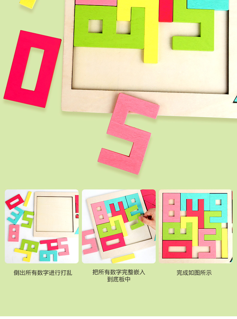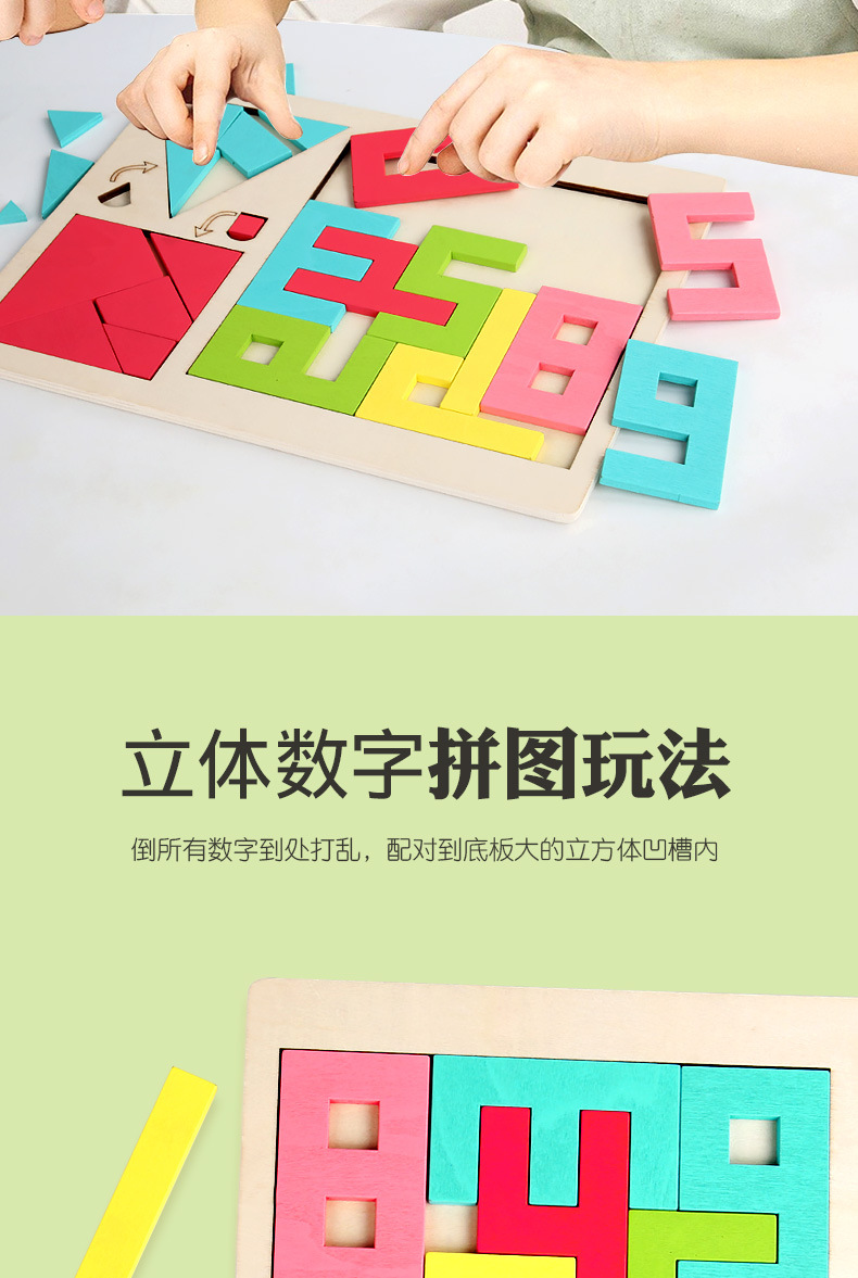 儿童木质三合一无中生有拼图数字积木空间思维拼图早教益智力玩具