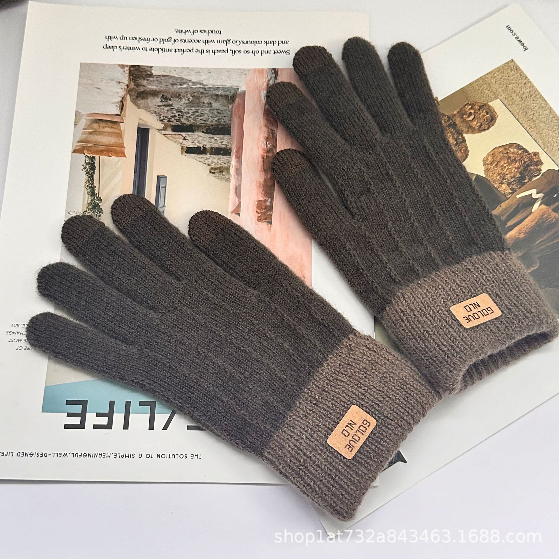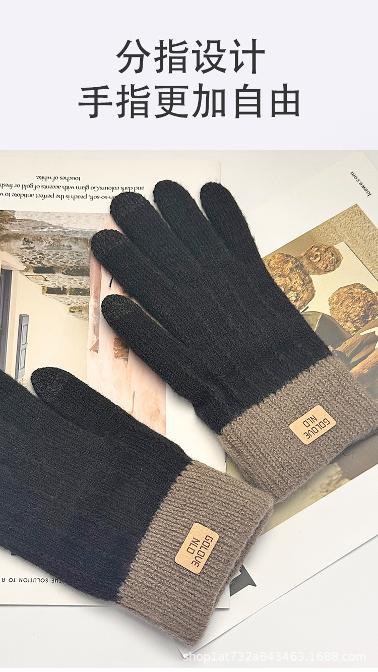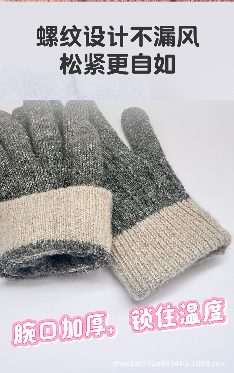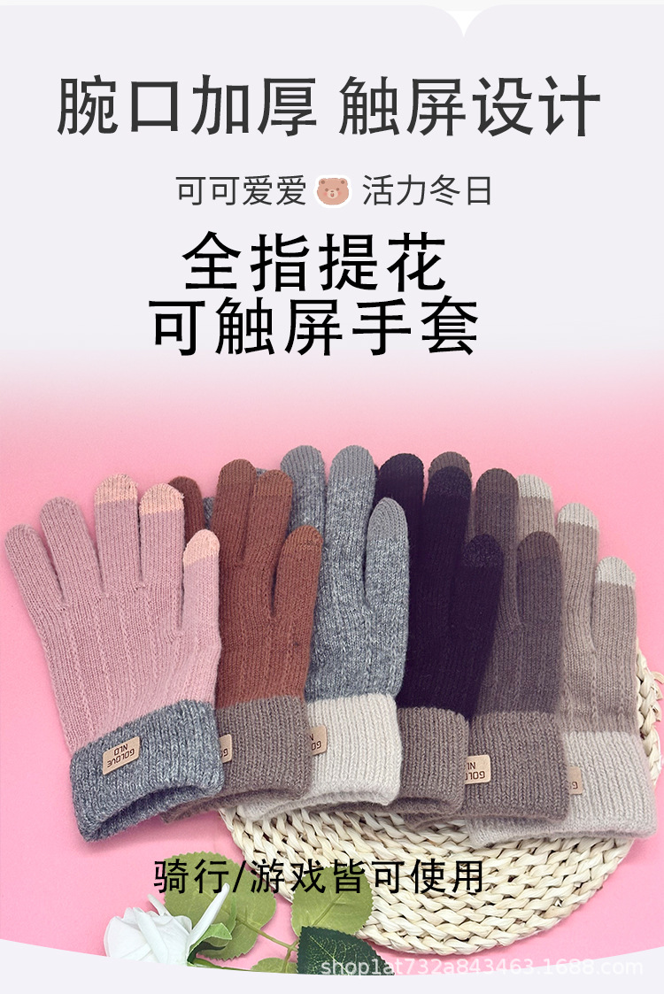 保暖触屏手套学生秋冬加厚外出纯色全指针织可爱女士全指骑行手套