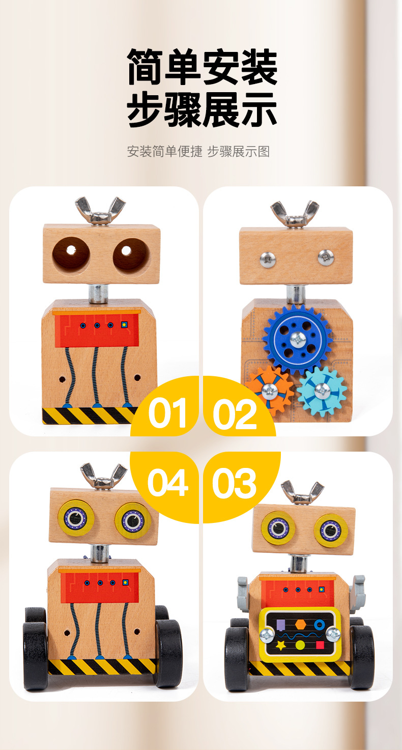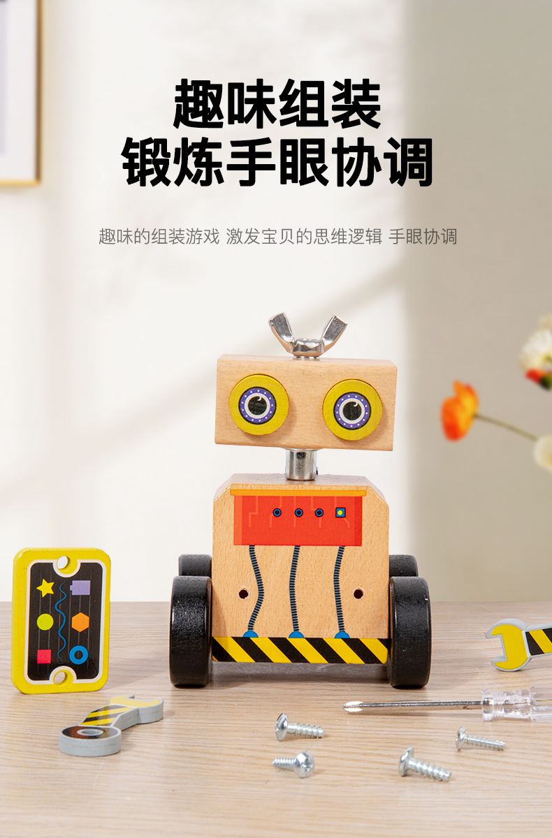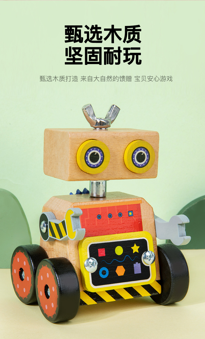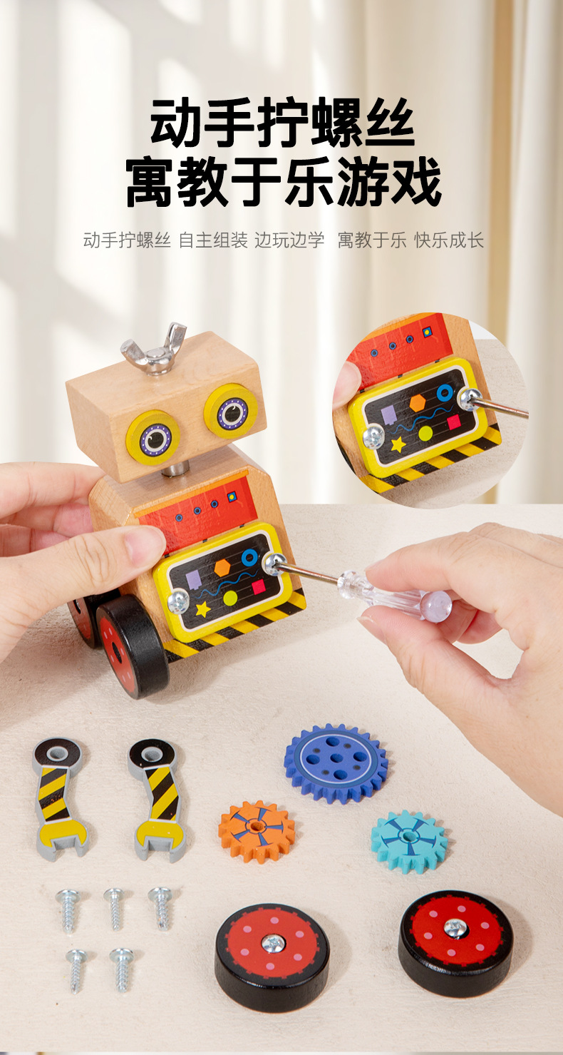 儿童木制组装机器人拆装拧螺丝螺母工具手工拼装蒙氏早教益智玩具