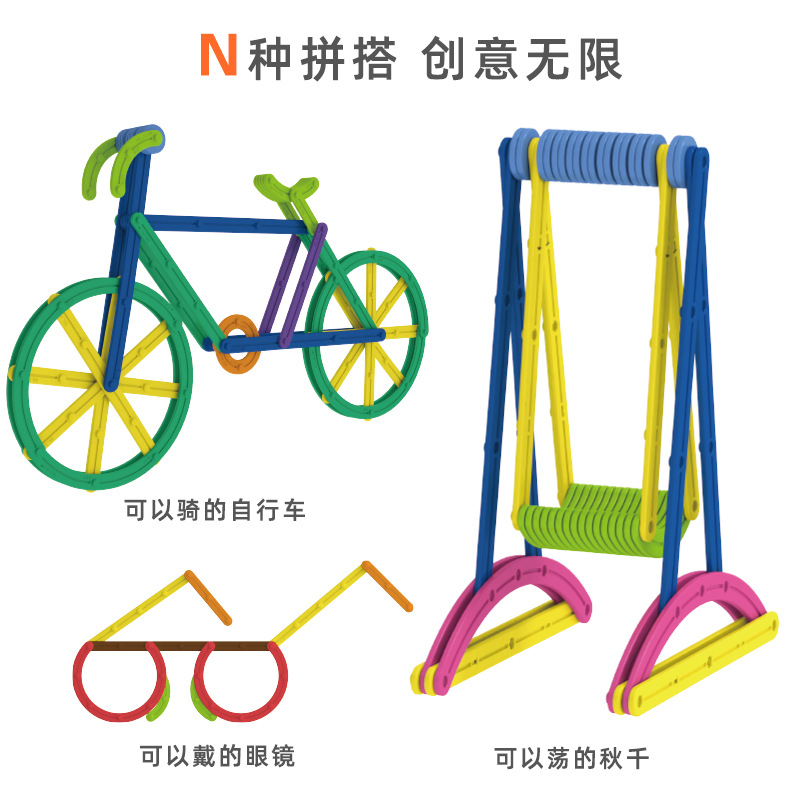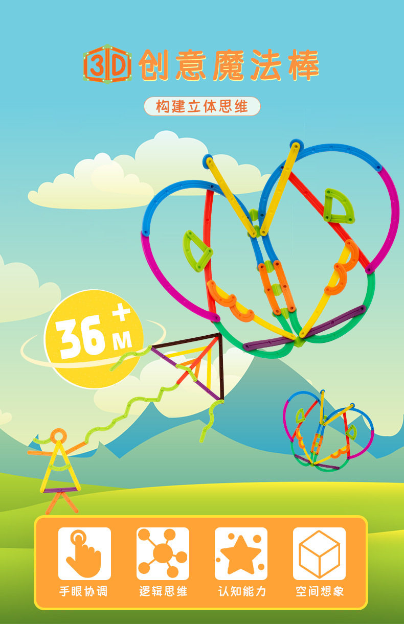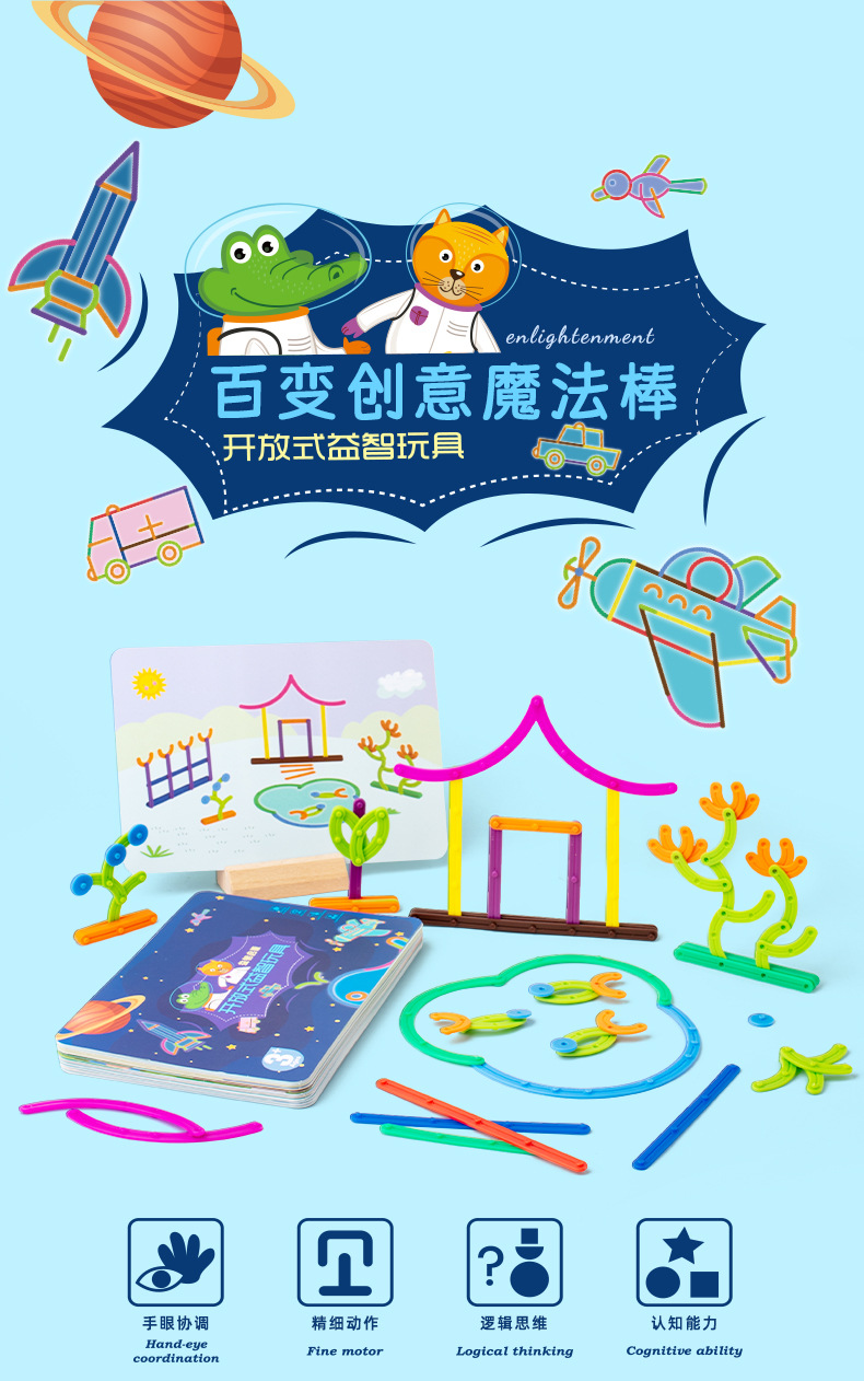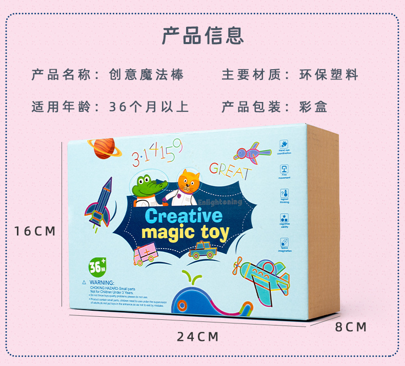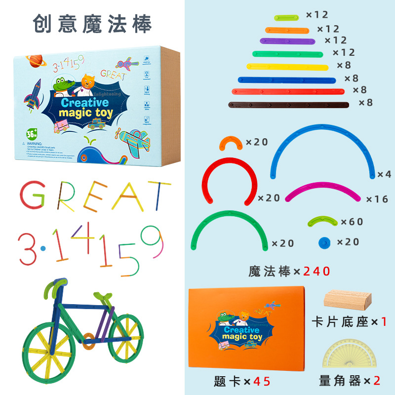 跨境儿童早教数学百变3D创意魔法棒DIY造型拼插积木拼图益智玩具