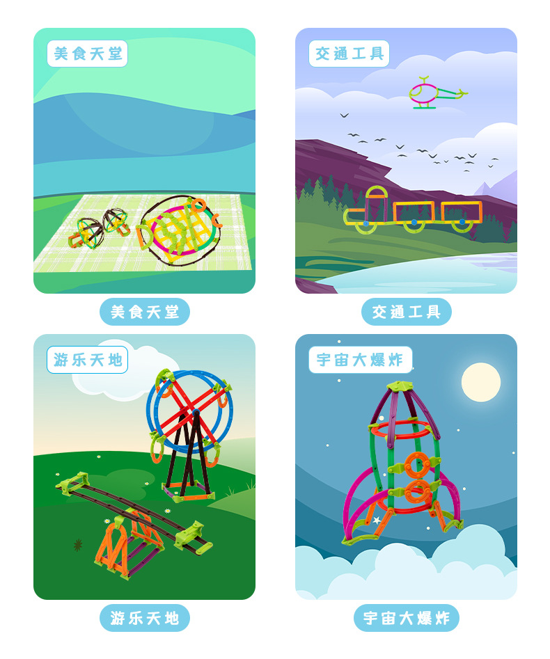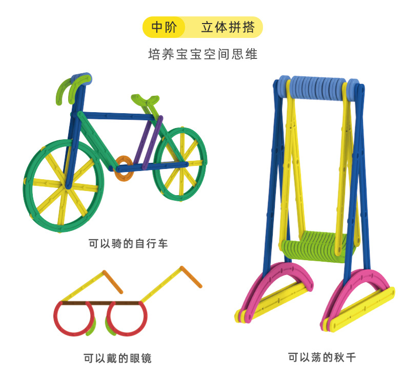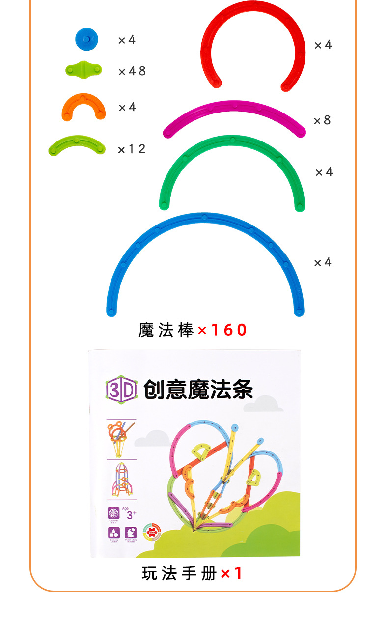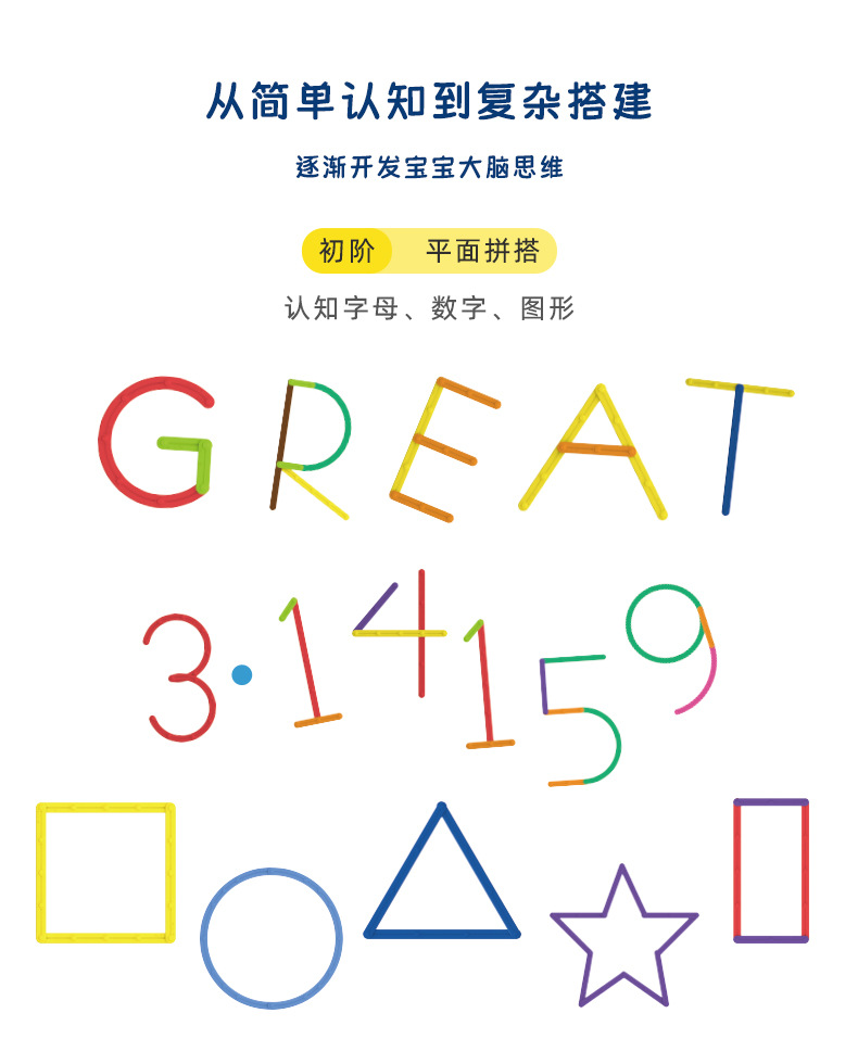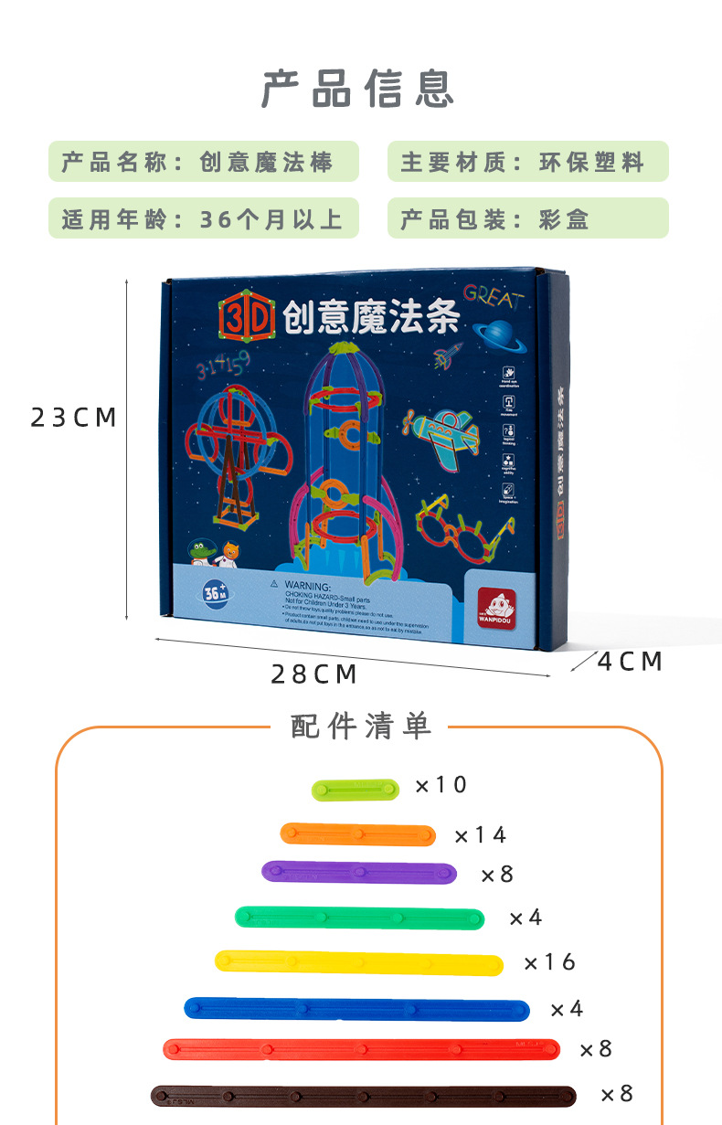 跨境儿童早教数学百变3D创意魔法棒DIY造型拼插积木拼图益智玩具