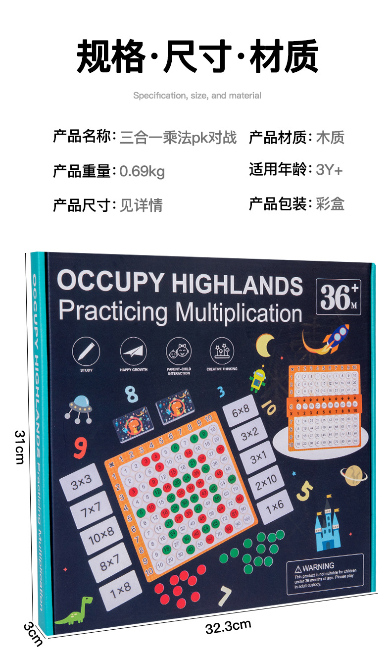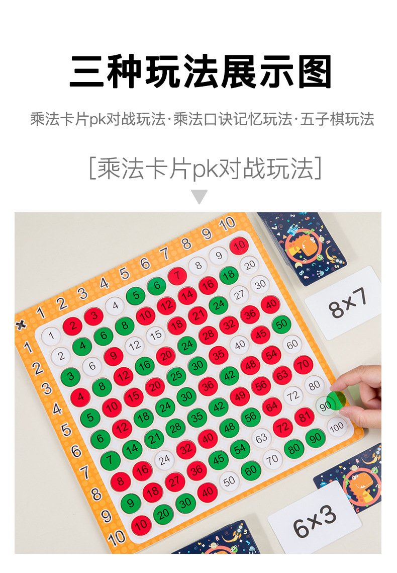 跨境儿童早教三合一99乘法口诀表教具九九乘法板运算对战益智玩具