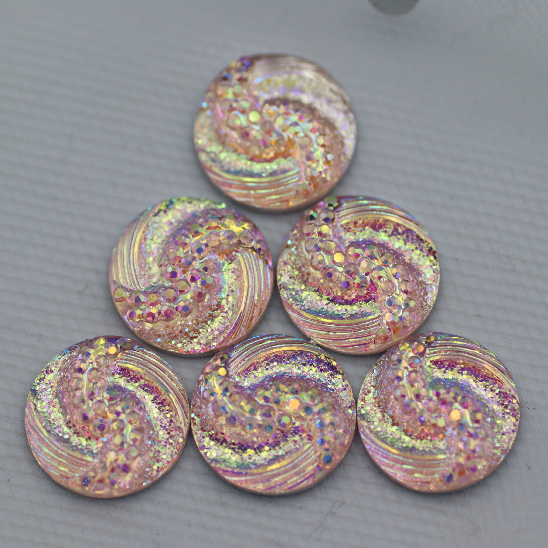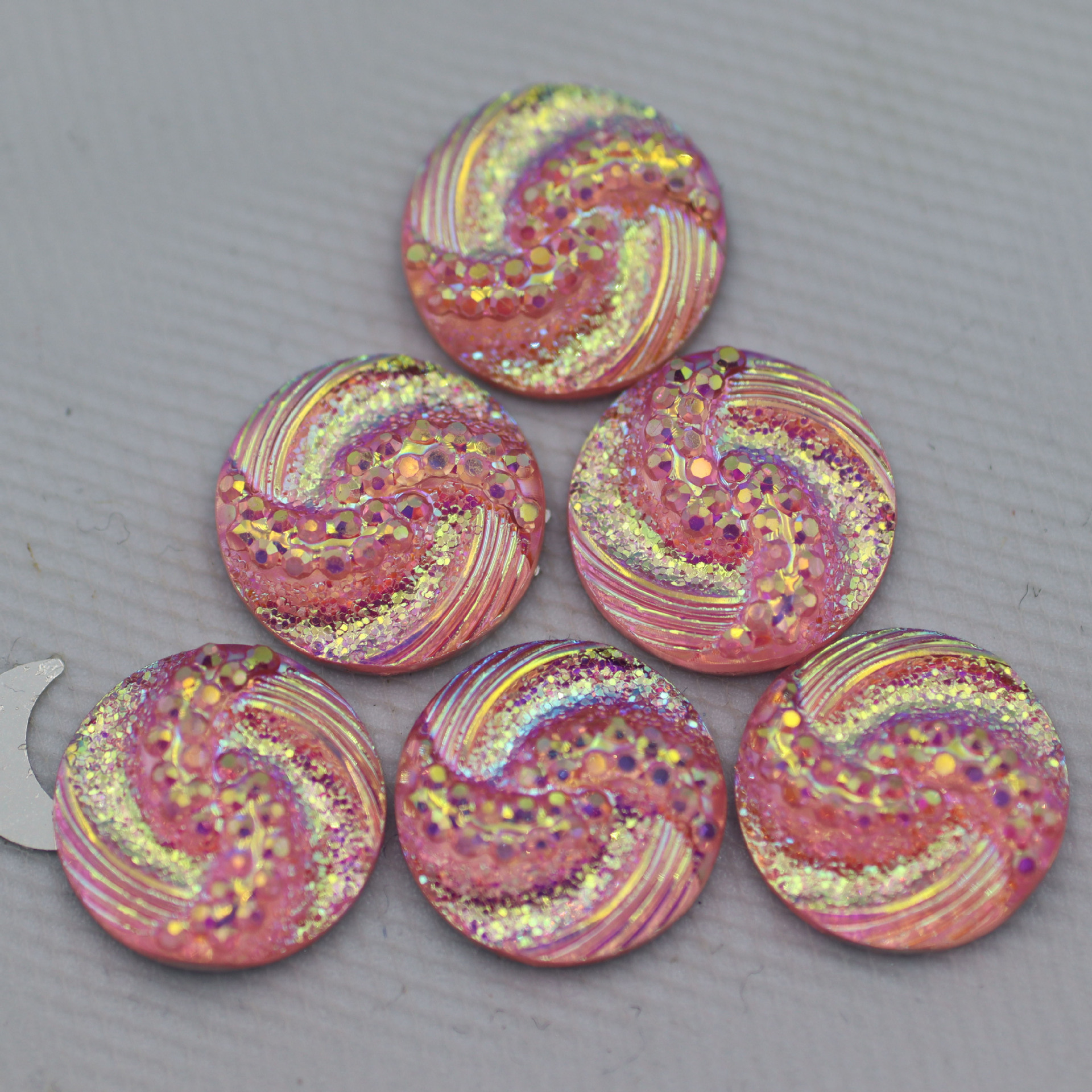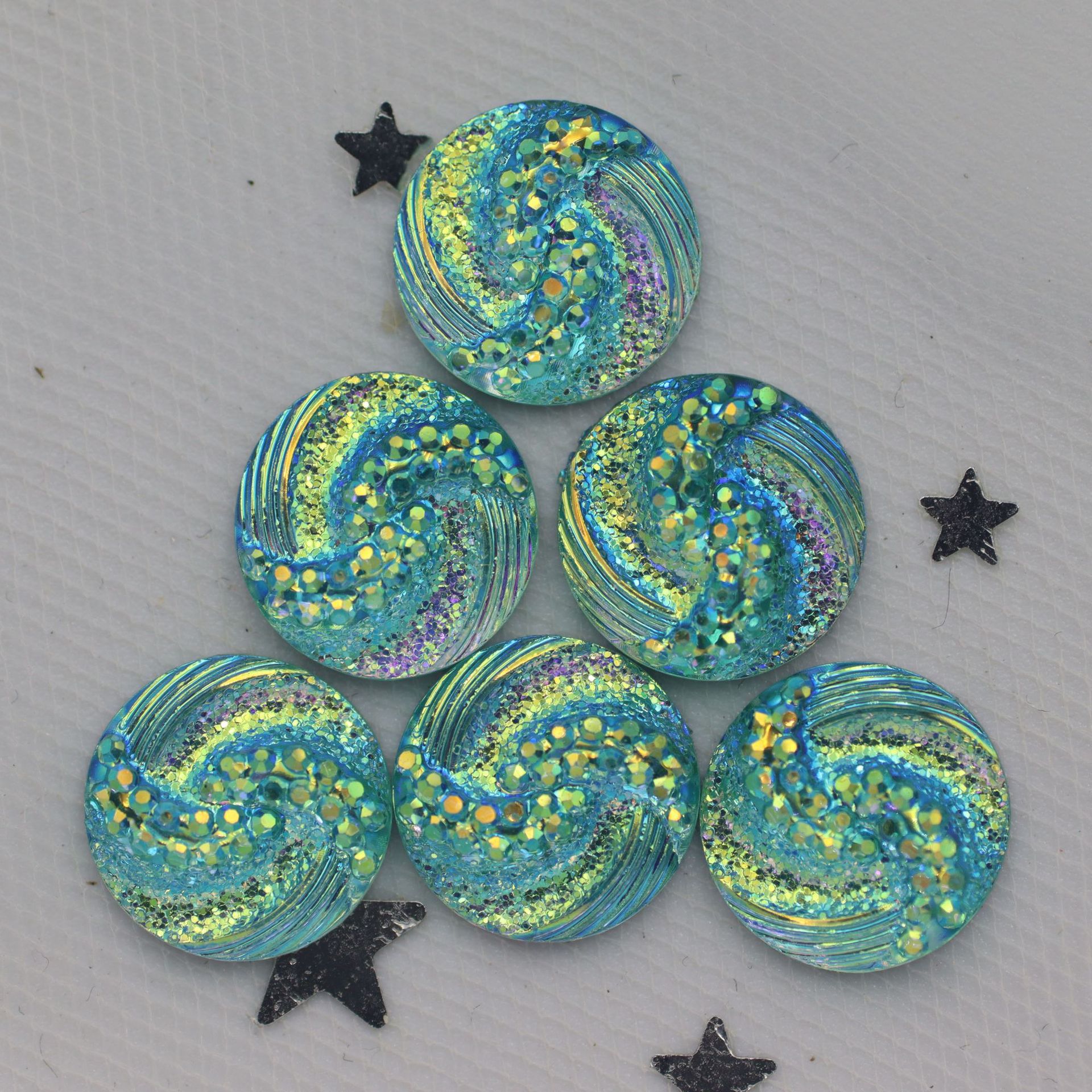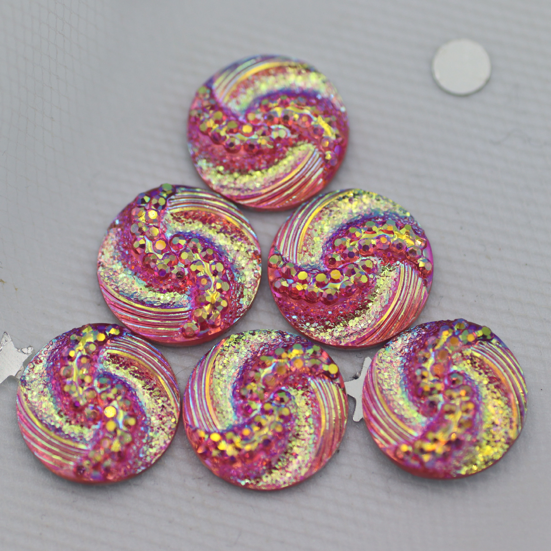 新款圆形树脂钻S型面平底钻晶簇凹凸耳钉项链diy饰品配件