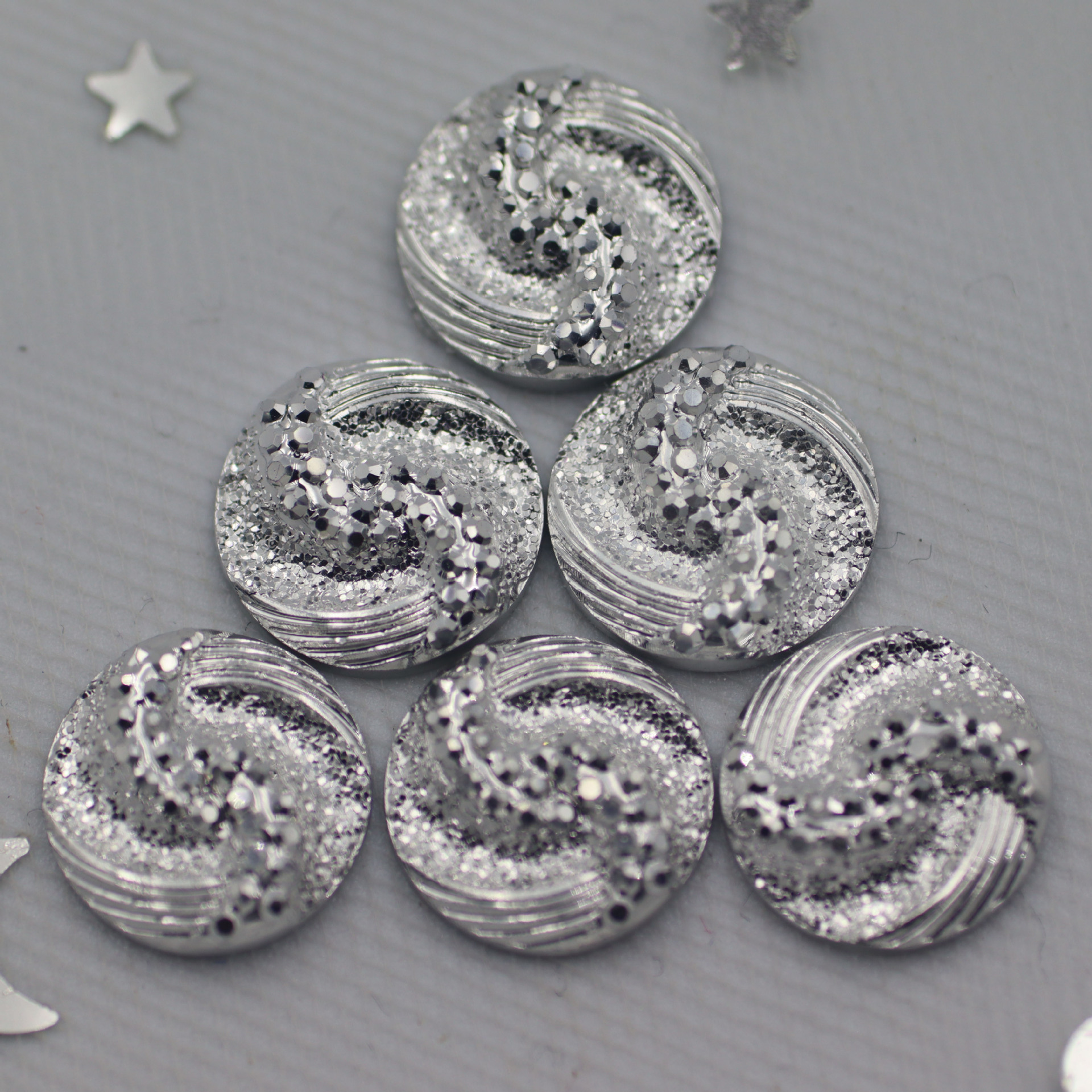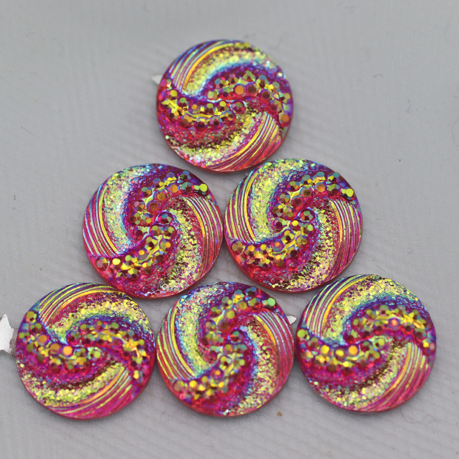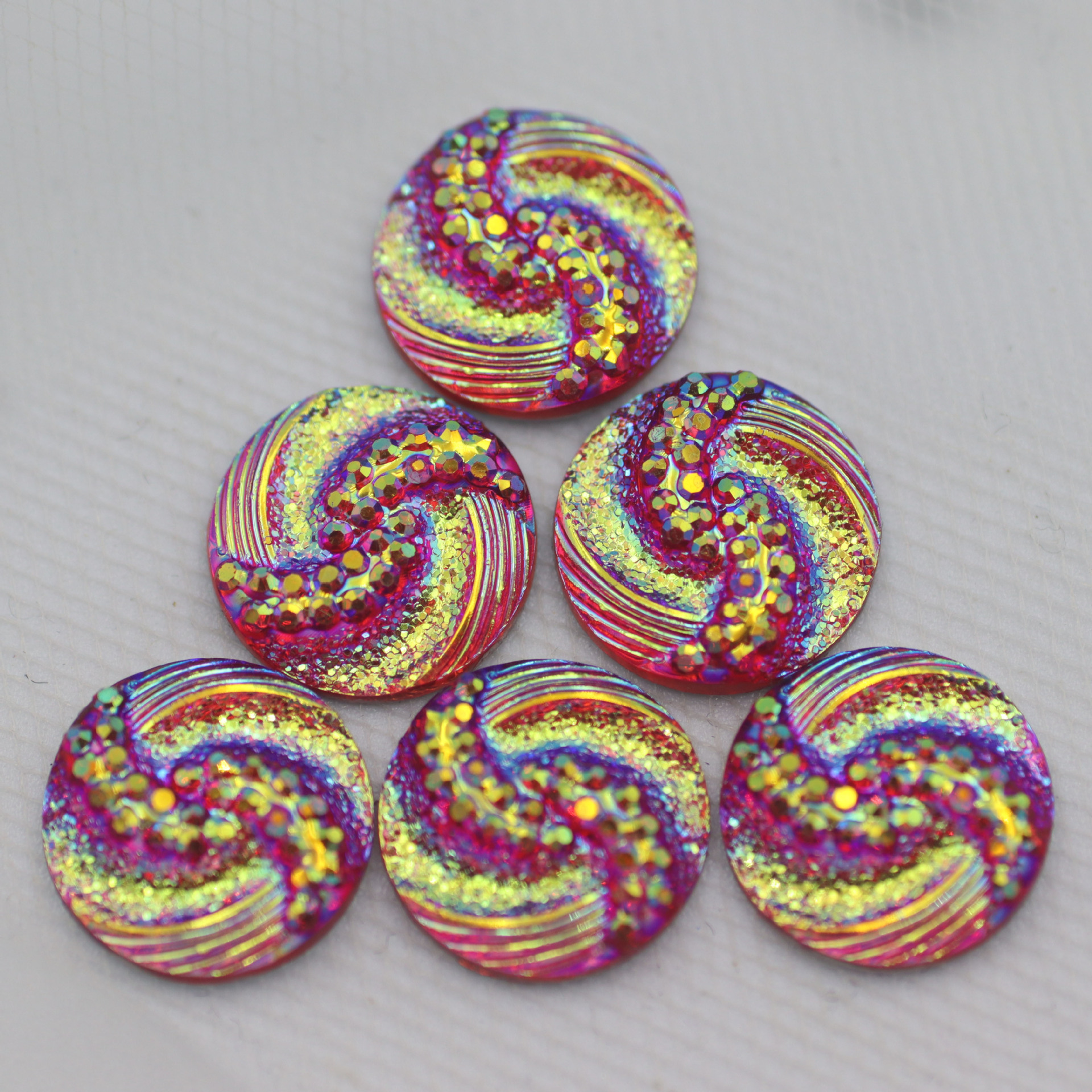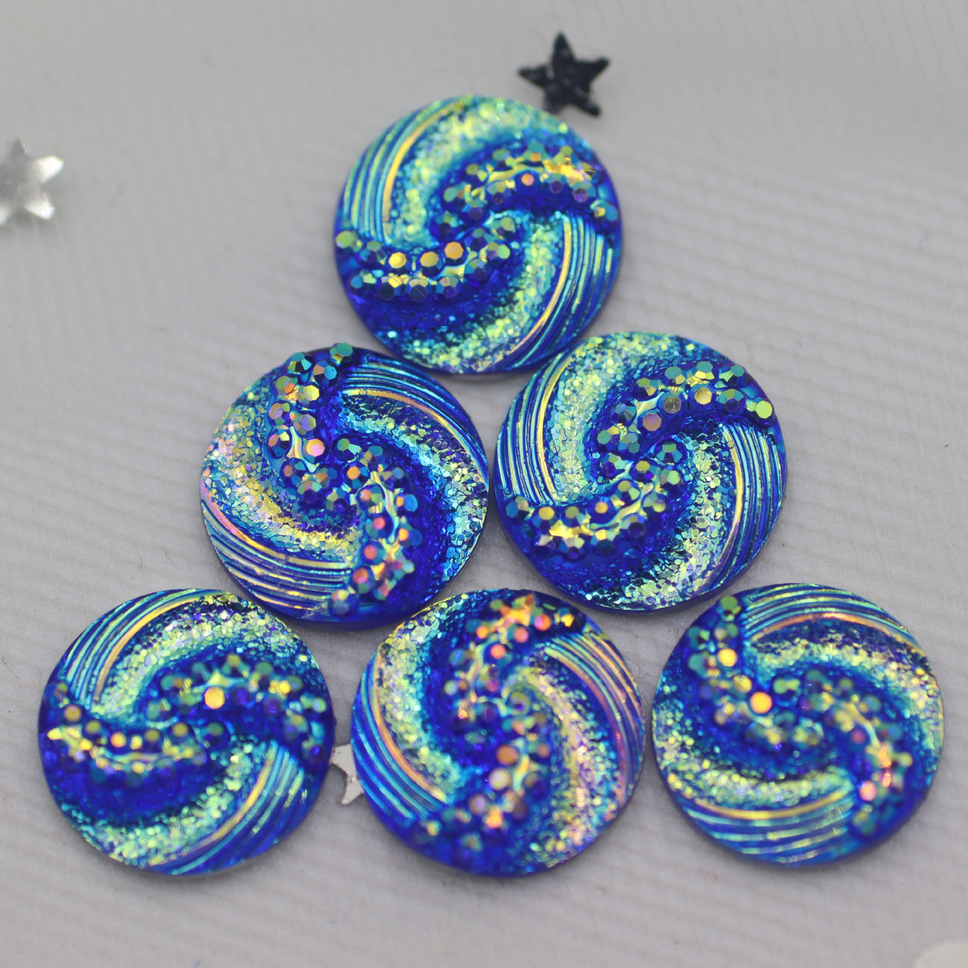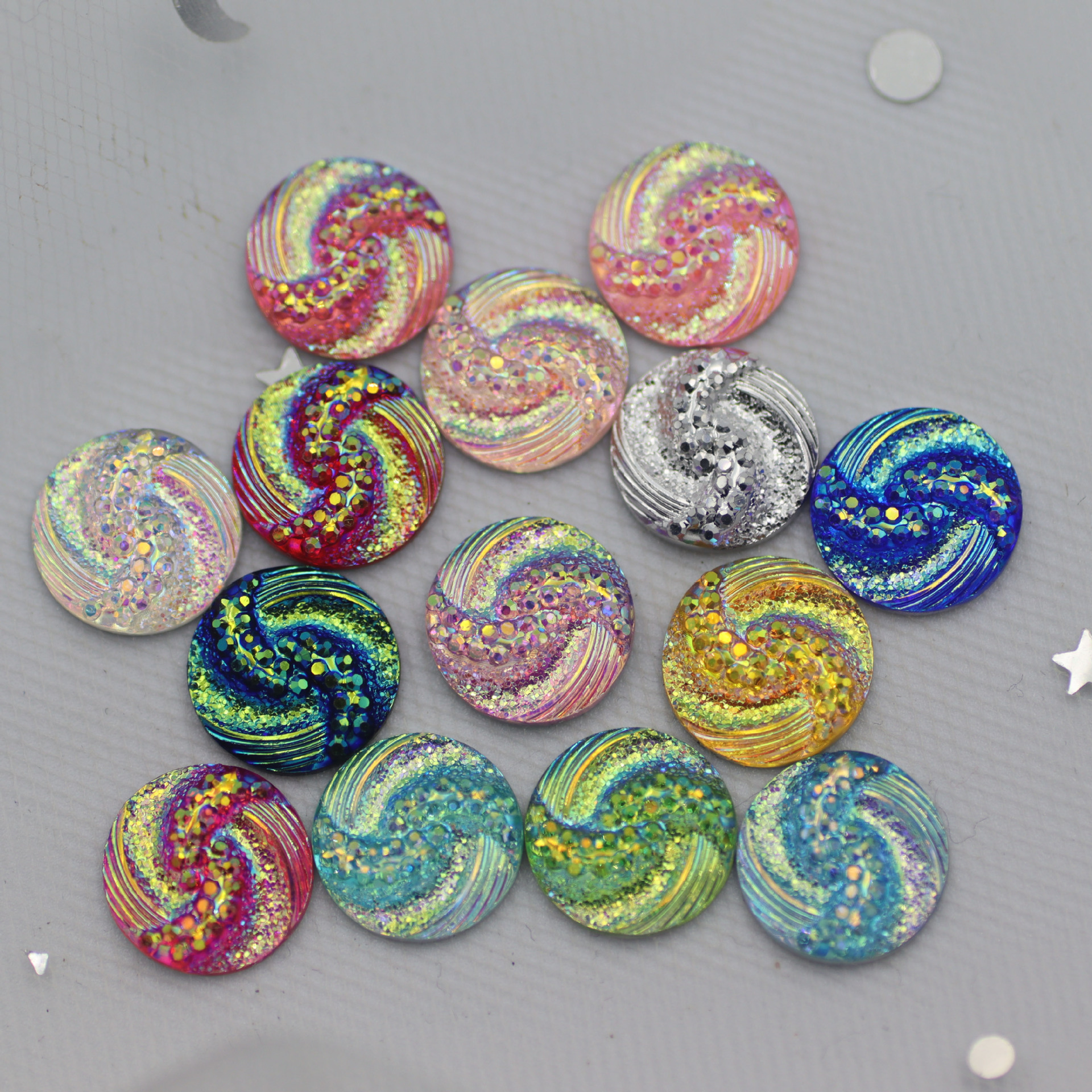 新款圆形树脂钻S型面平底钻晶簇凹凸耳钉项链diy饰品配件