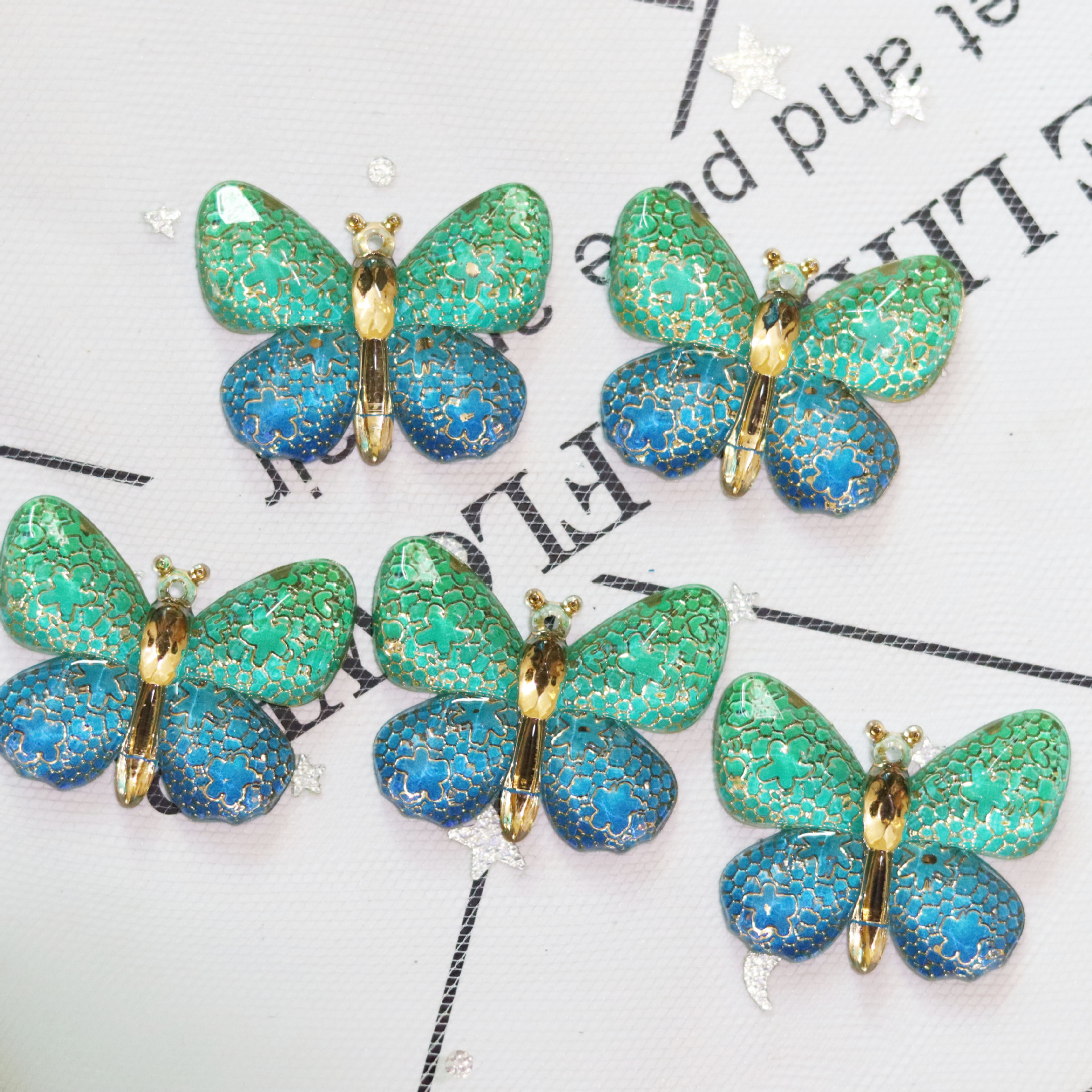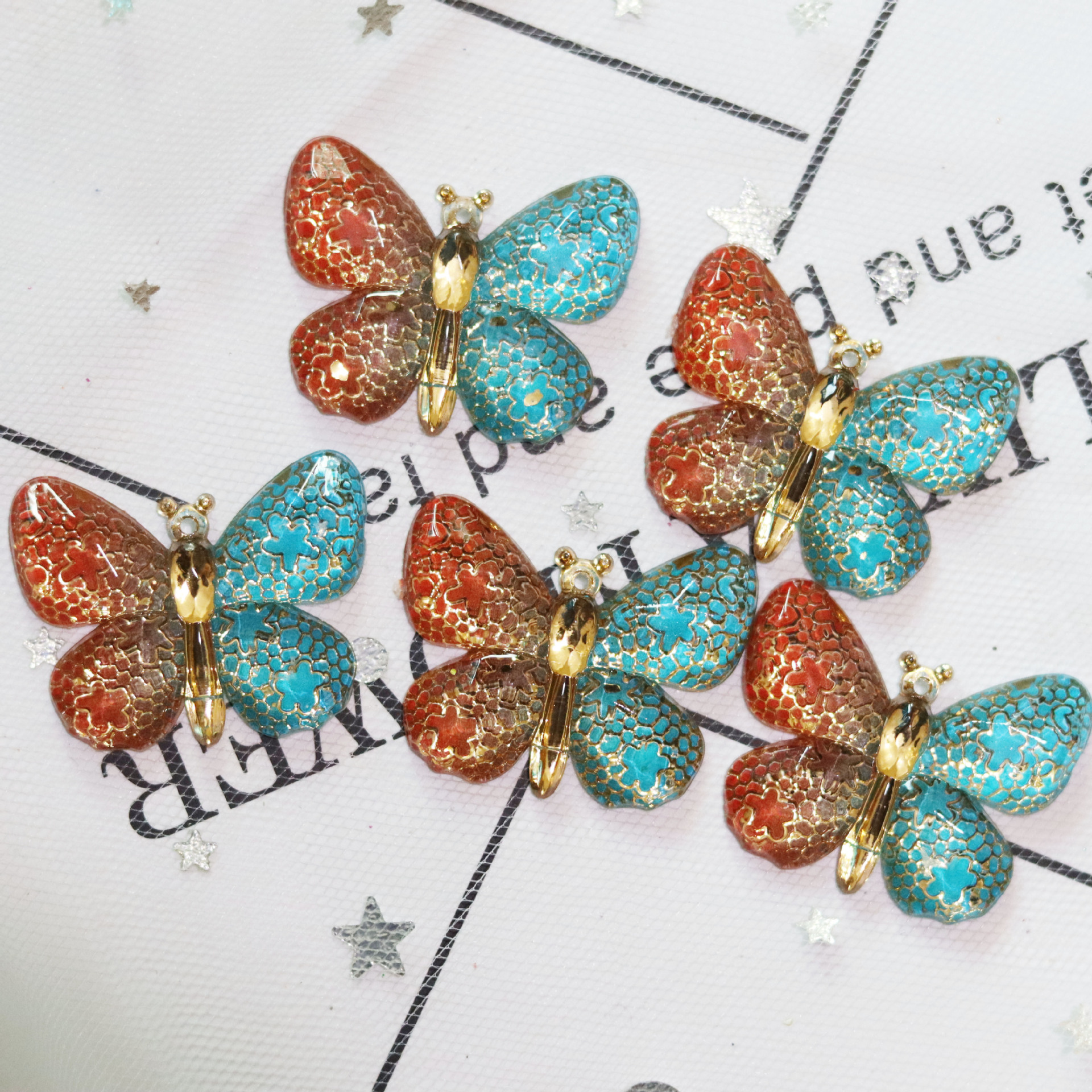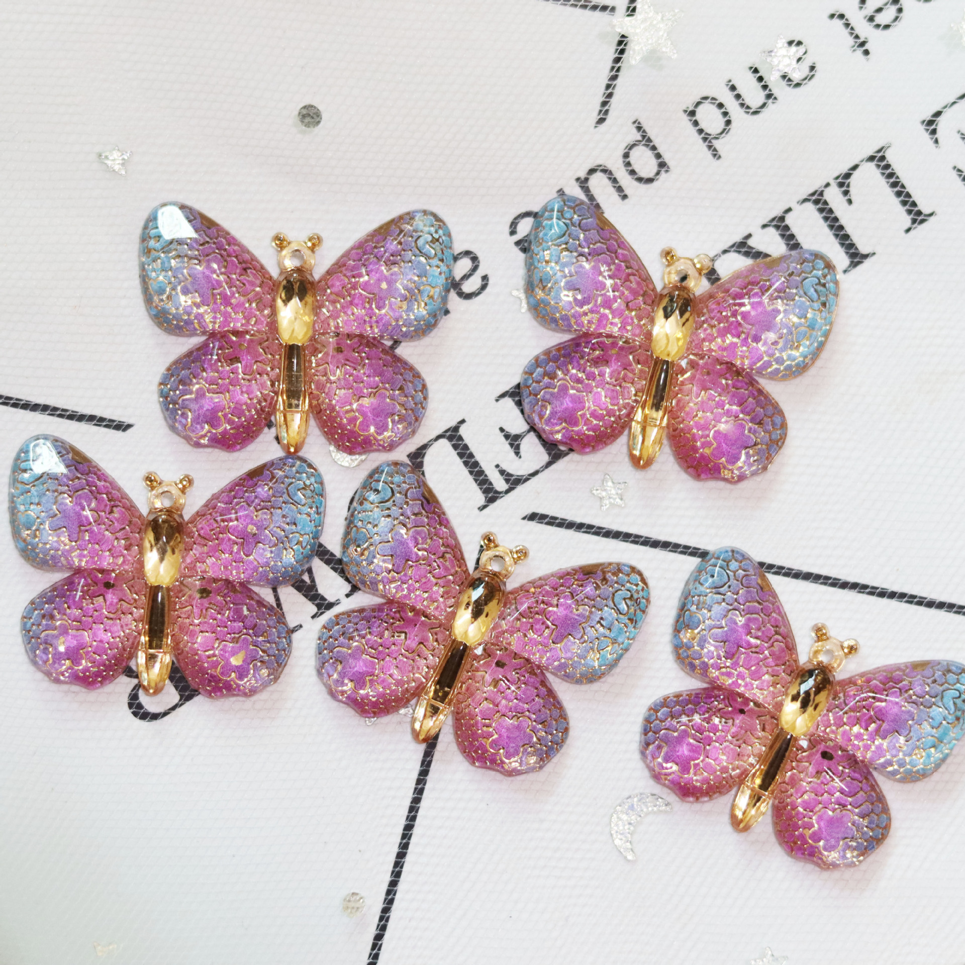 新款跨境七彩蝴蝶带孔平底钻树脂混合物婚礼贴花工艺DIY饰品配件