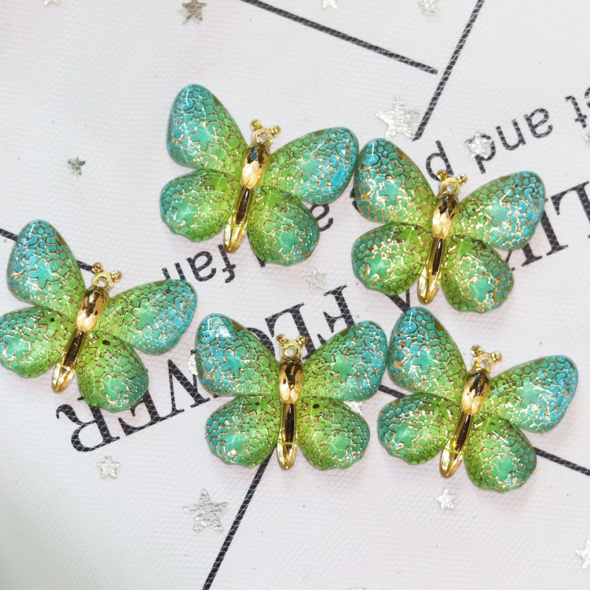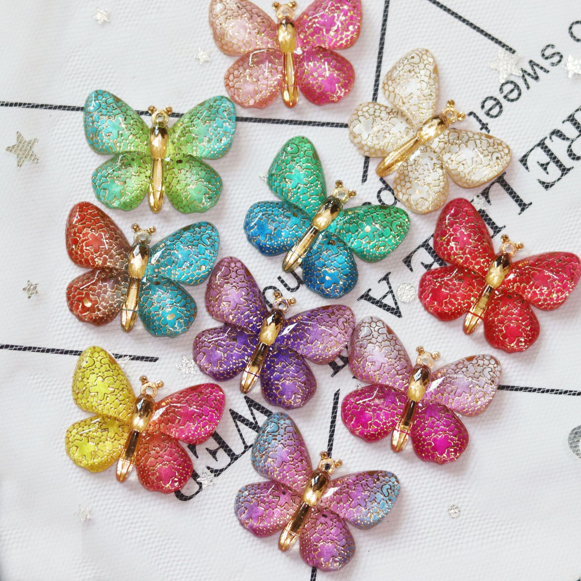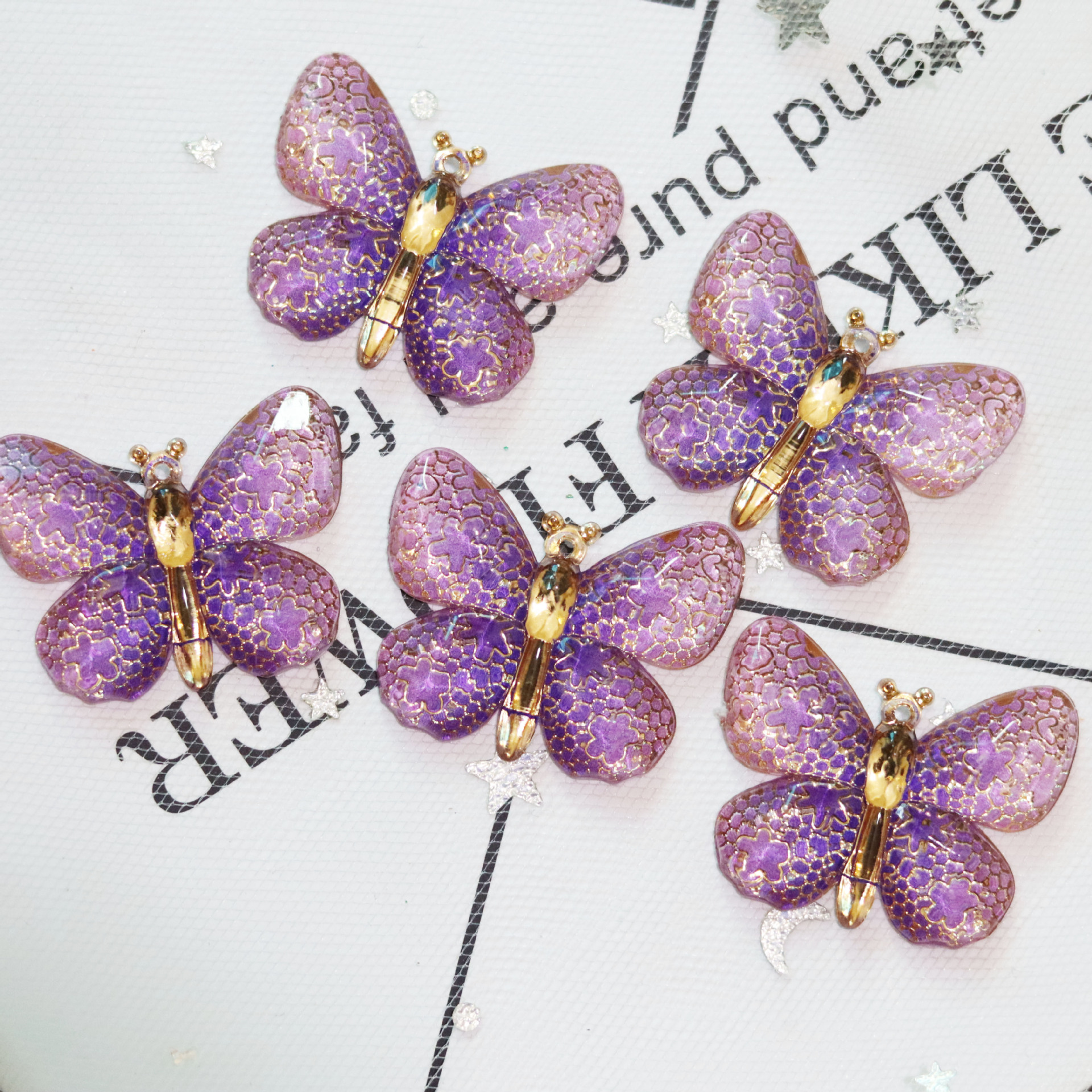 新款跨境七彩蝴蝶带孔平底钻树脂混合物婚礼贴花工艺DIY饰品配件