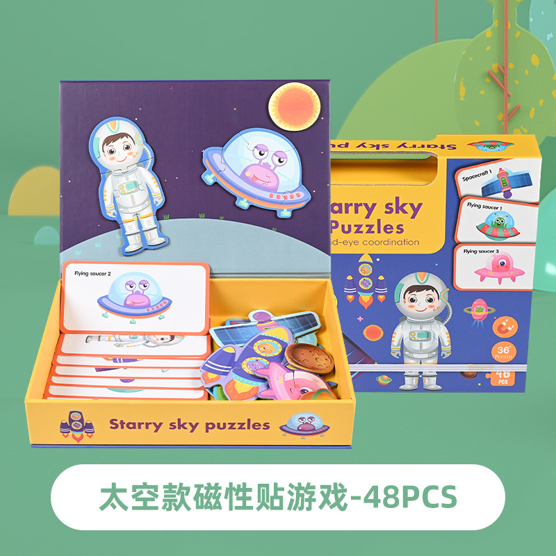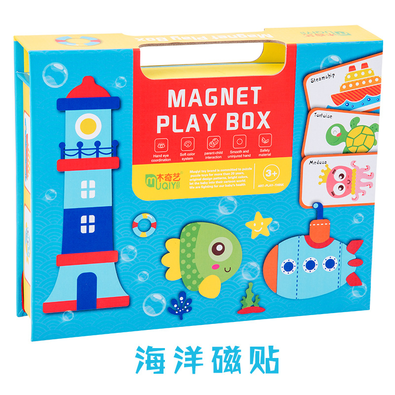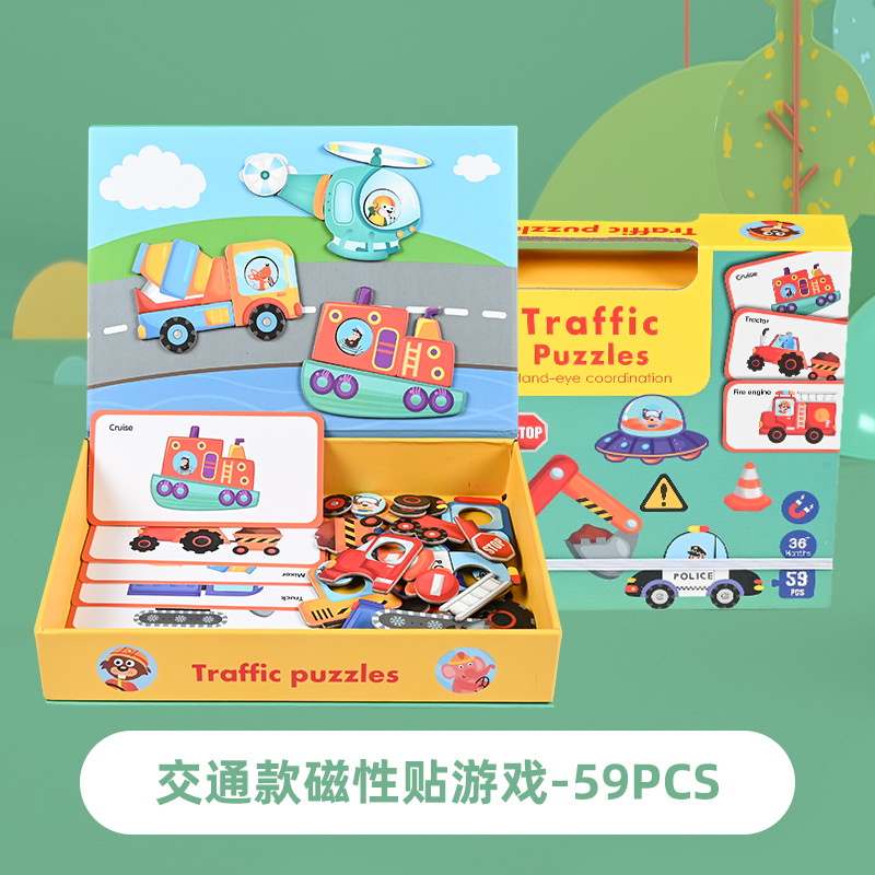 儿童早教磁贴拼图游戏盒动物交通工具拼拼乐卡通磁性拼图益智玩具