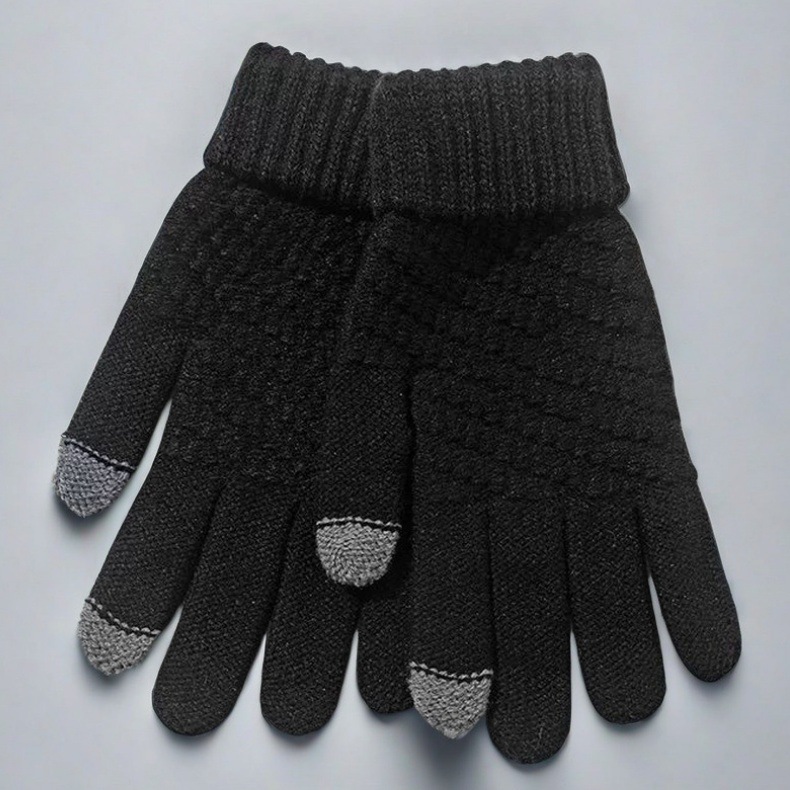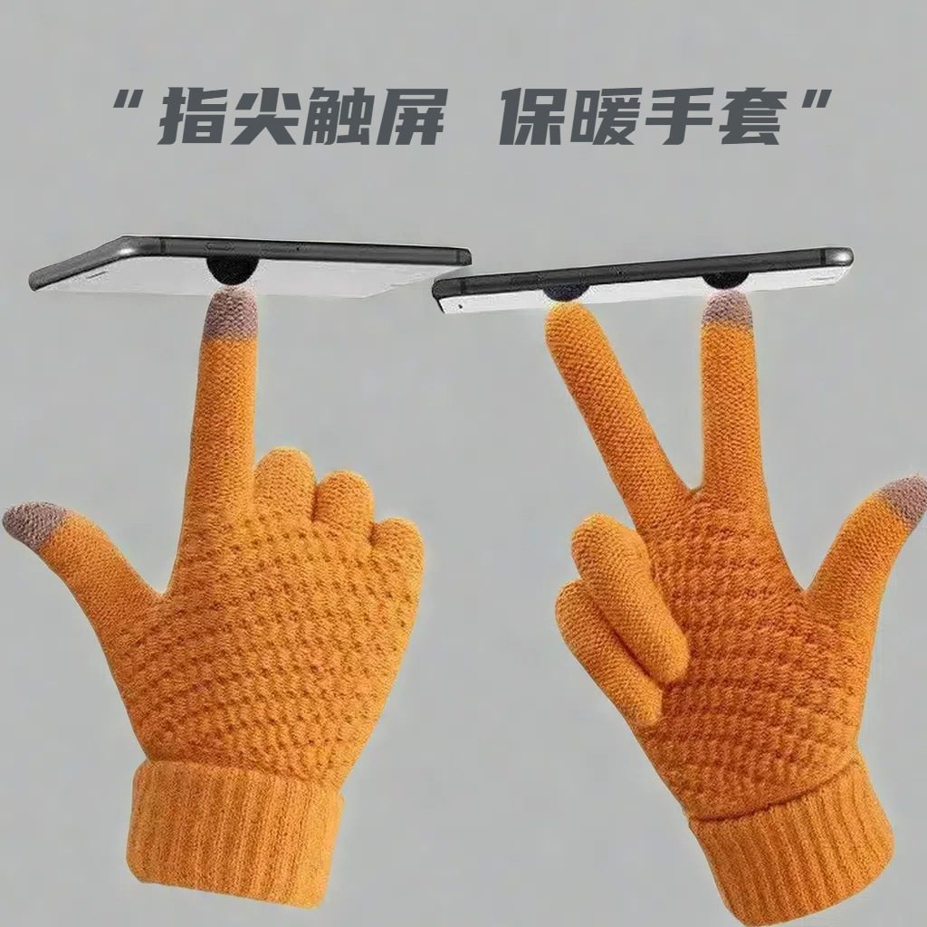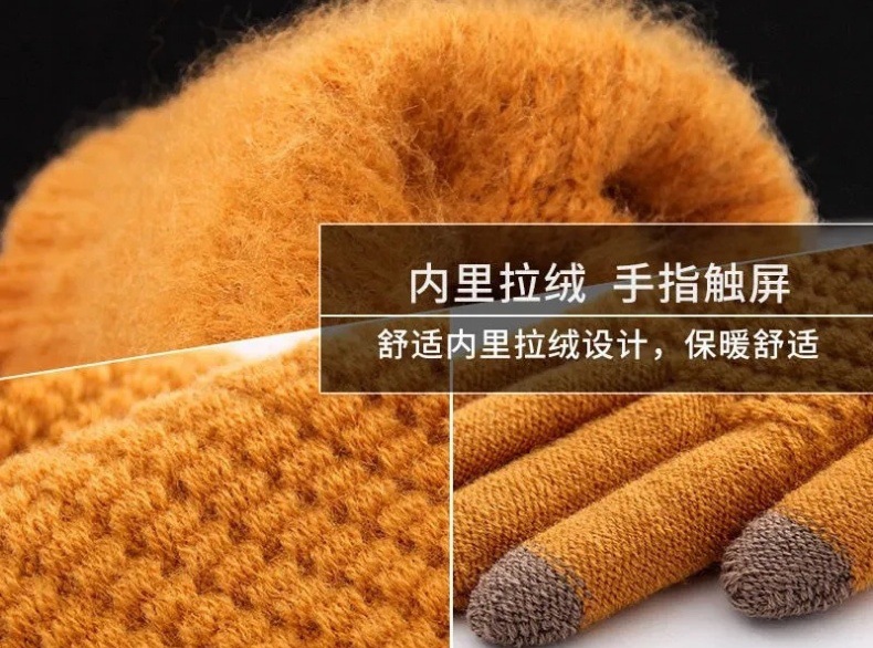 新款男女冬季加绒加厚韩版防寒可爱骑行触屏保暖毛线针织手套