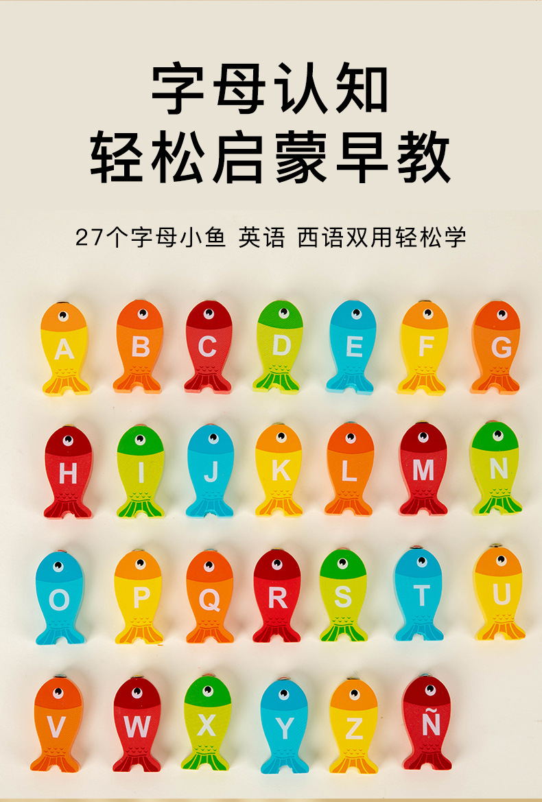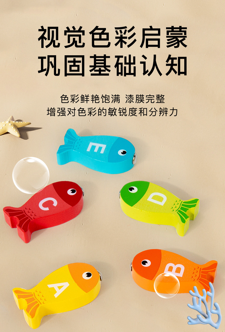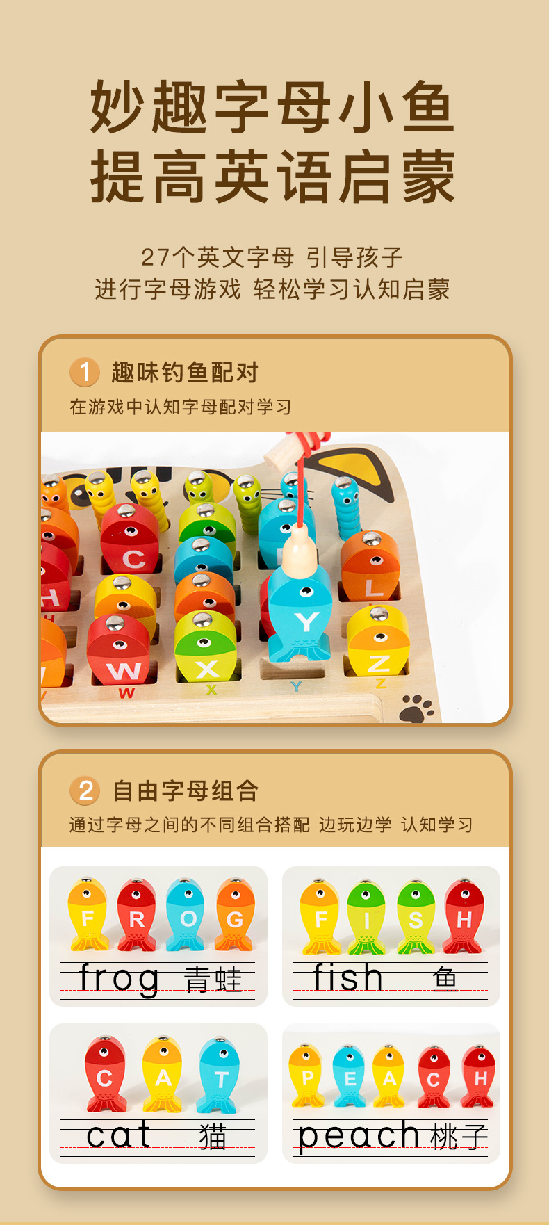 儿童木制磁性钓鱼抓虫游戏宝宝手眼协调英文认知数学运算益智玩具