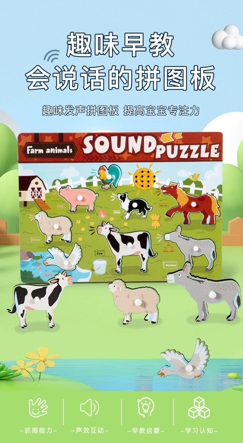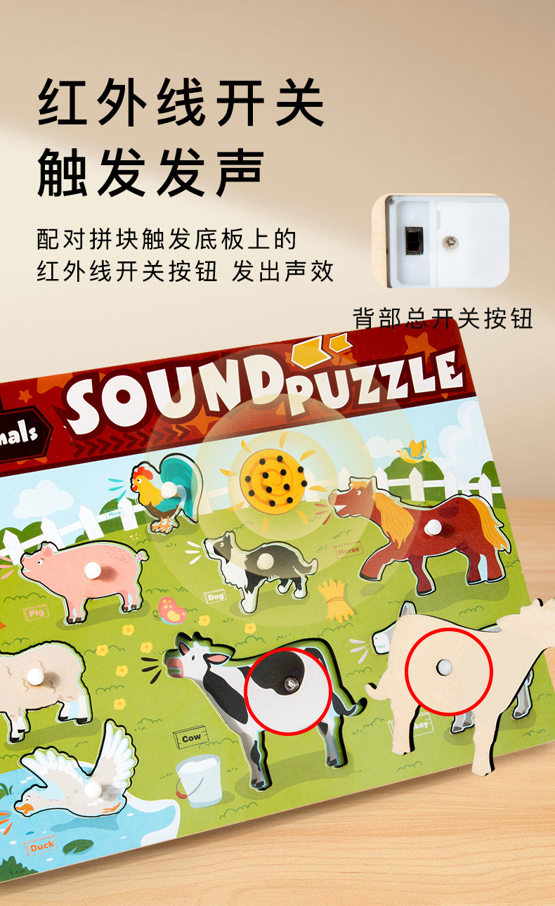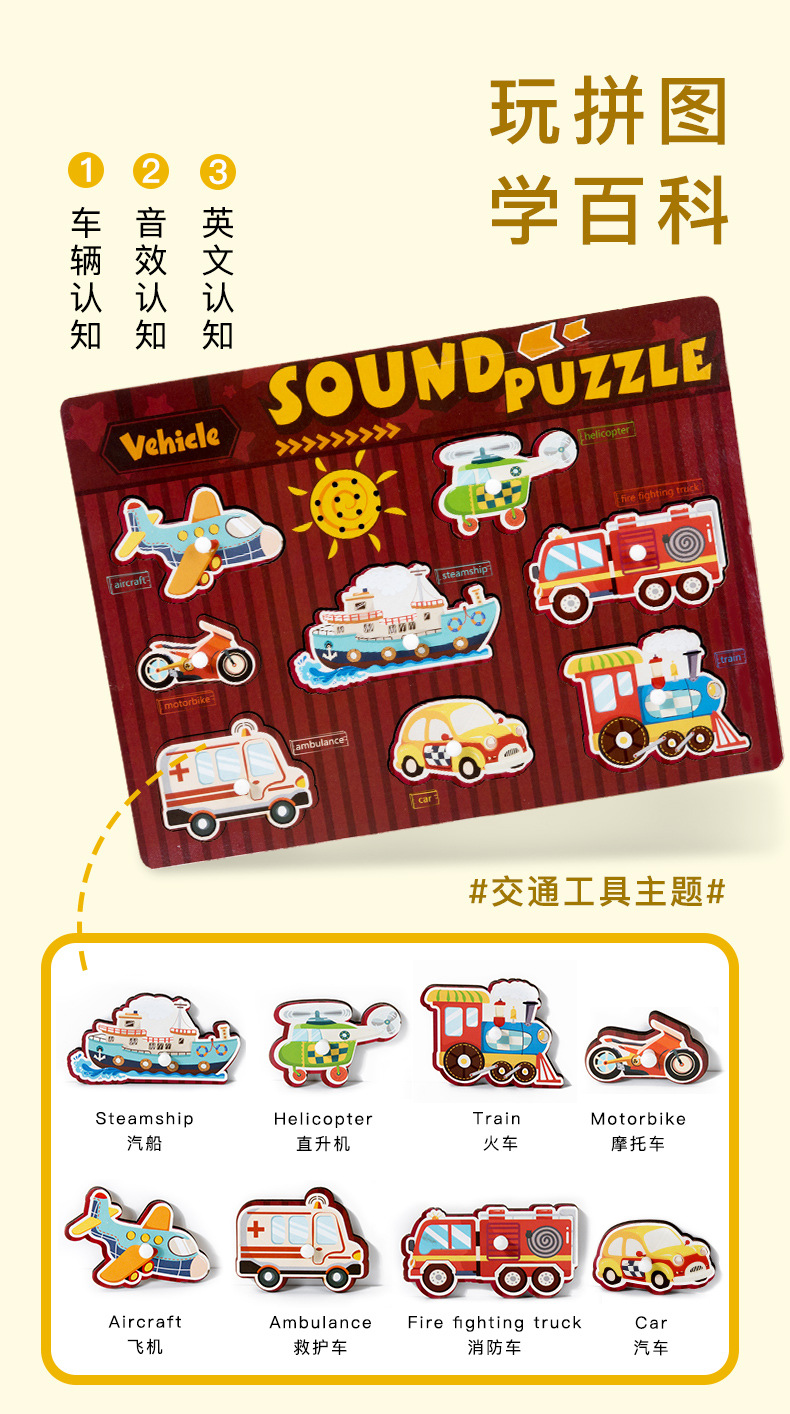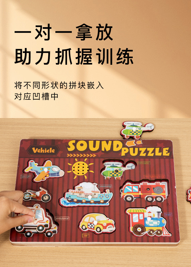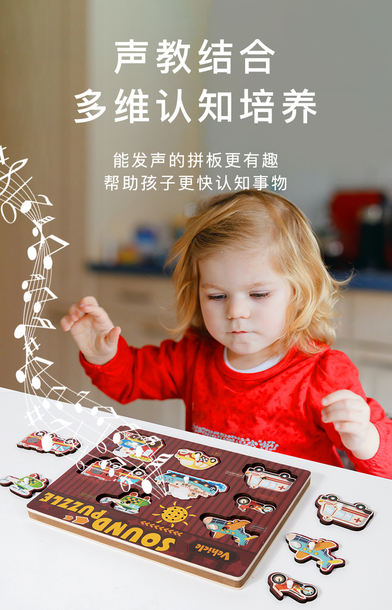 跨境儿童木质启蒙早教有声拼图动物交通乐器认知发声拼图益智玩具