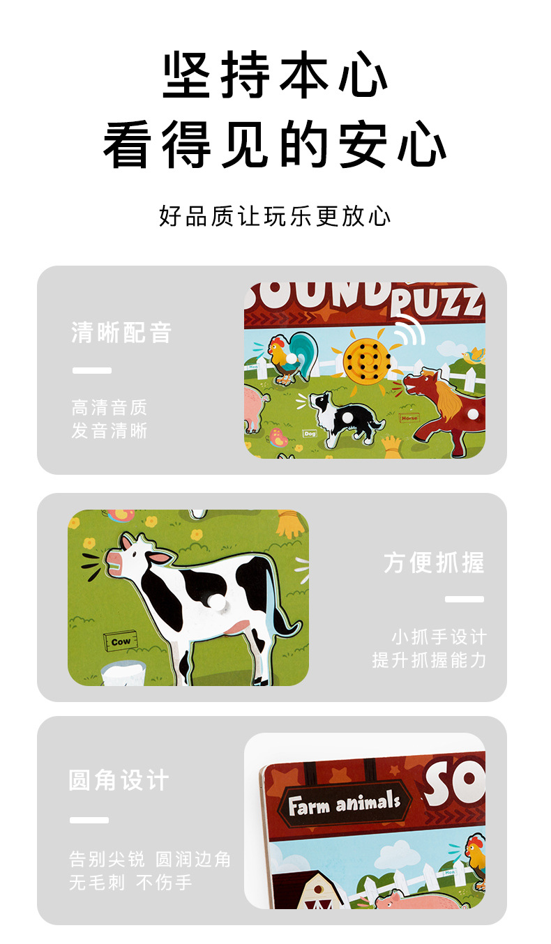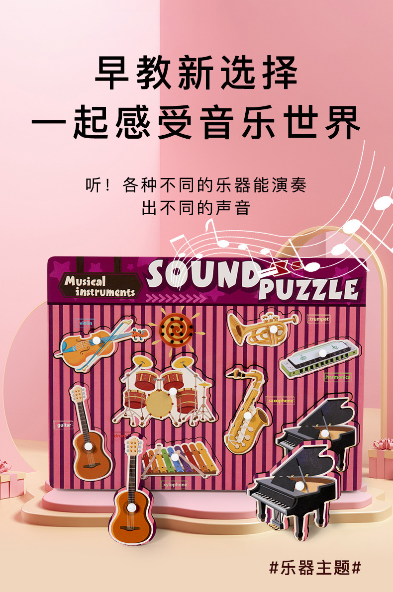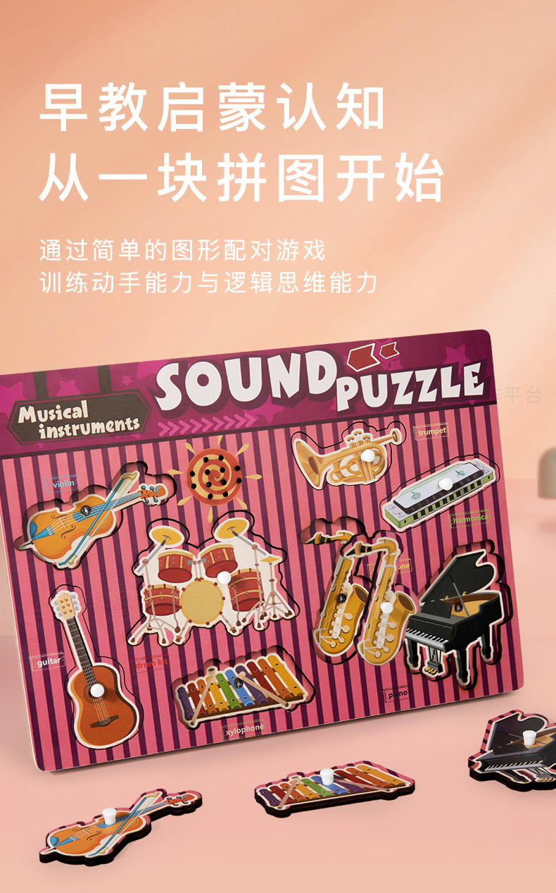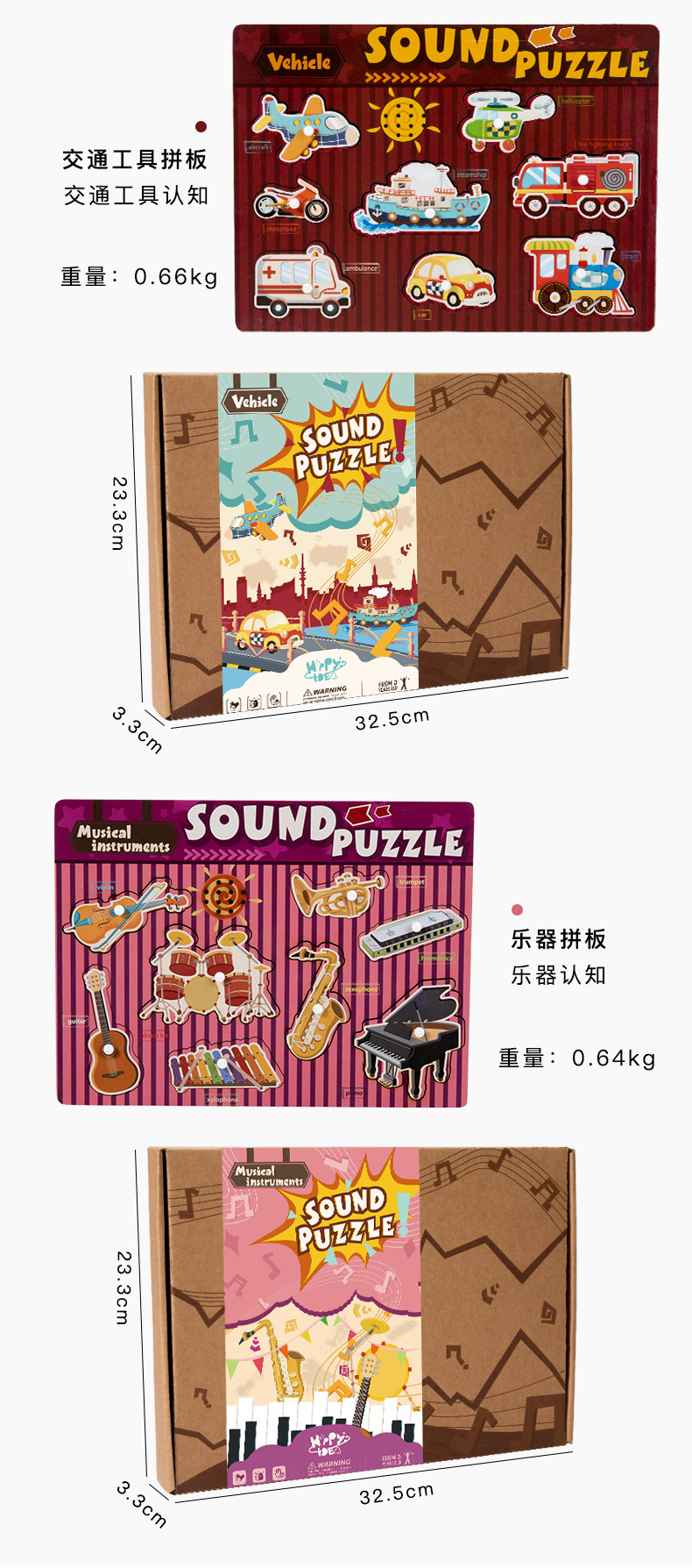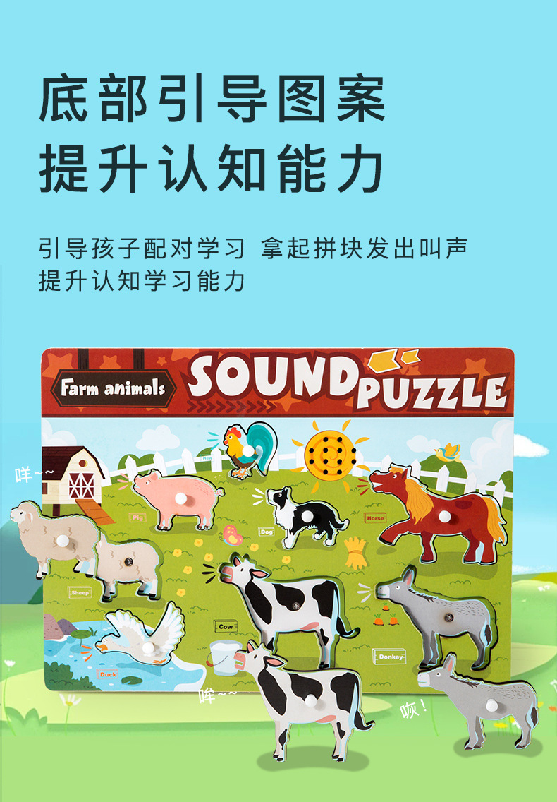跨境儿童木质启蒙早教有声拼图动物交通乐器认知发声拼图益智玩具