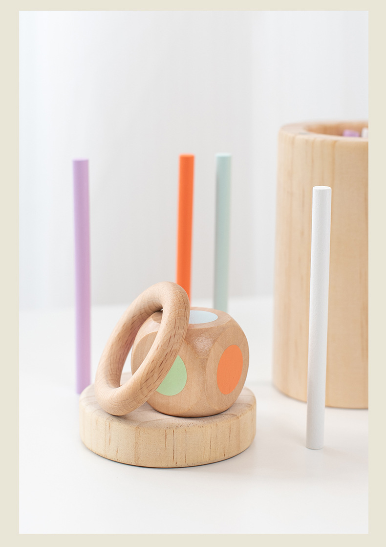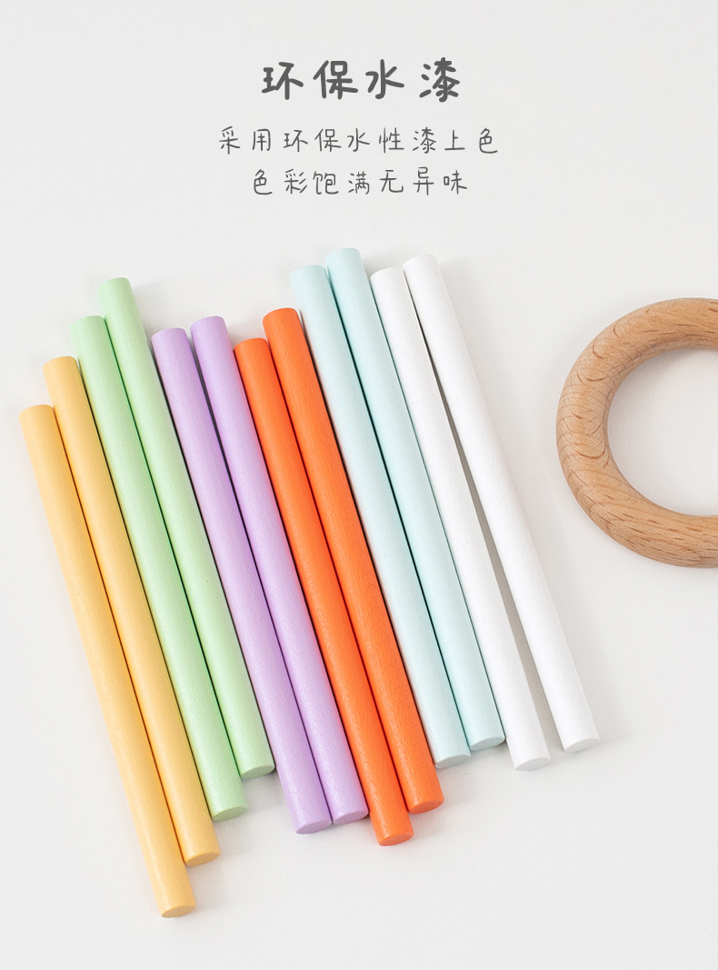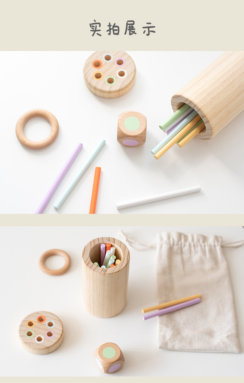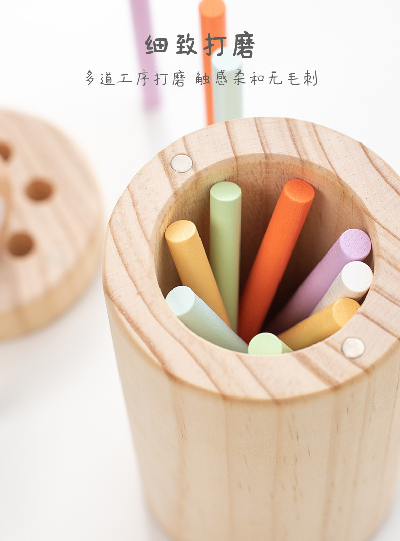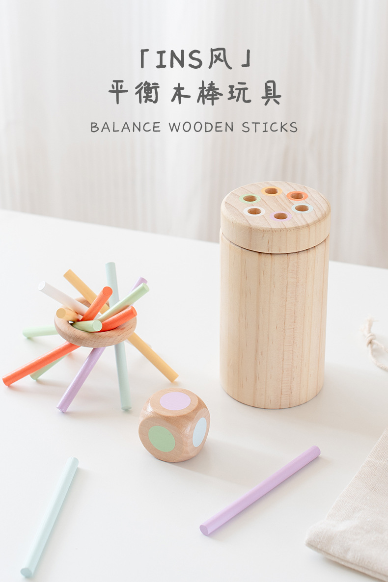 跨境儿童益智平衡木棍游戏精细动作专注力训练颜色分类桶木质玩具
