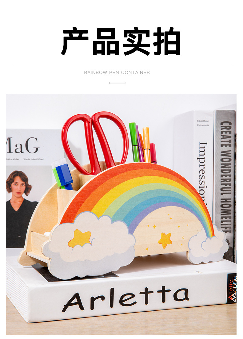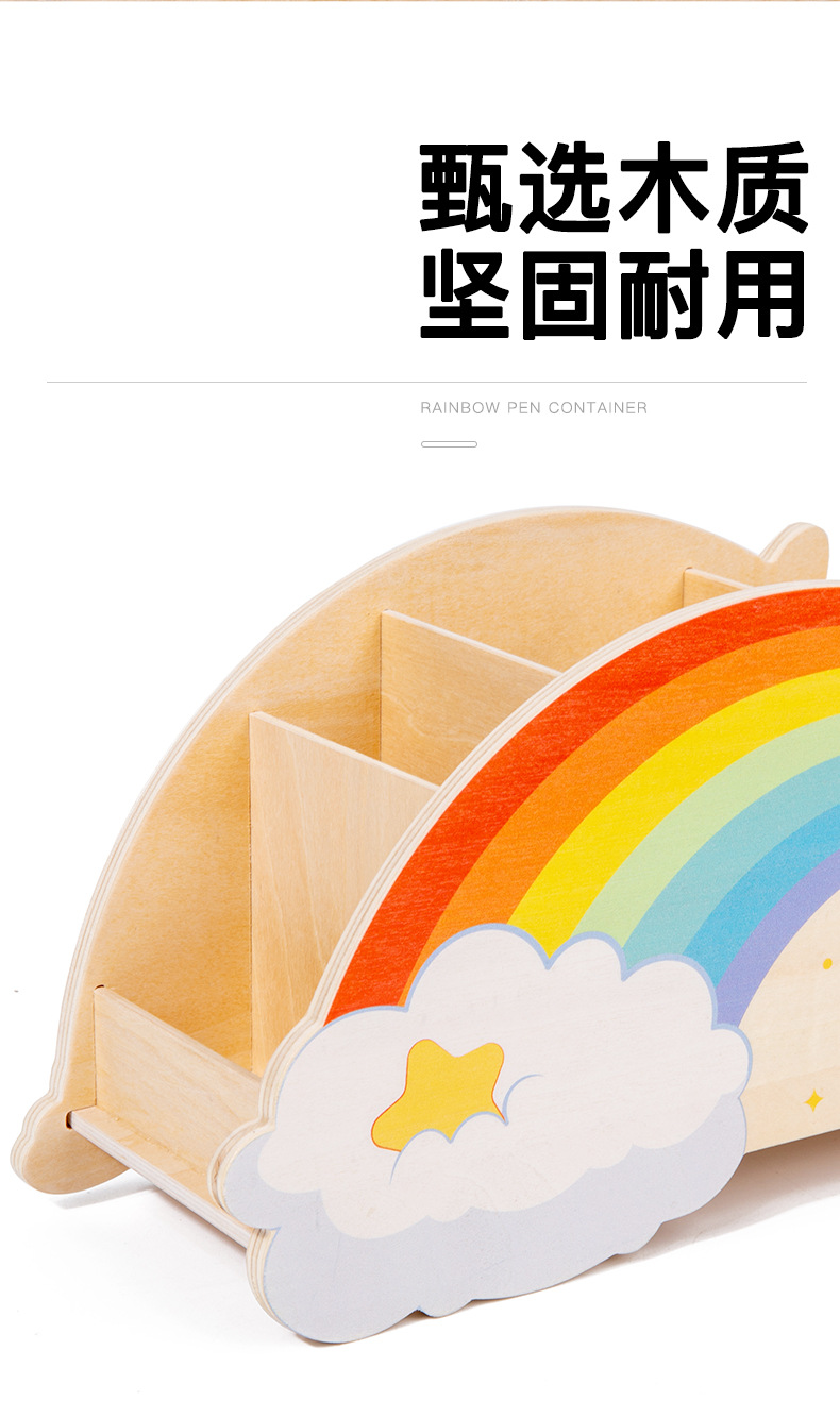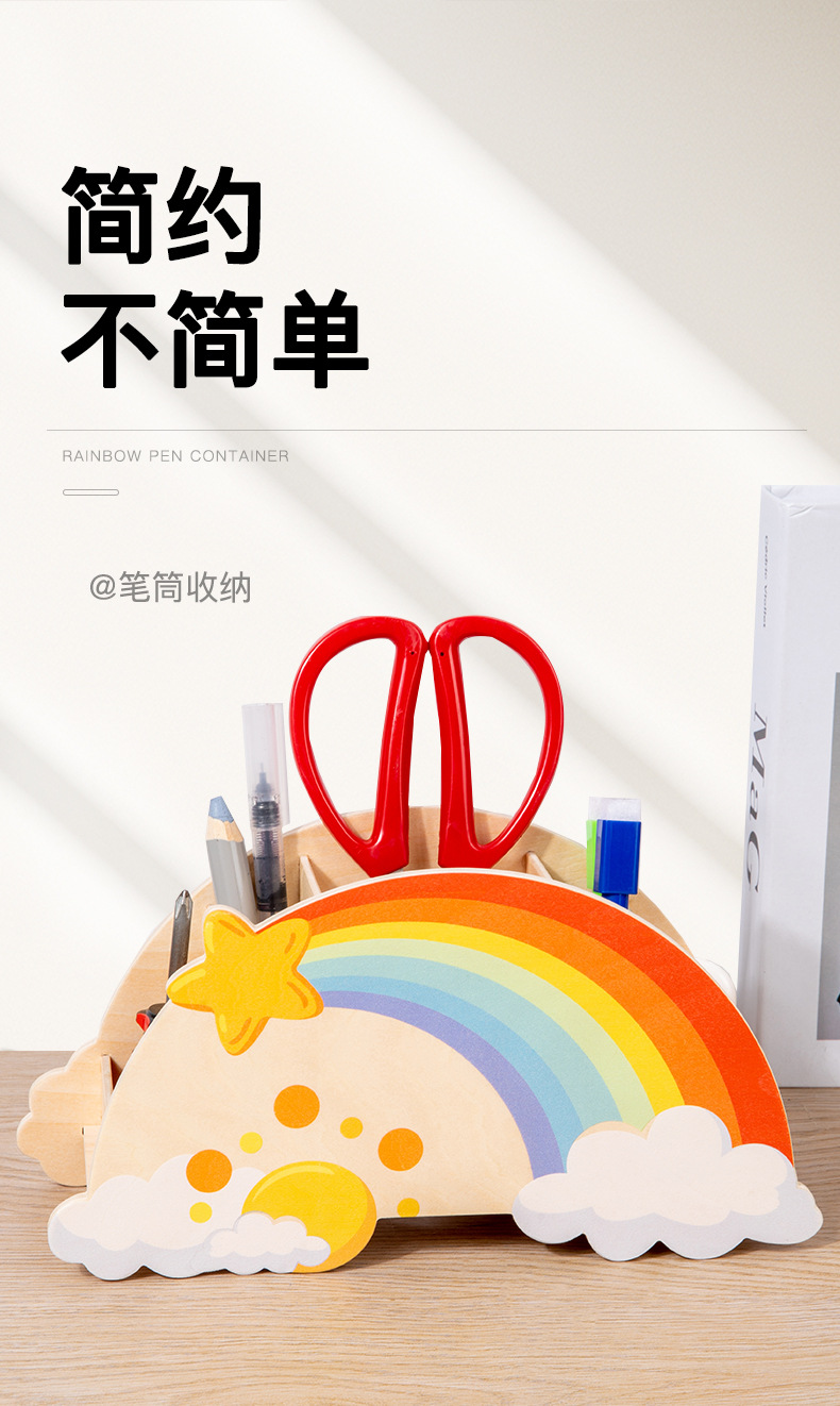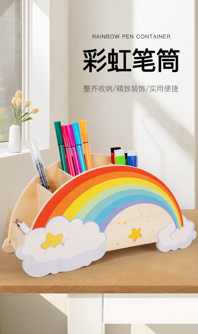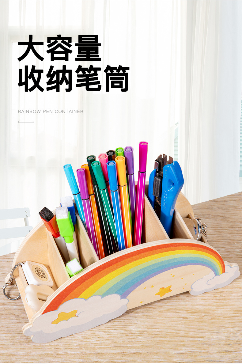 儿童木质创意彩虹笔筒家用桌面摆件办公学习用品文具收纳筒玩具
