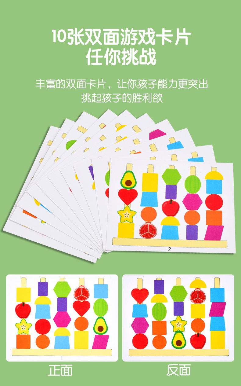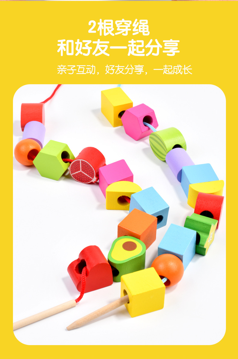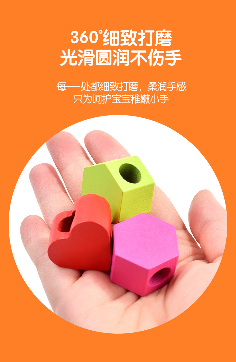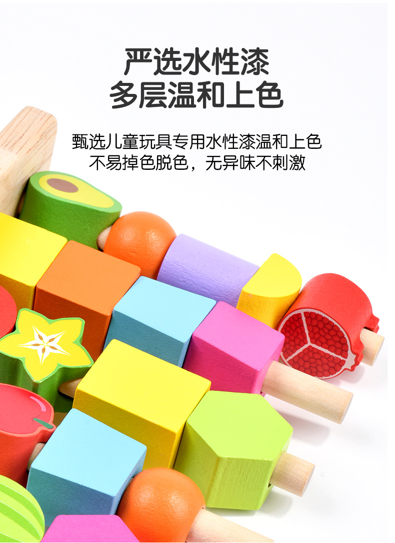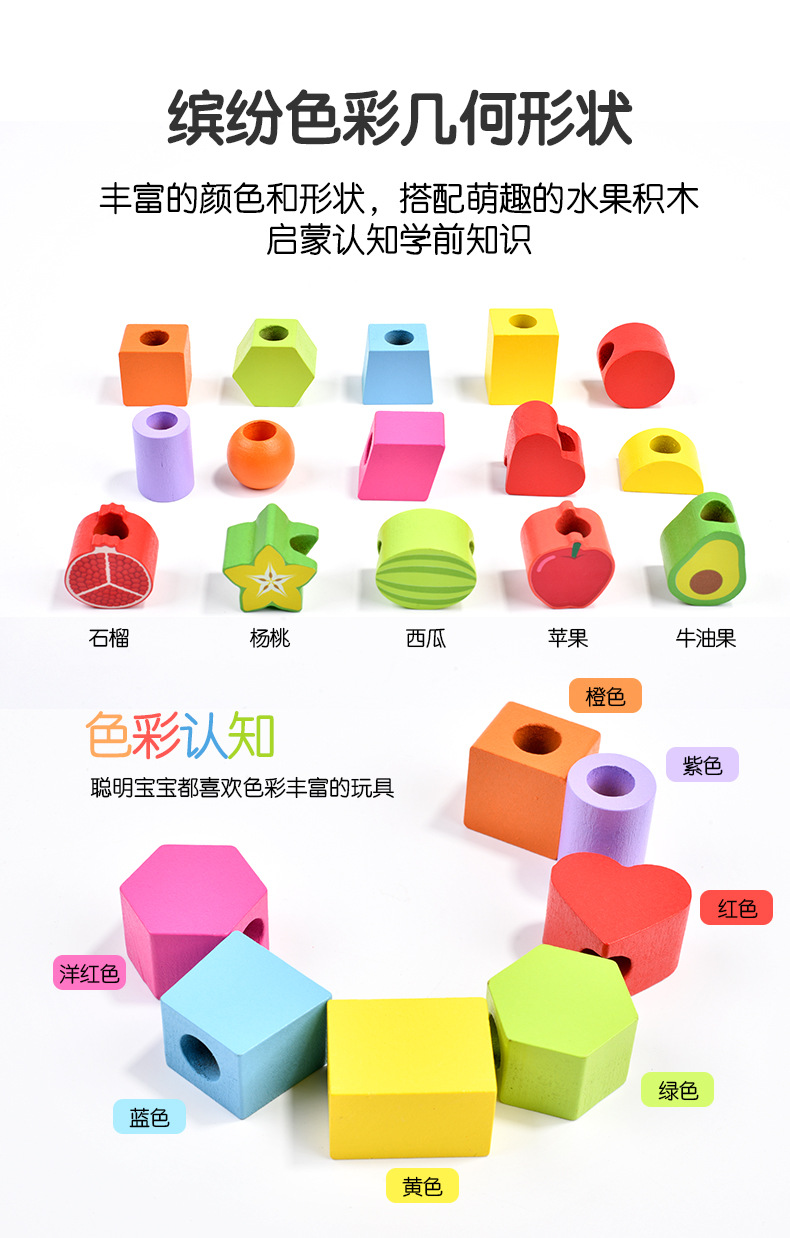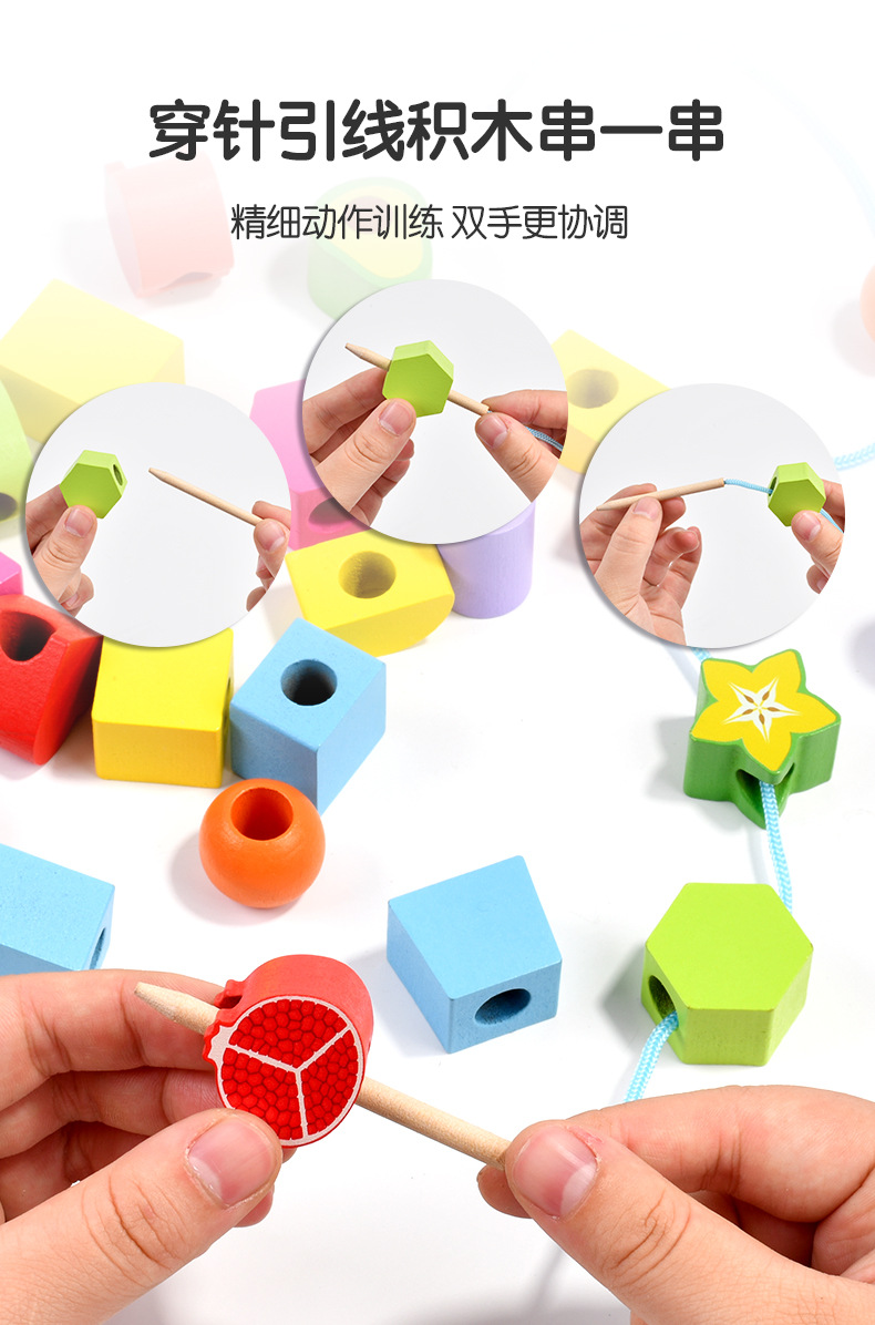 儿童木质五套柱串珠几何形状配对颜色认知启蒙早教益智积木玩具