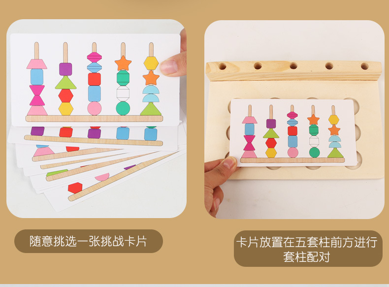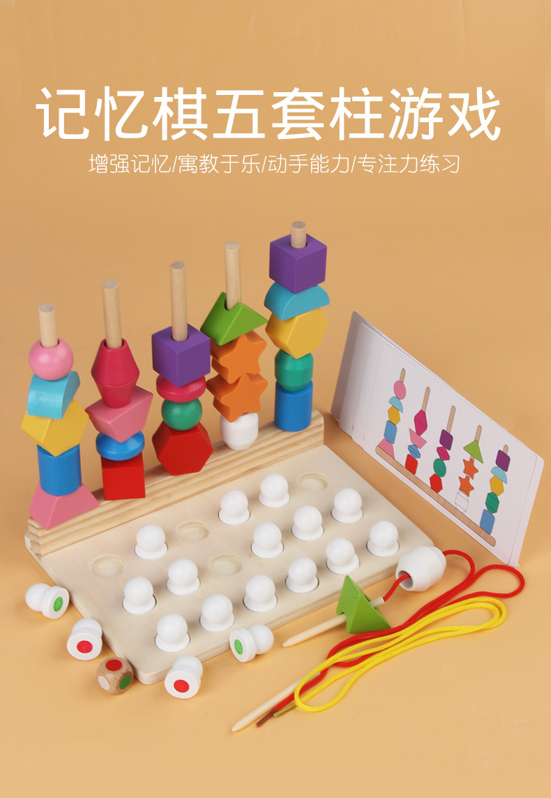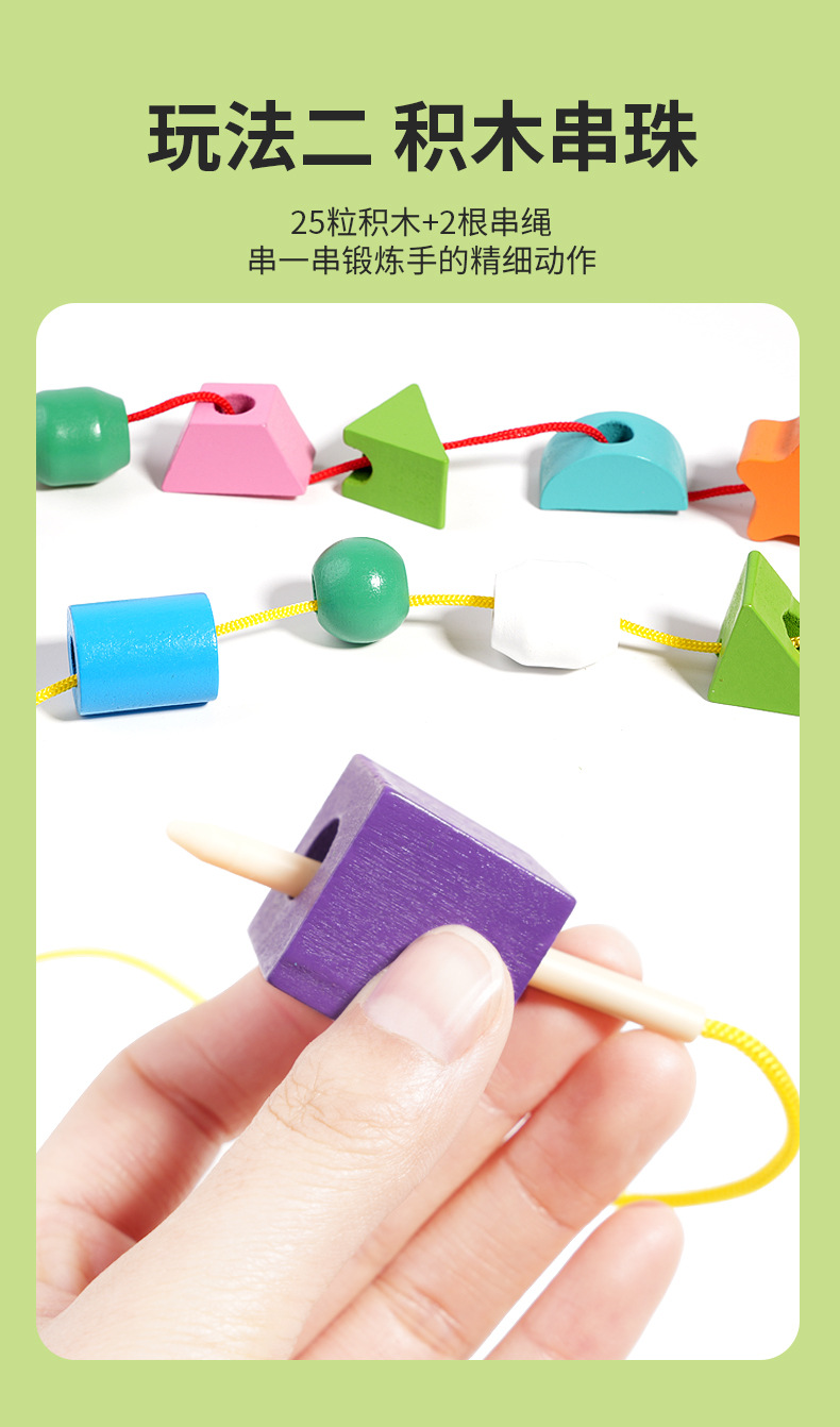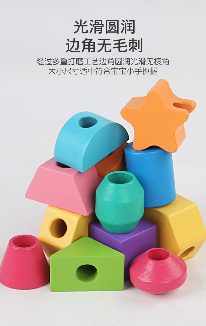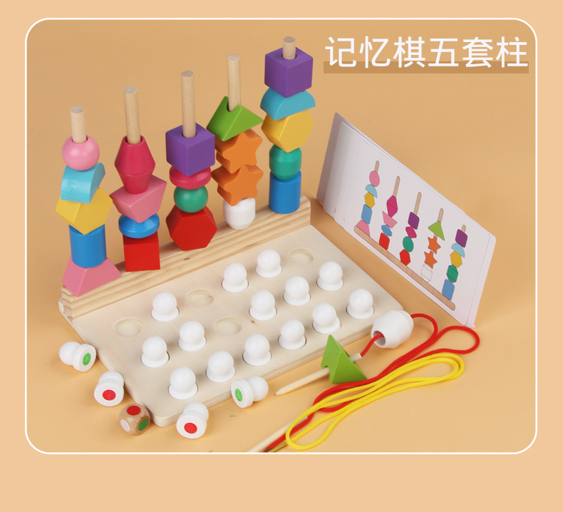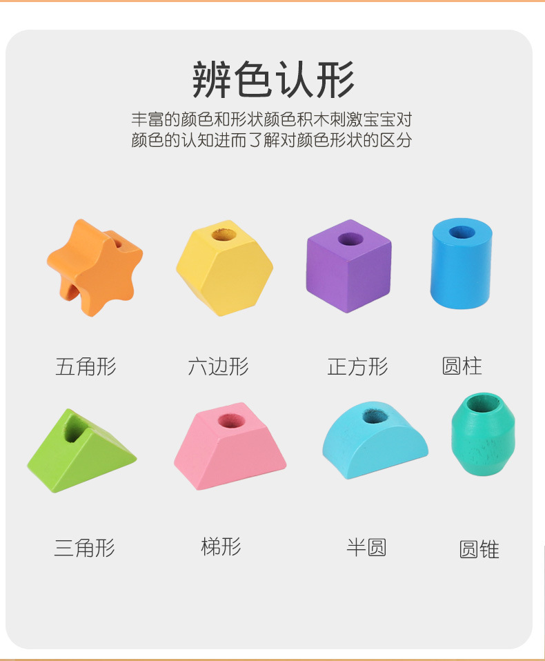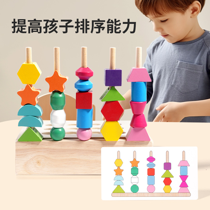 跨境木质五套柱钓鱼拔萝卜积木串珠儿童早教几何形状配对益智玩具