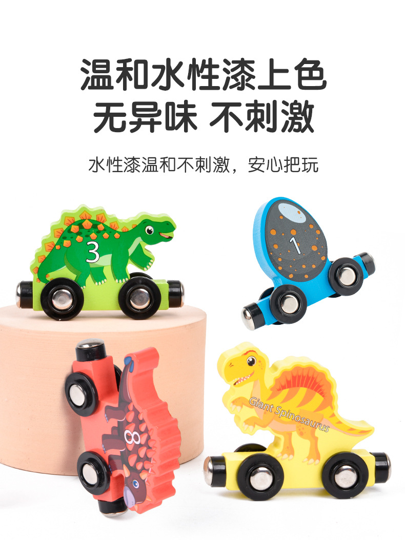 儿童木质恐龙数字磁性小火车拼装拖拉积木宝宝启蒙早教益智力玩具