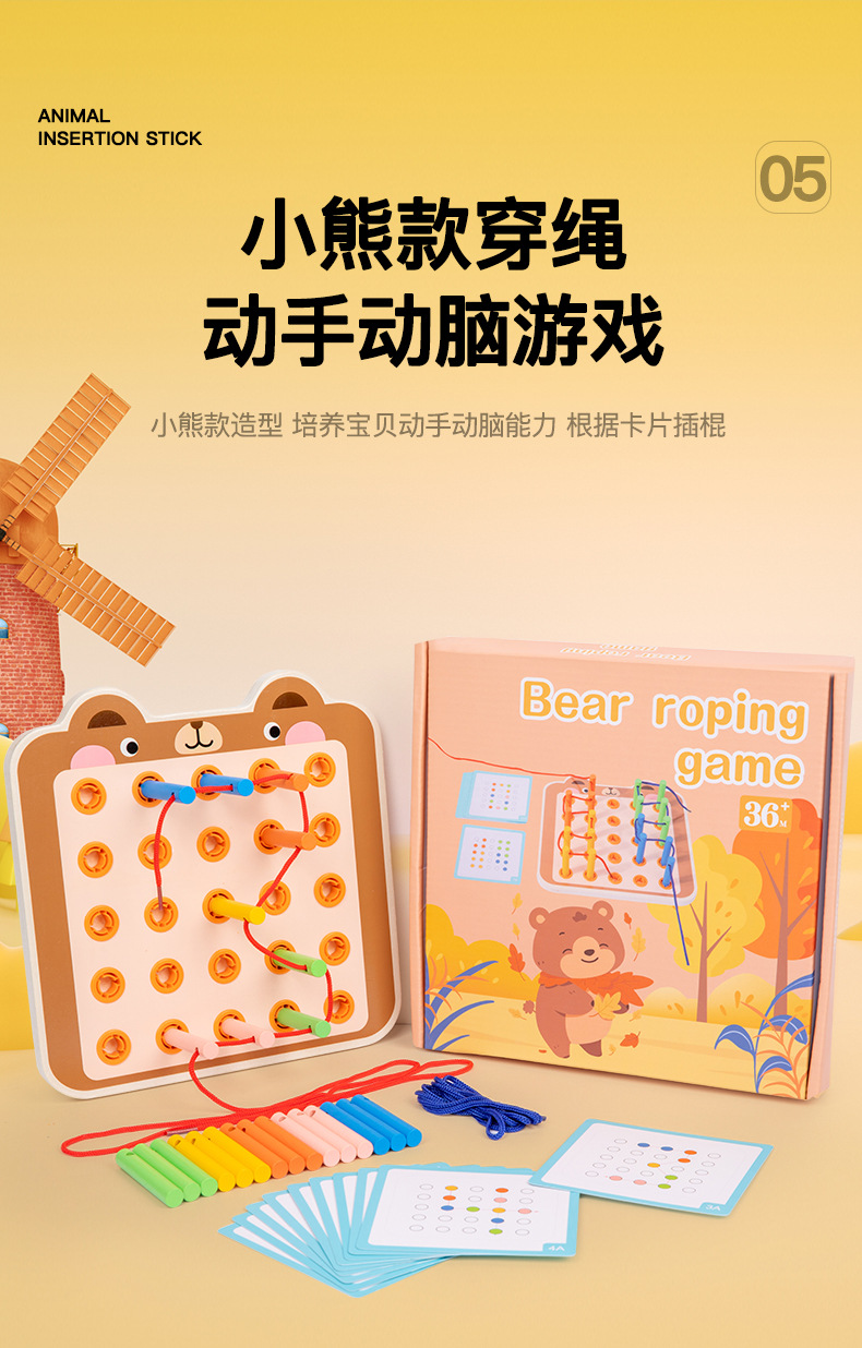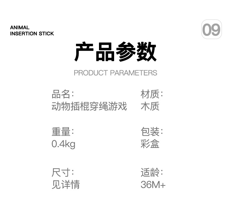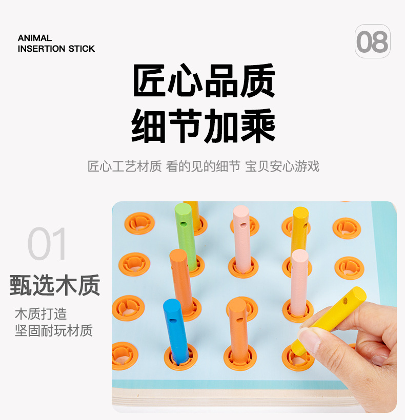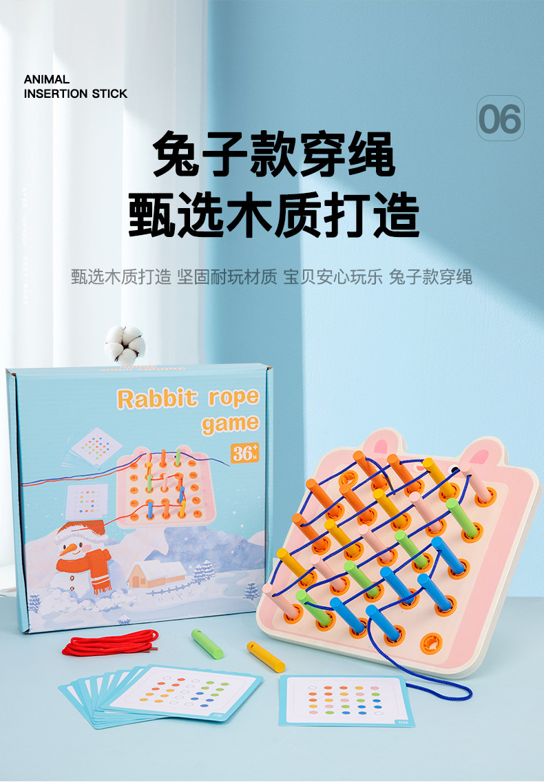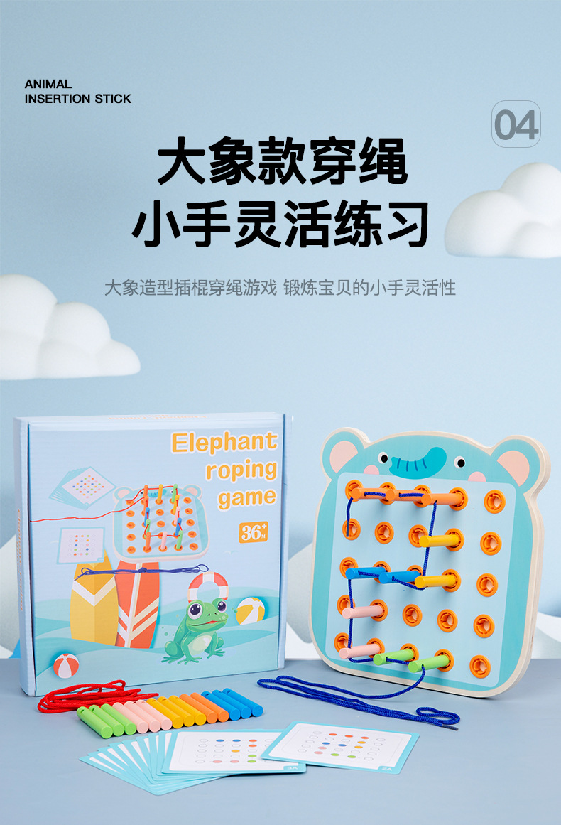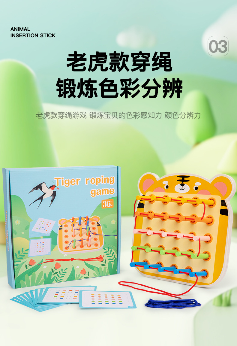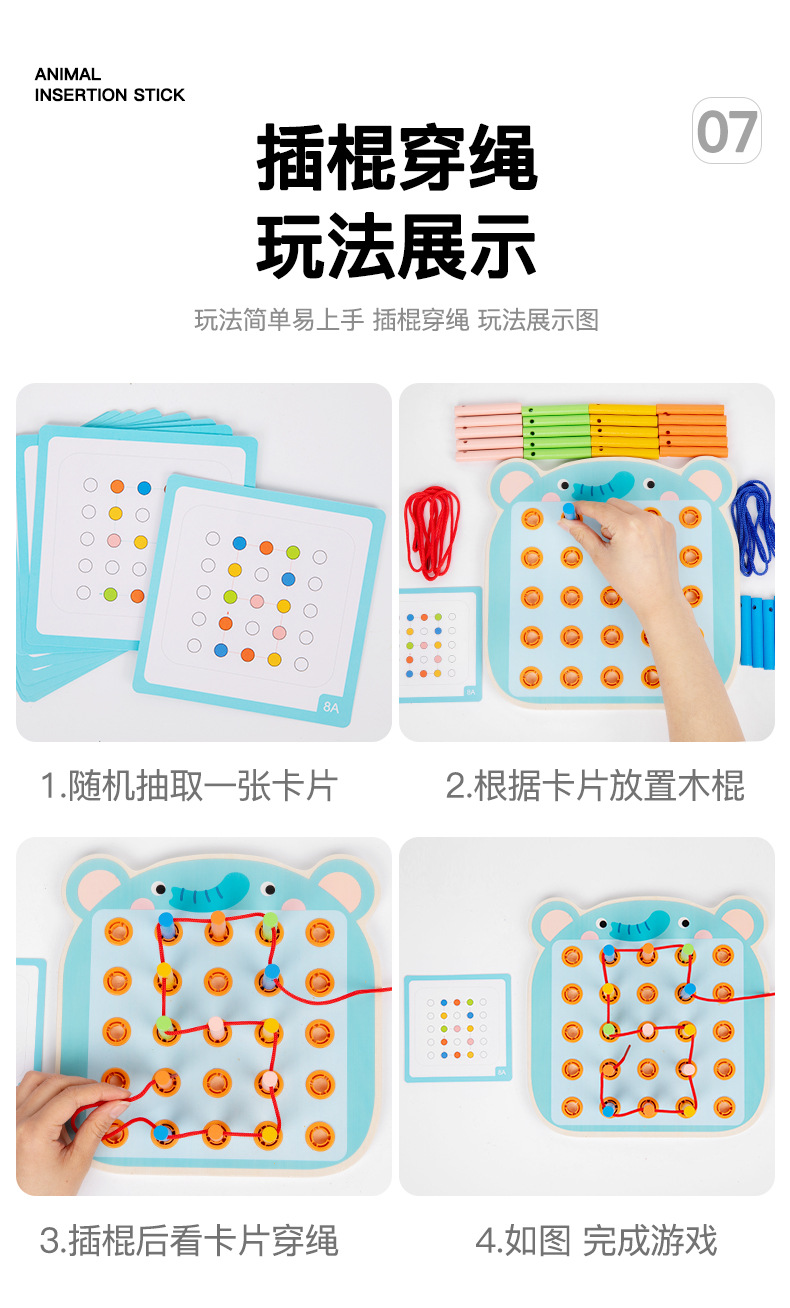 儿童木质动物穿线板幼儿园宝宝早教穿绳游戏精细动作感统训练玩具