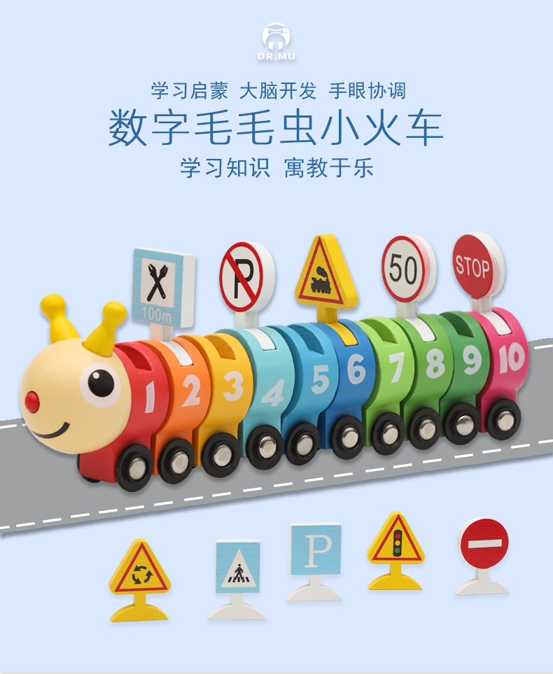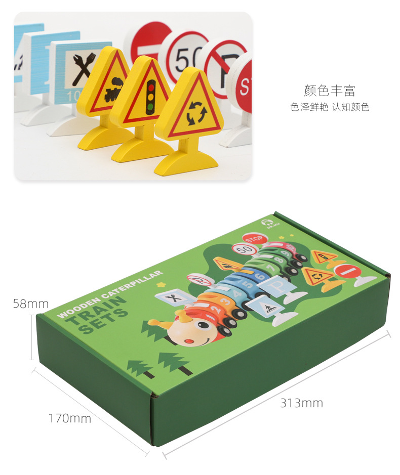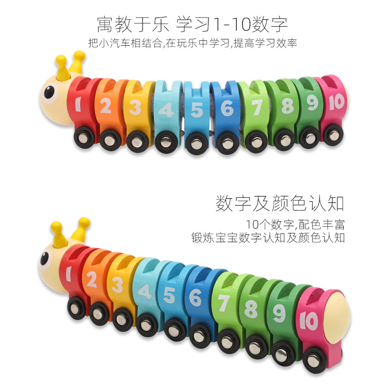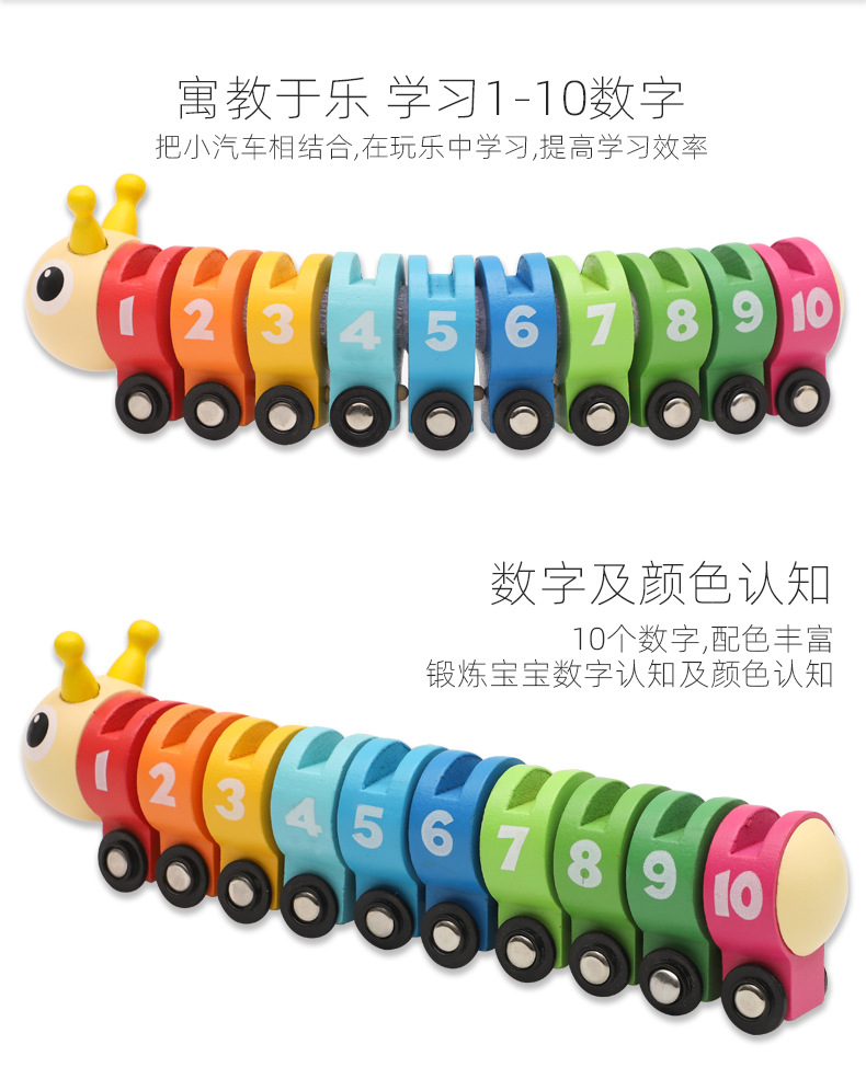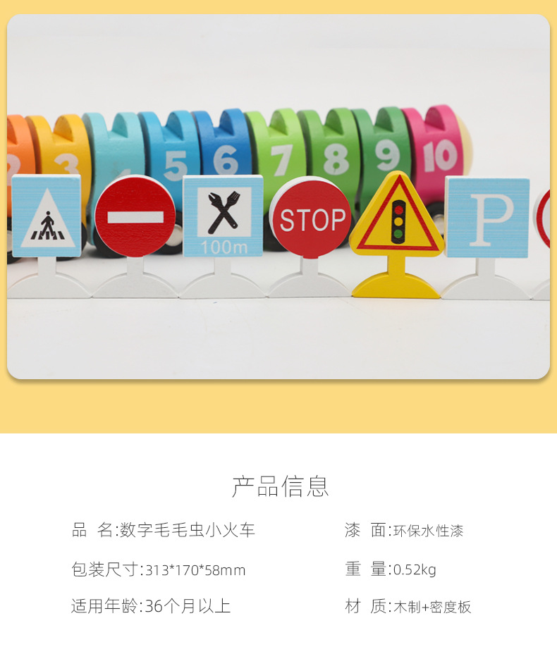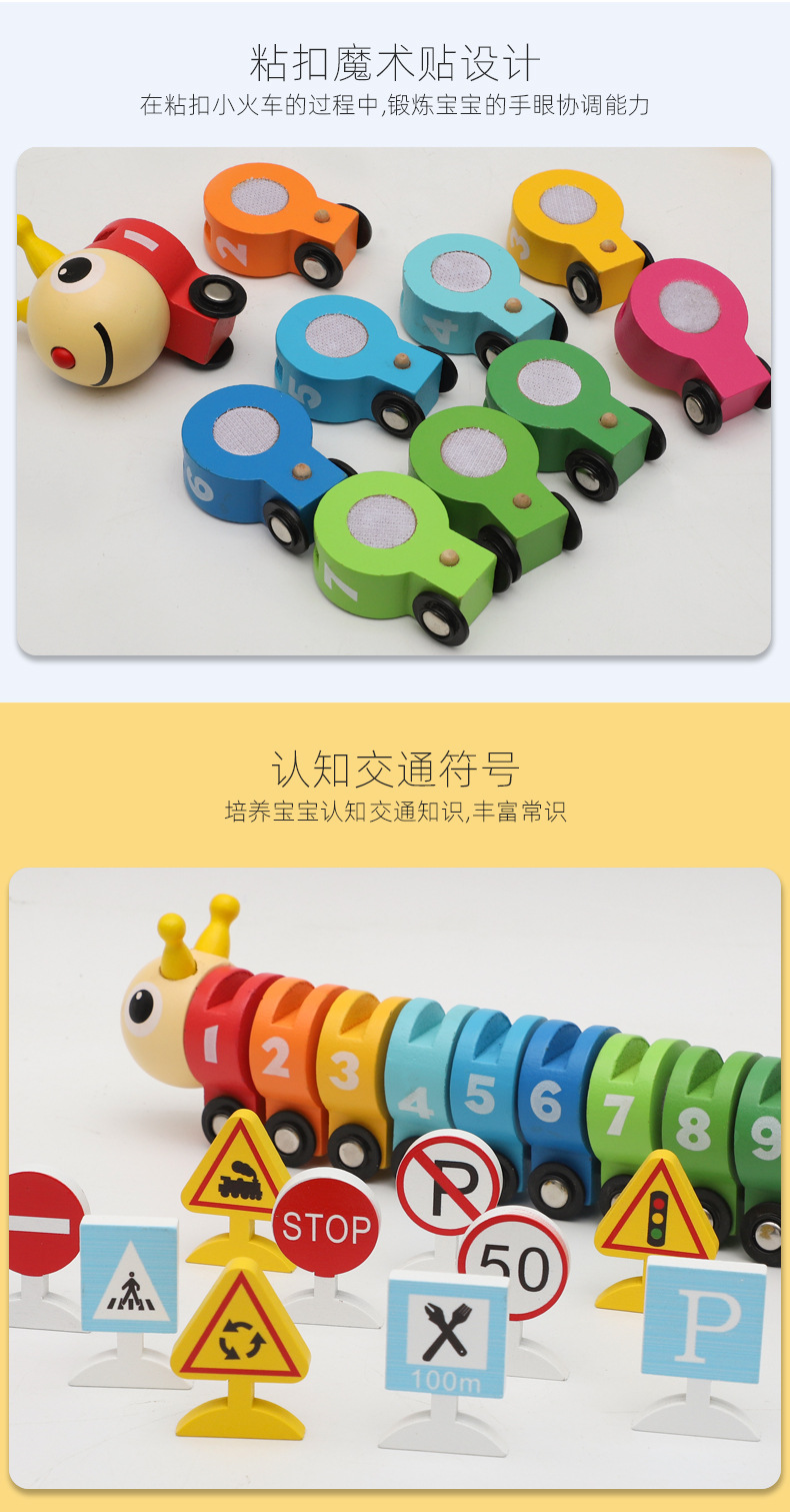 儿童早教木制毛毛虫小火车马路停车交通标识数字颜色认知益智玩具