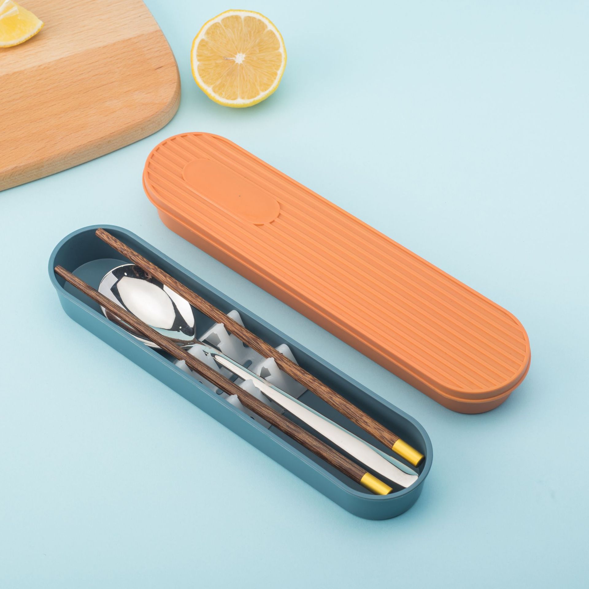 纯色木筷子不锈钢勺餐具套盒批发餐具家用户外便携餐具