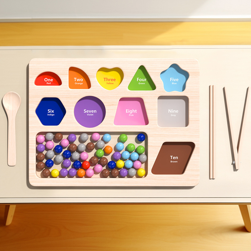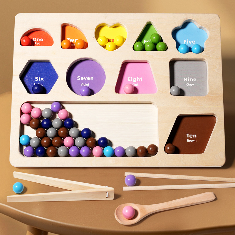 儿童早教数字形状颜色分类夹珠子锻炼手眼协调动手能力益智玩具