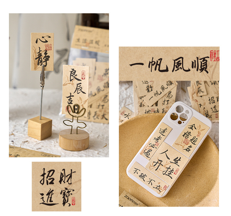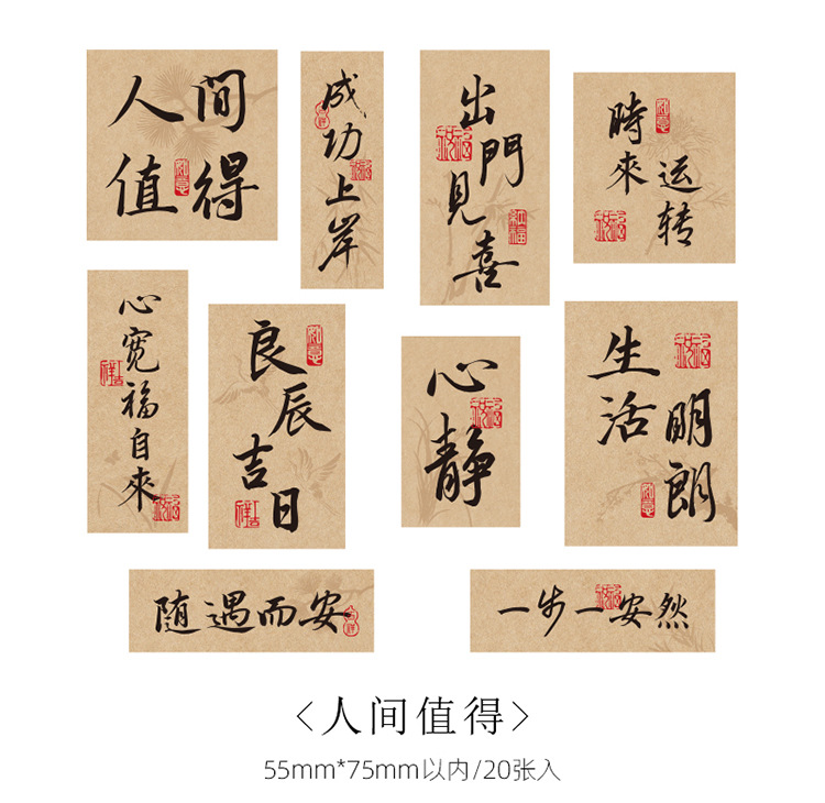 早沫便签素材包 万喜万般宜系列 中国古风书法文字手帐打底纸4款