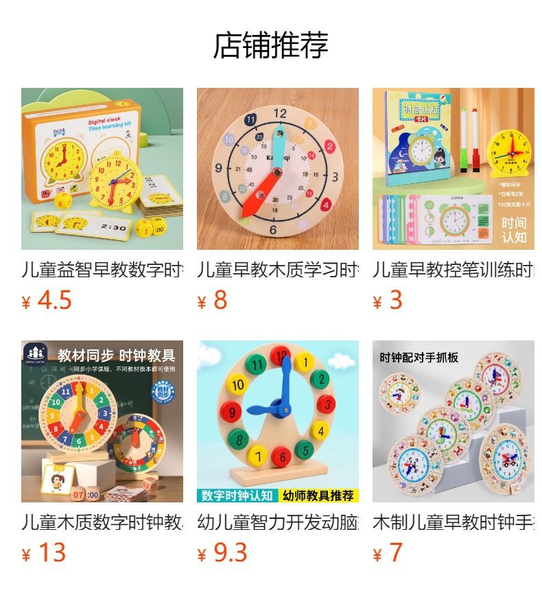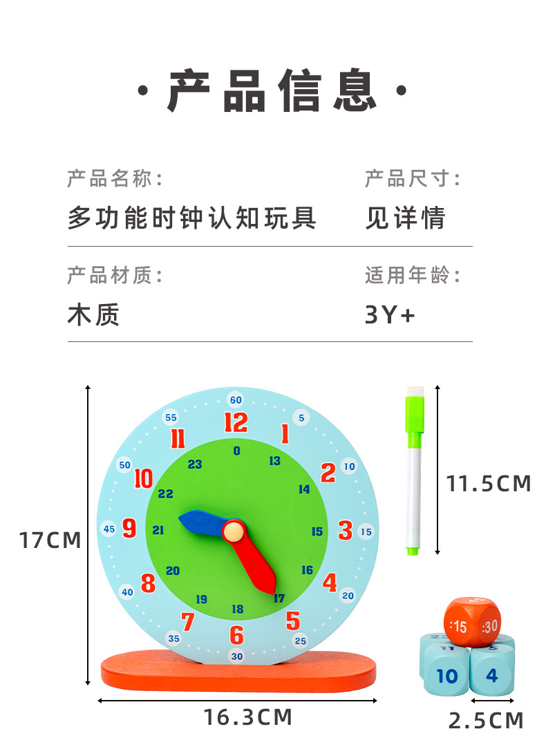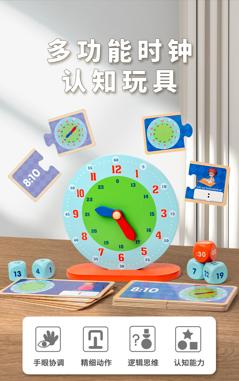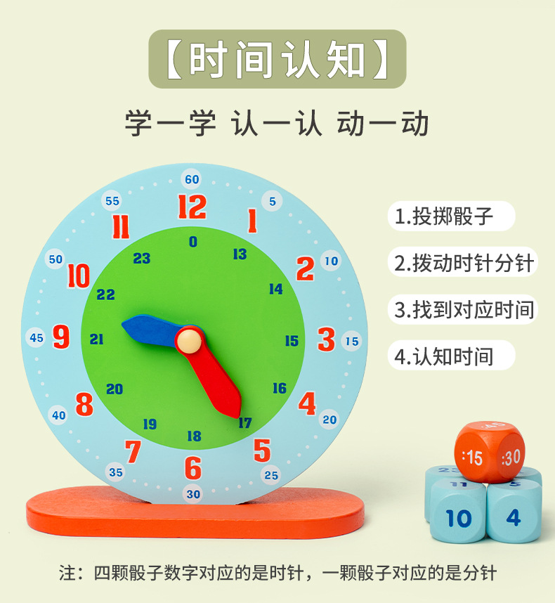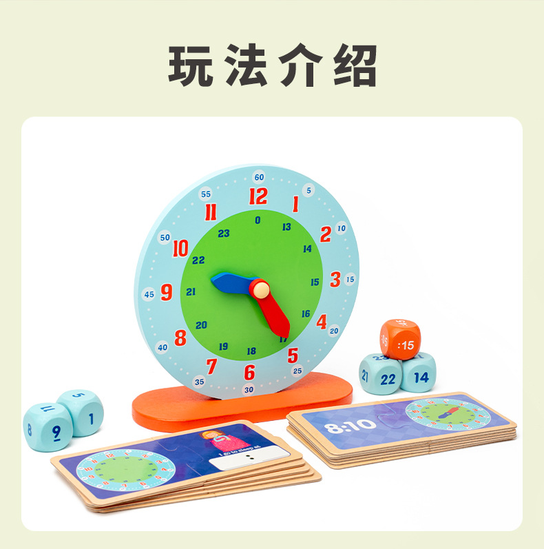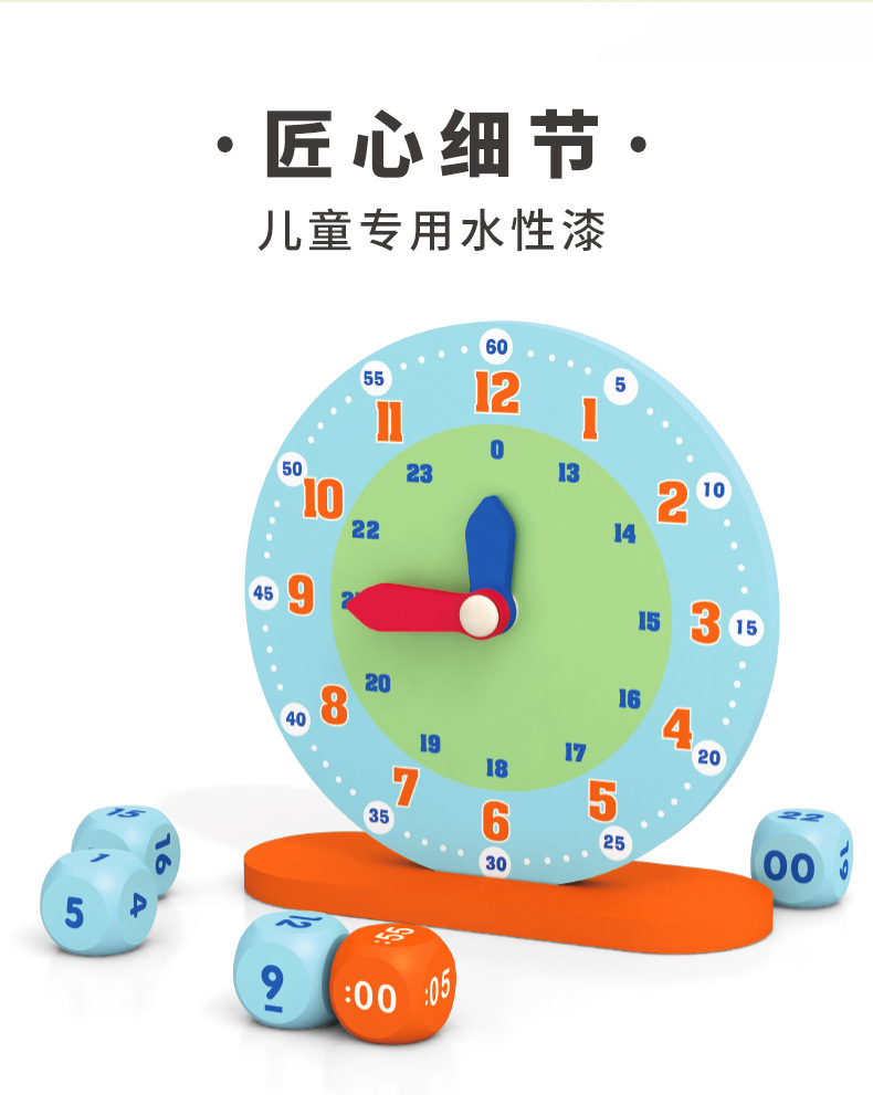 儿童木制蒙氏数字时钟教具小学生一年级认识时间钟表模型益智玩具