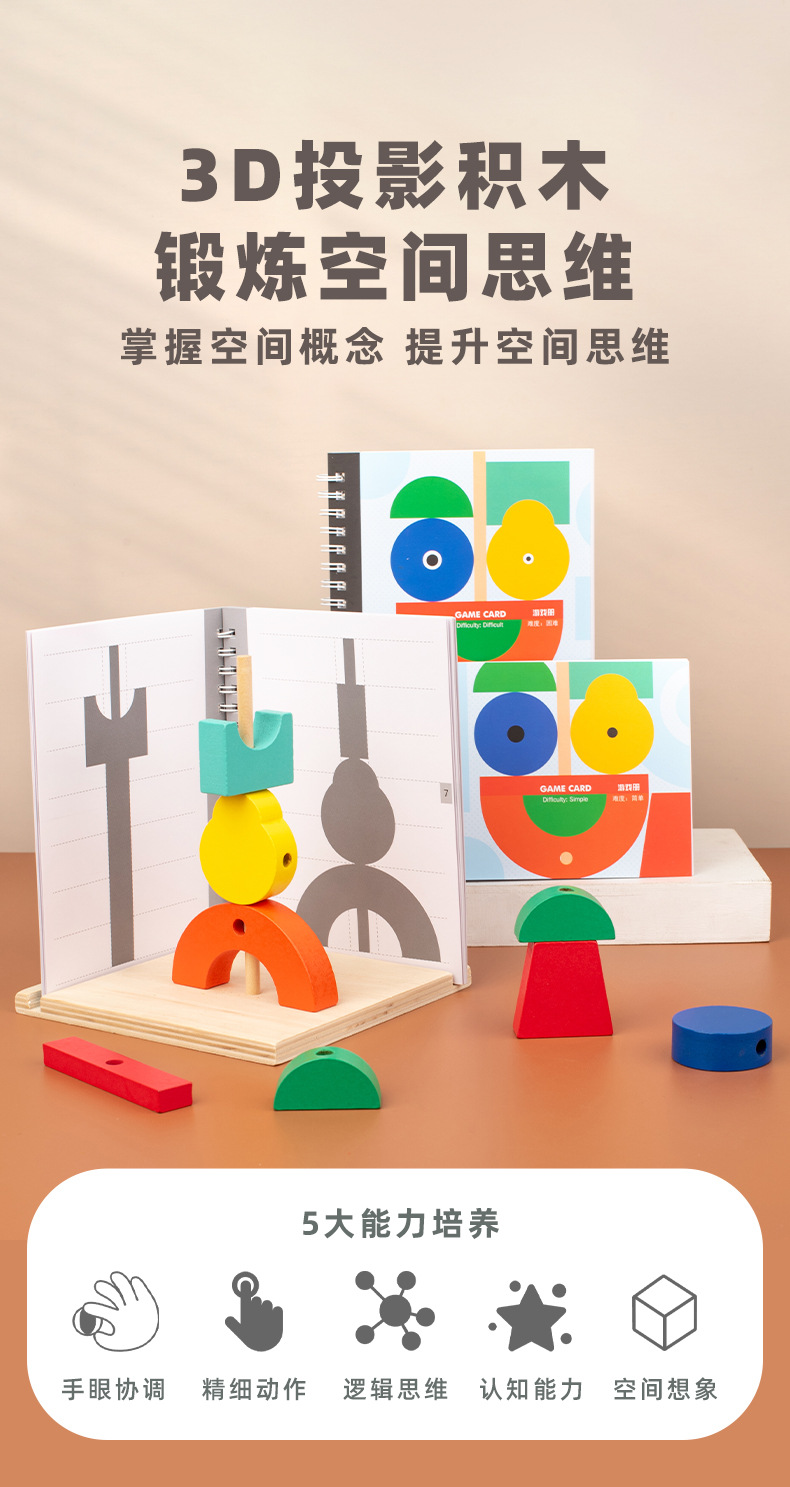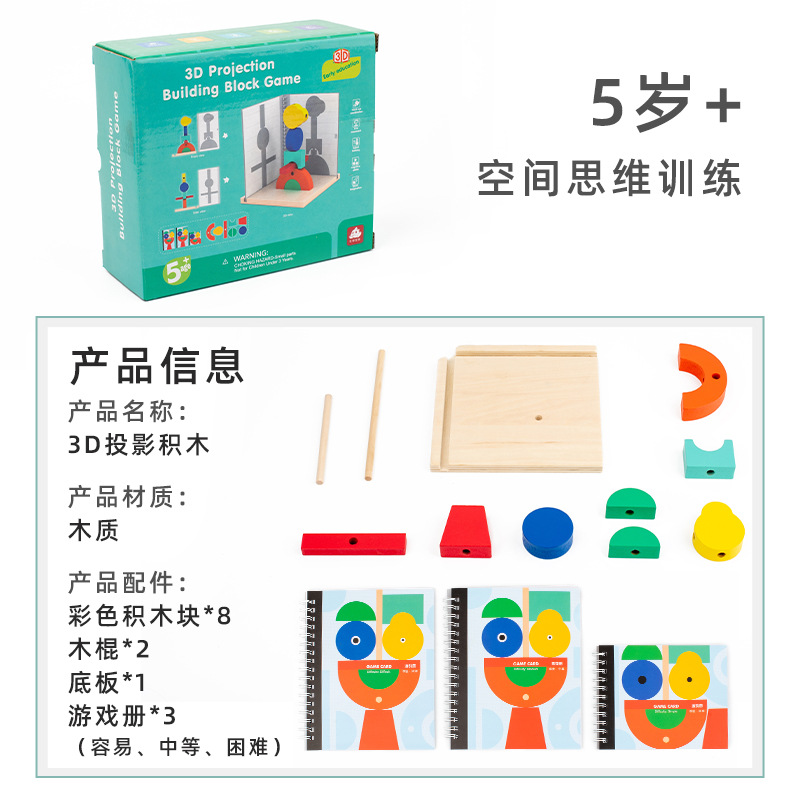 儿童3D空间构建积木三维立体投影三视角逻辑思维训练数学益智玩具