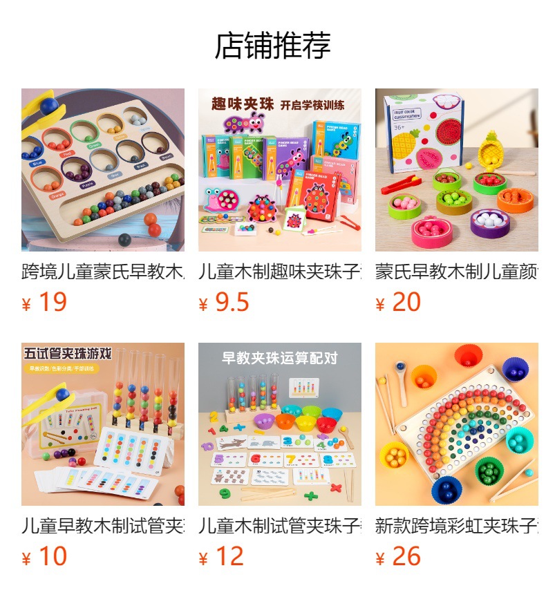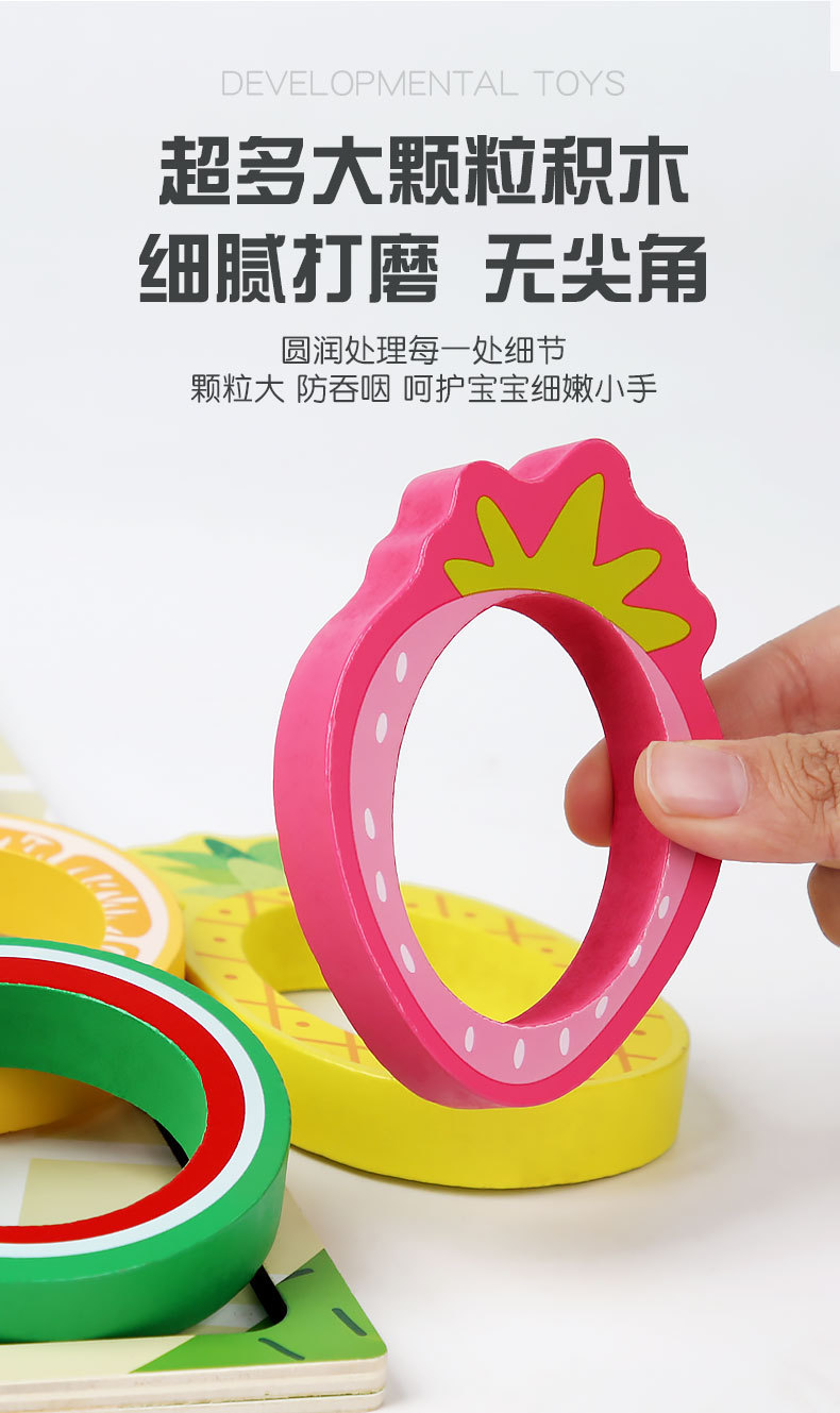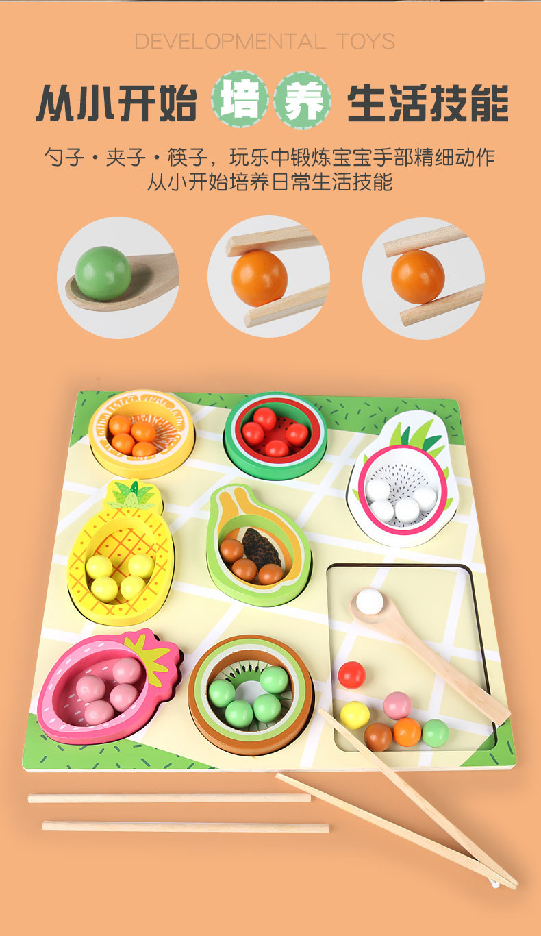 儿童早教木质水果盘夹珠子颜色认知分类配对精细动作训练益智玩具