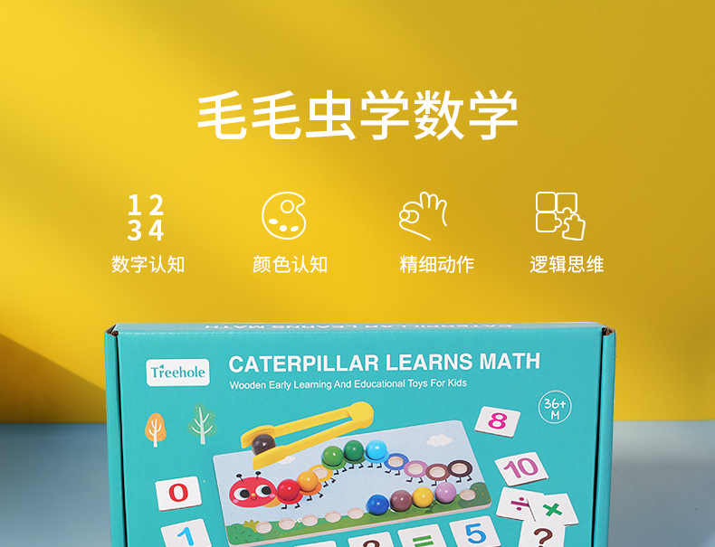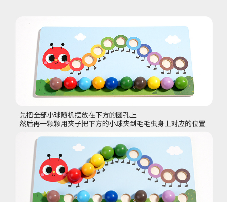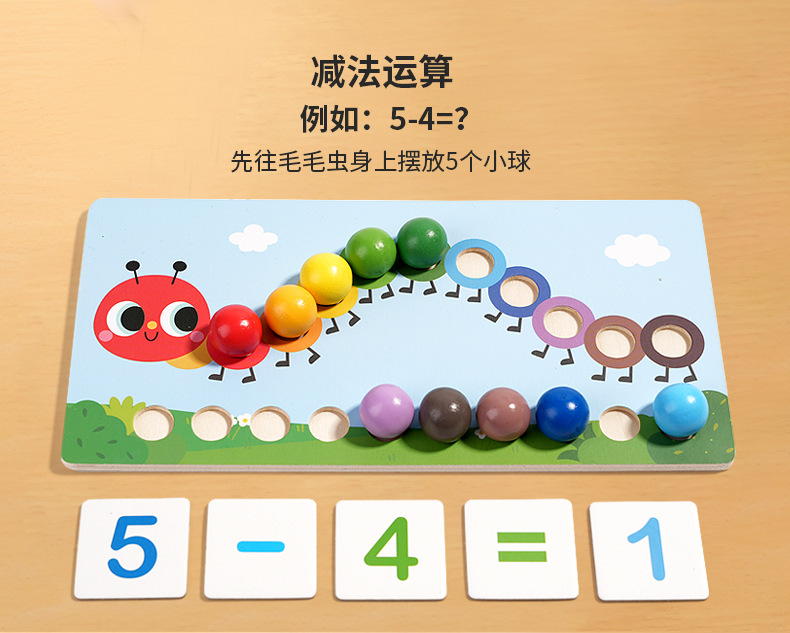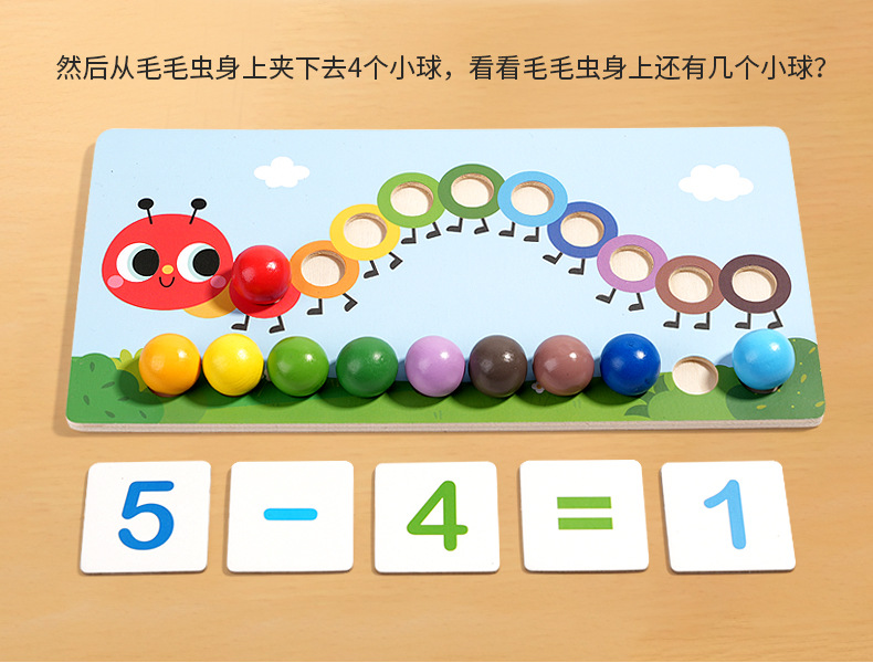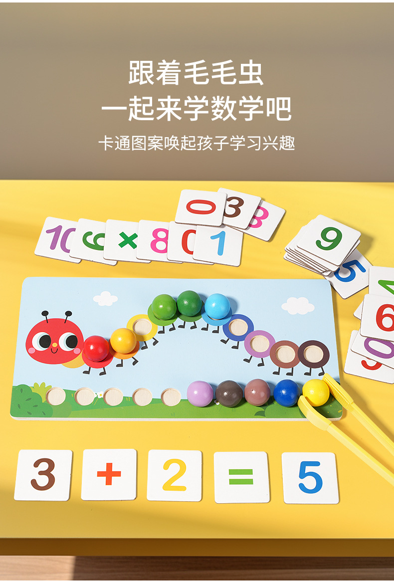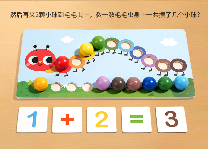 跨境儿童毛毛虫运算夹珠色彩专注力训练亲子互动益智早教玩具批发