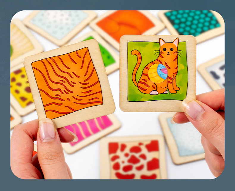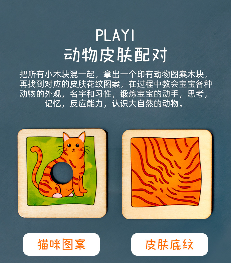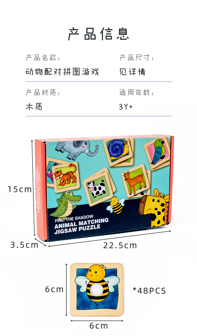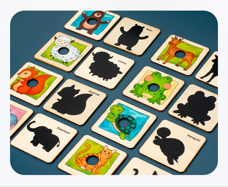 儿童早教木制动物皮肤影子认知配对拼图积木手眼协调训练益智玩具