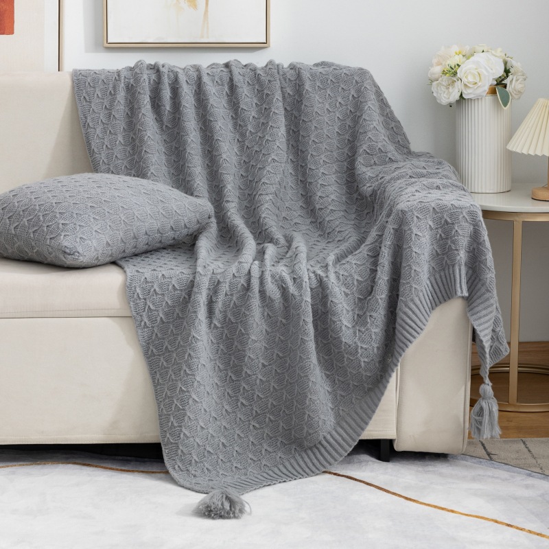亚马逊新款流苏针织毛毯午睡沙发毯办公室盖毯空调毯床尾毯线毯