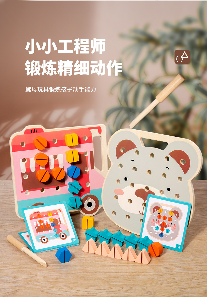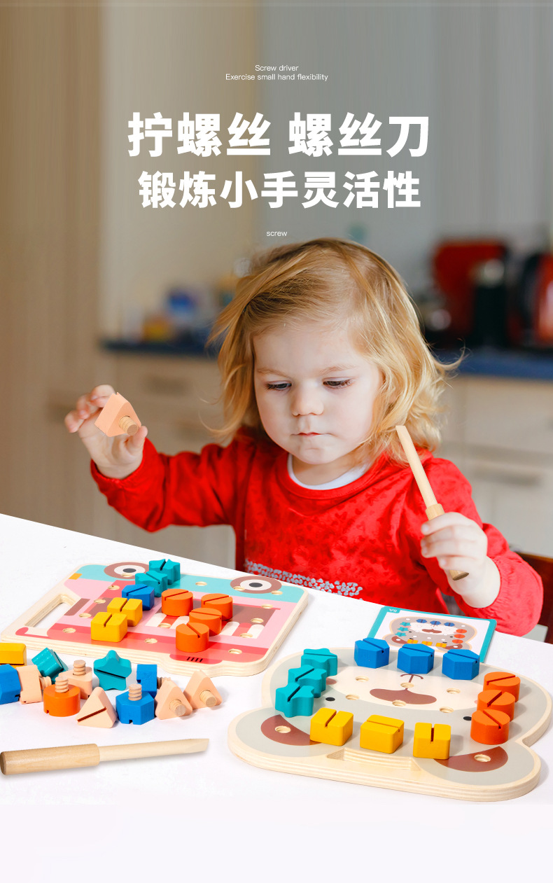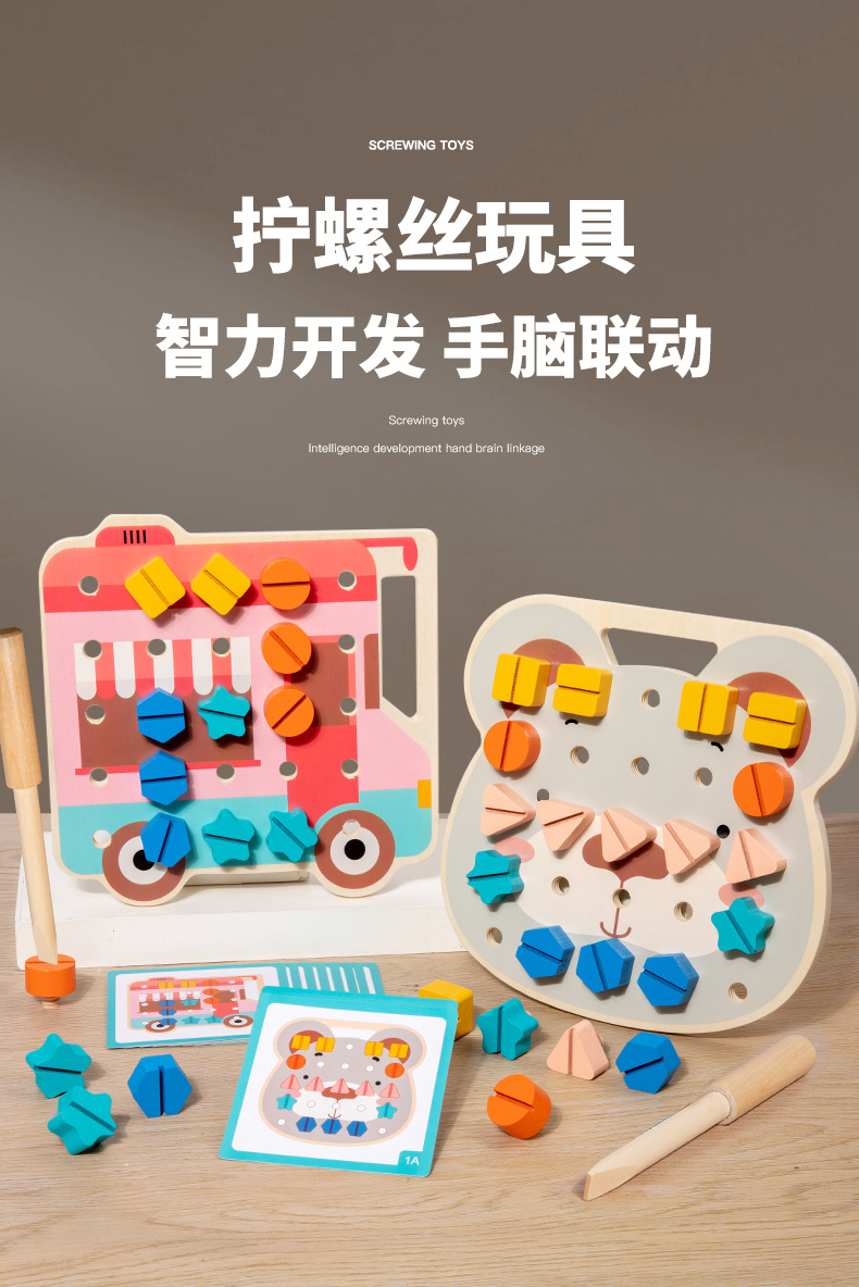 儿童拧螺丝钉螺母形状配对颜色认知积木早教手眼协调训练益智玩具