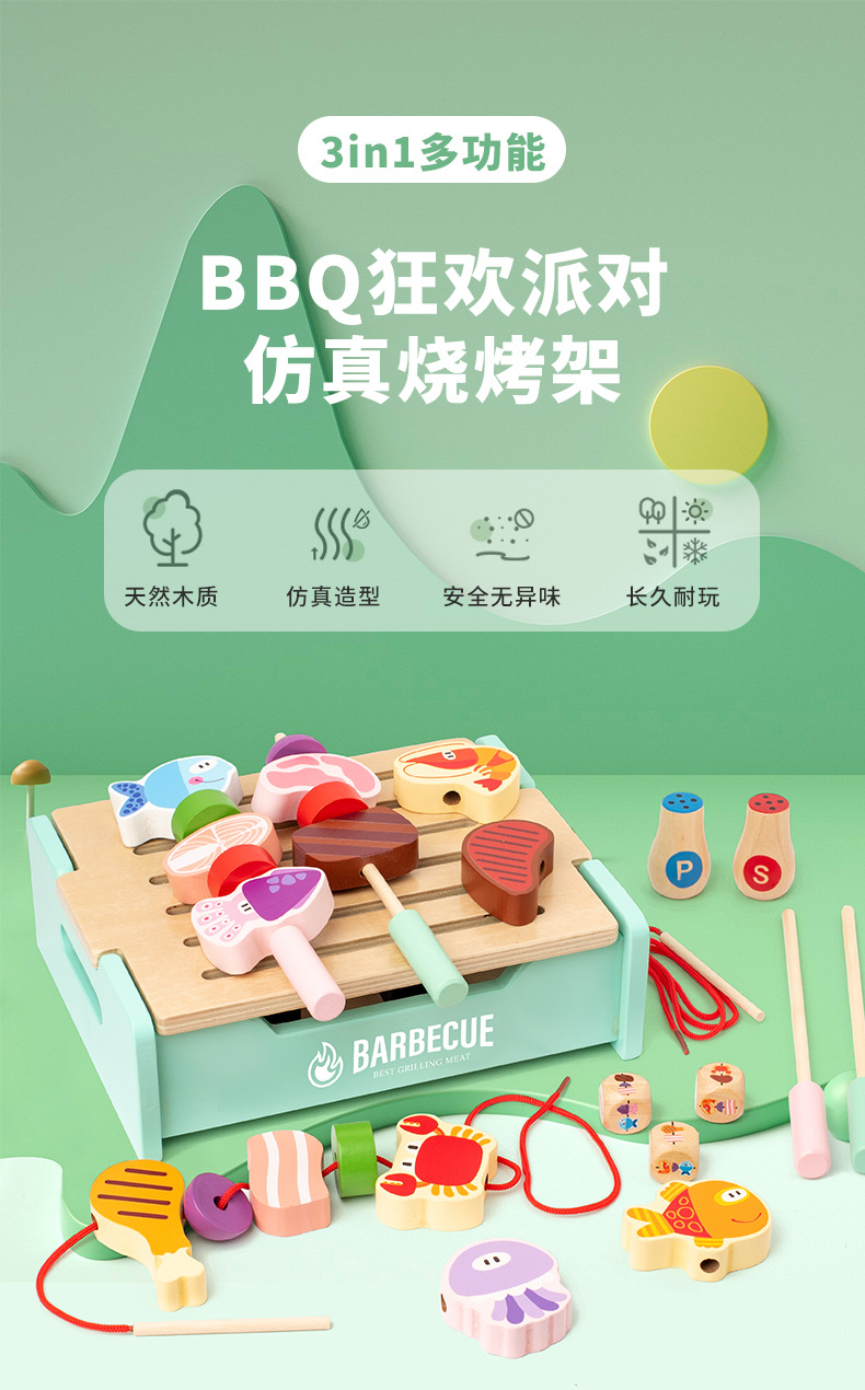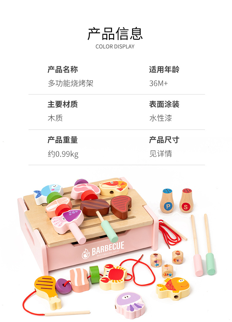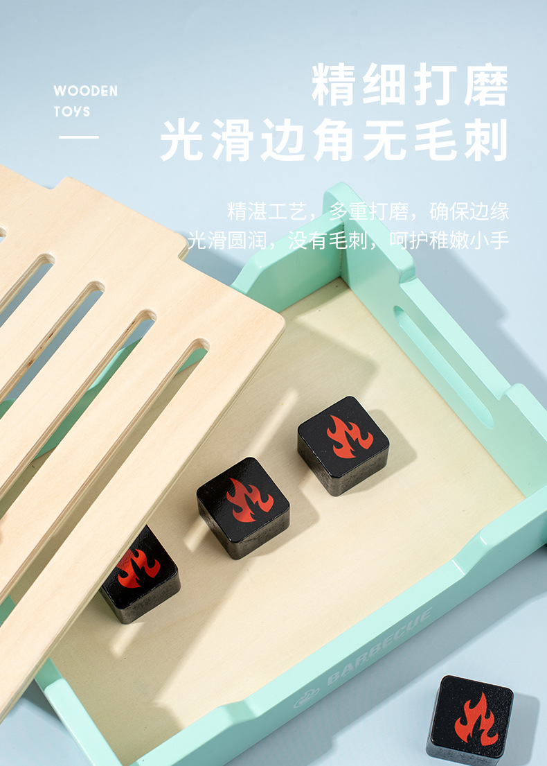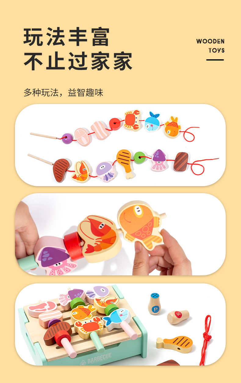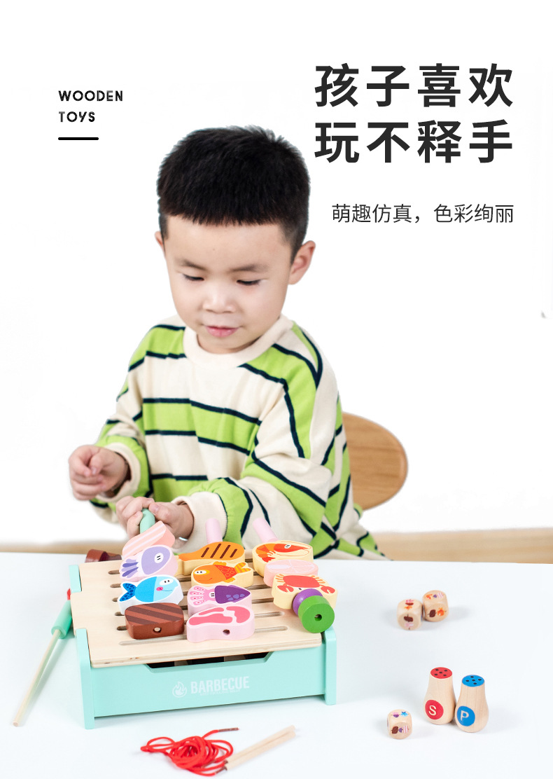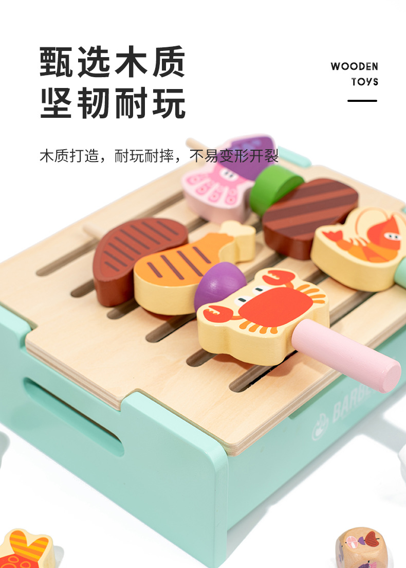 过家家儿童木制厨房烧烤架男女孩仿真烧烤串角色扮演餐厨益智玩具