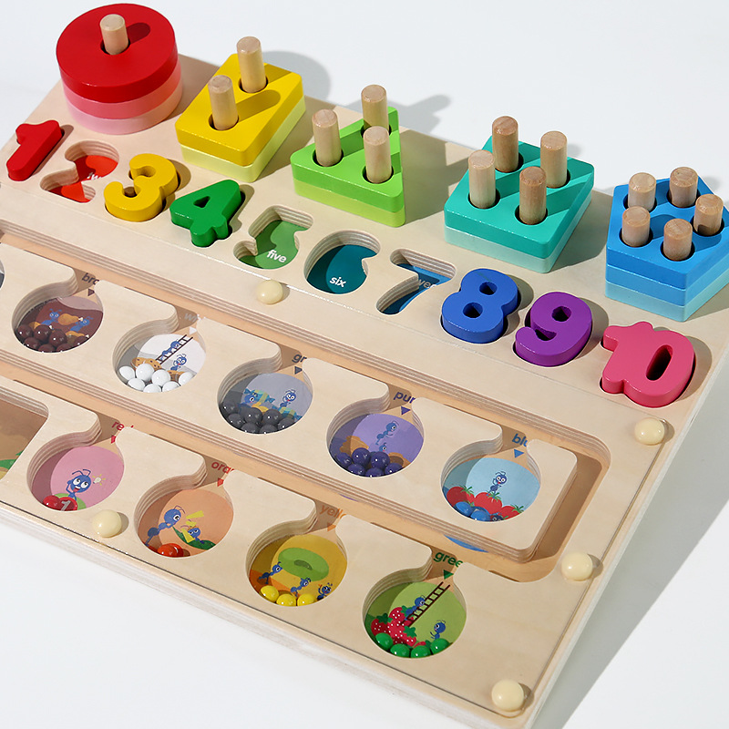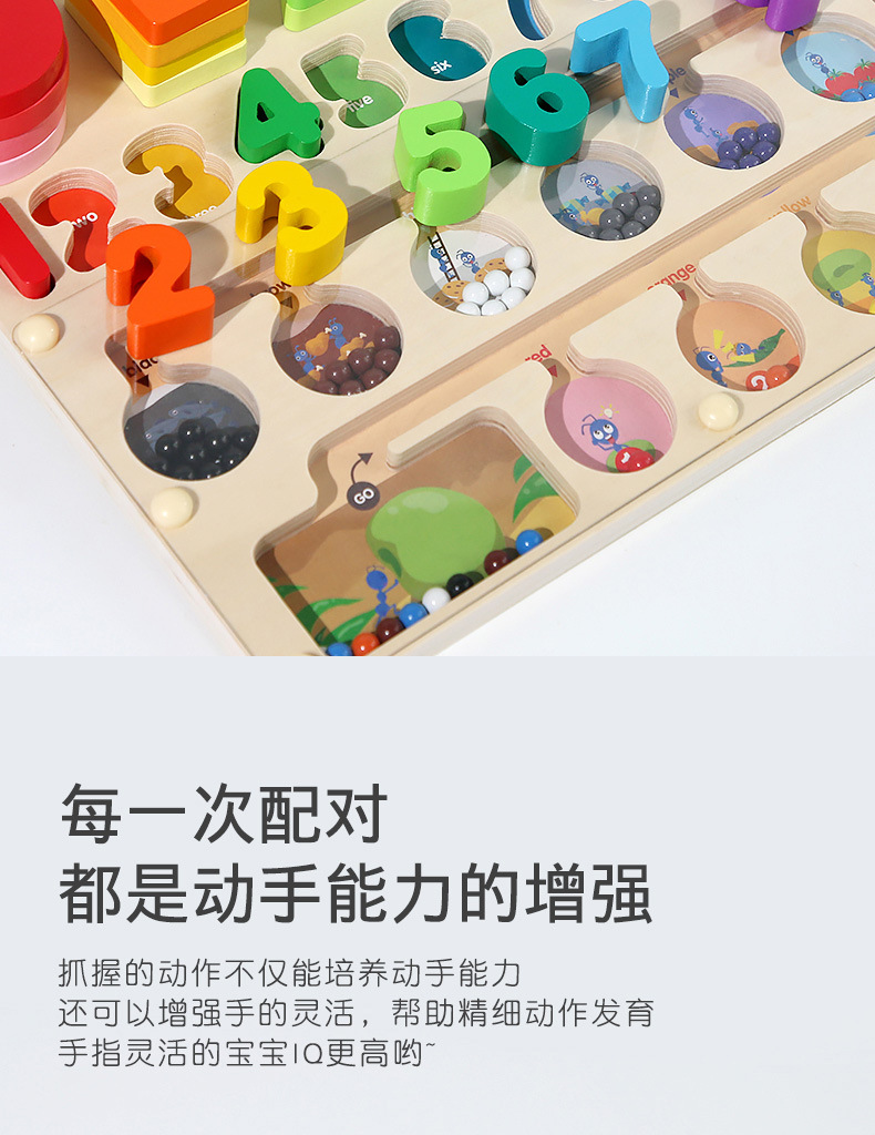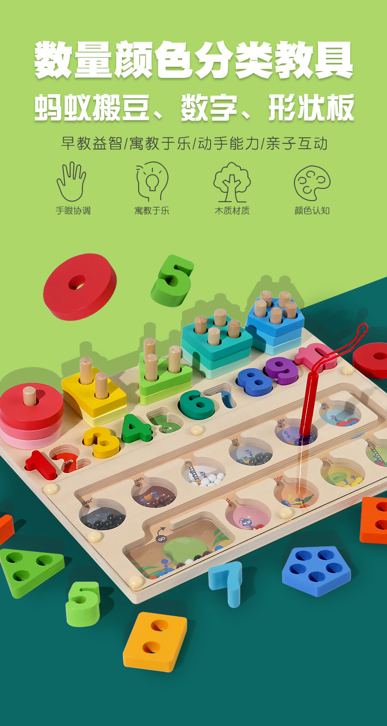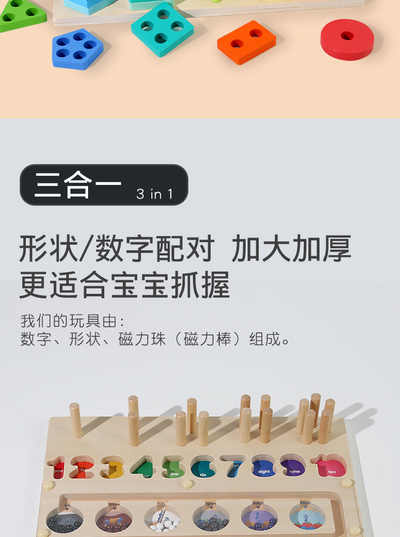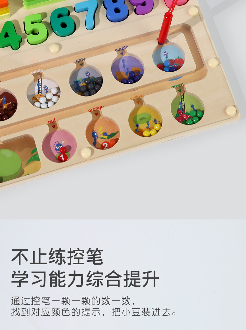 跨境儿童早教木质磁笔走珠迷宫磁性数量颜色分类形状套柱益智玩具