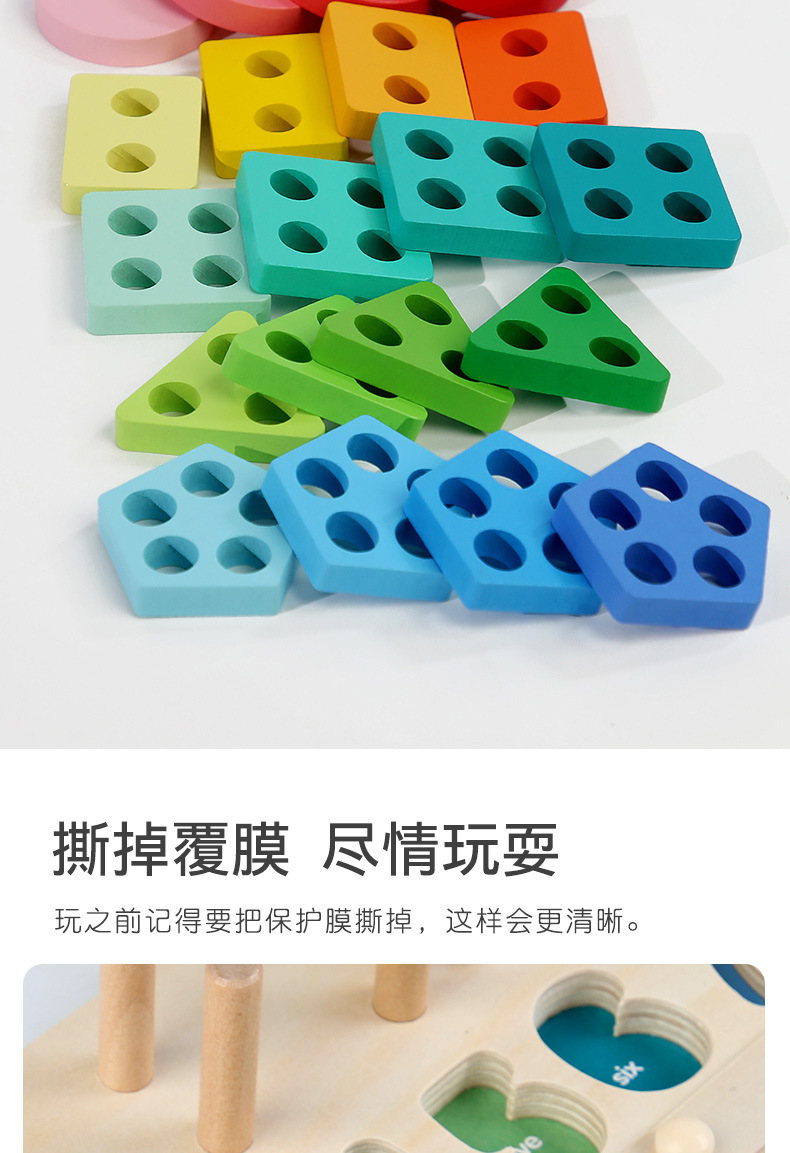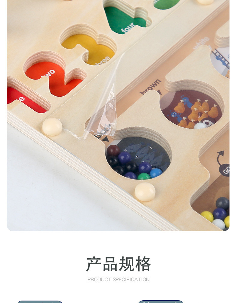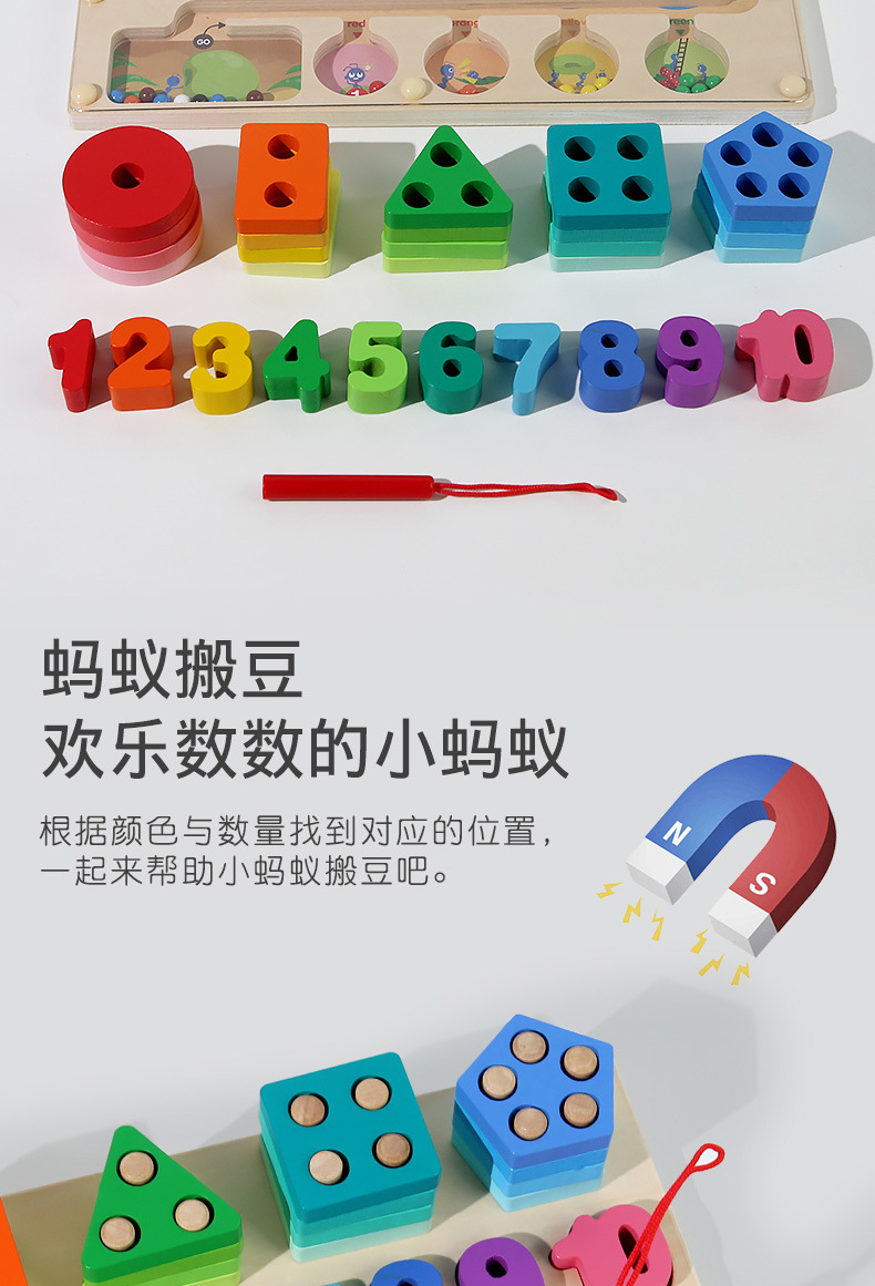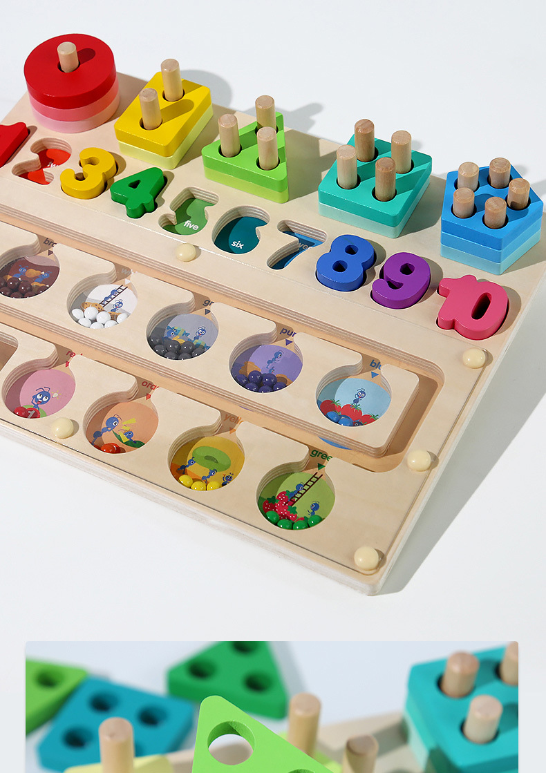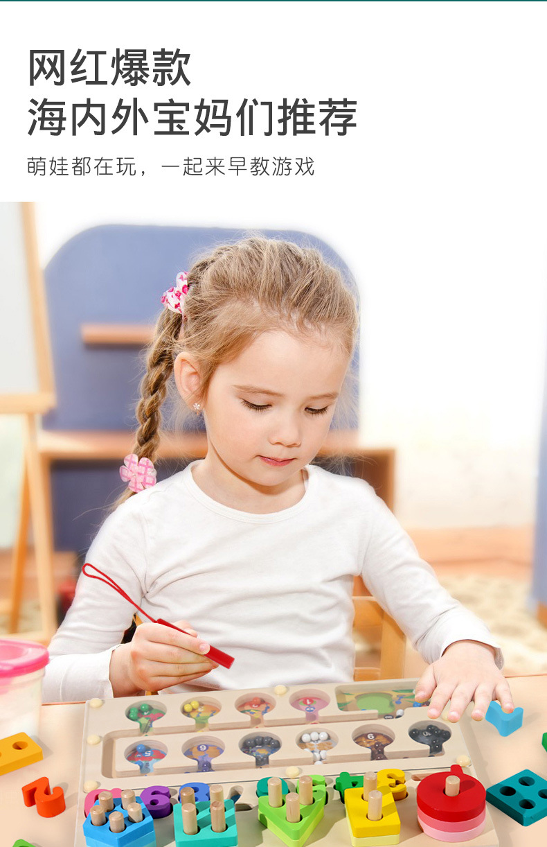 跨境儿童早教木质磁笔走珠迷宫磁性数量颜色分类形状套柱益智玩具