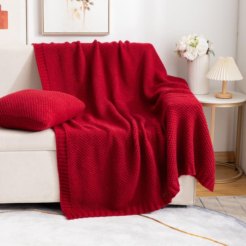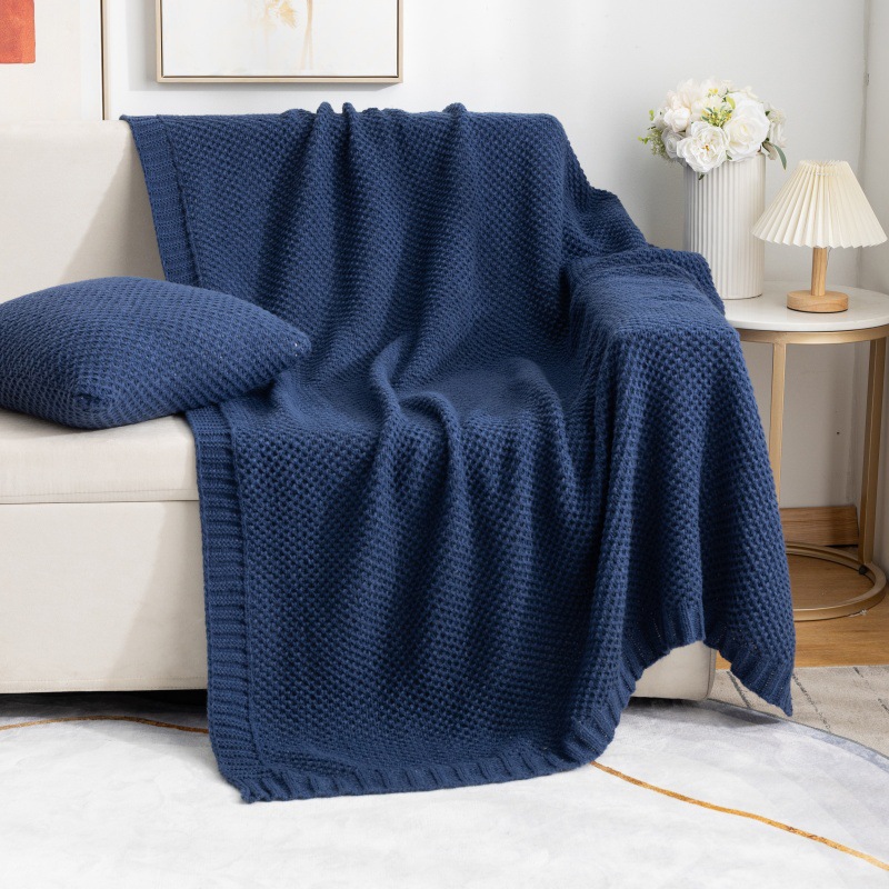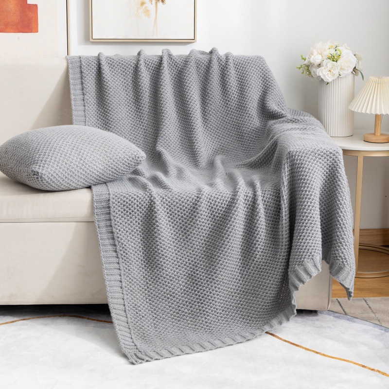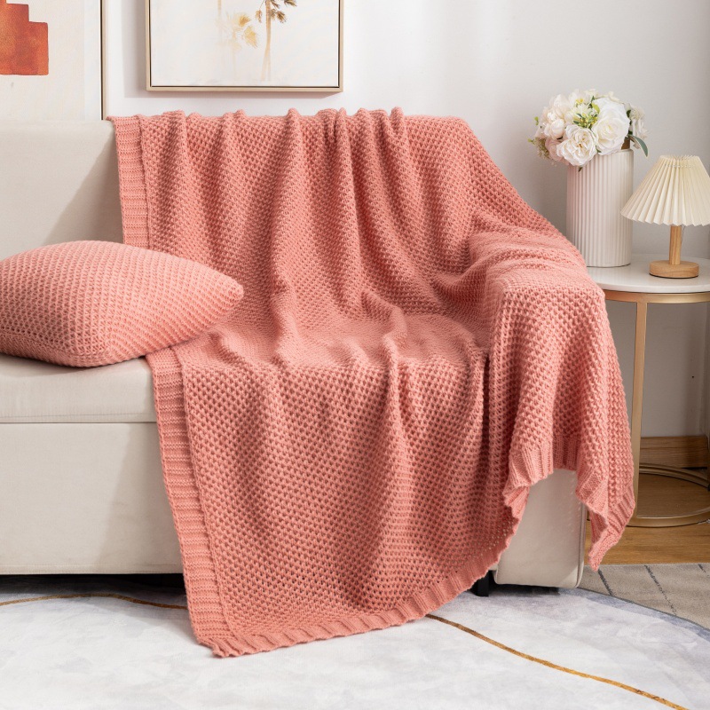 北欧沙发毯酒店床尾巾午睡纯色披肩毯床尾布盖毯民宿床搭巾针织毯
