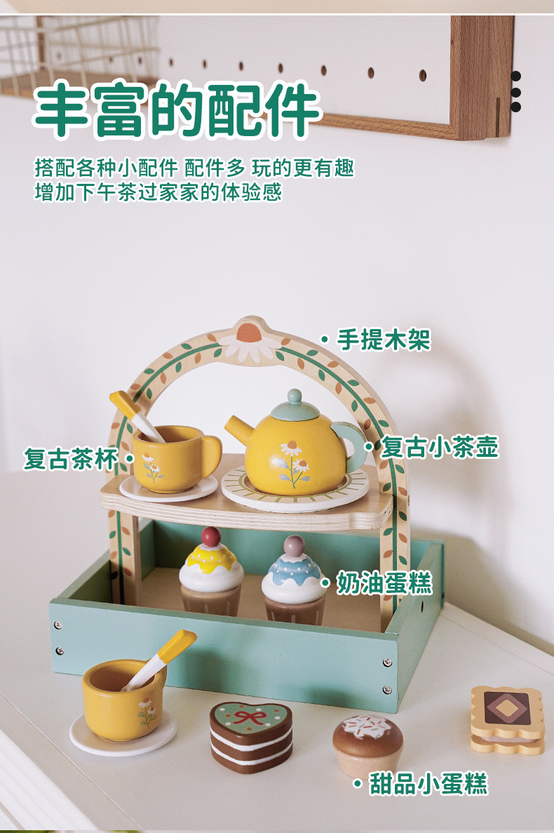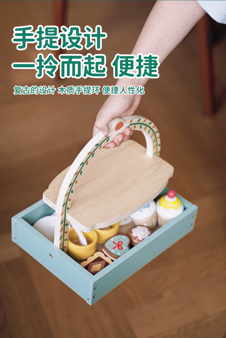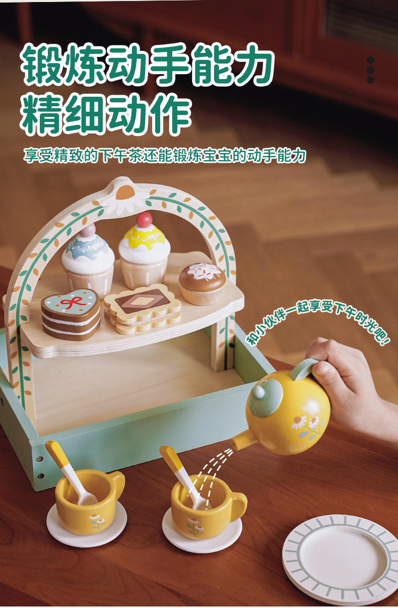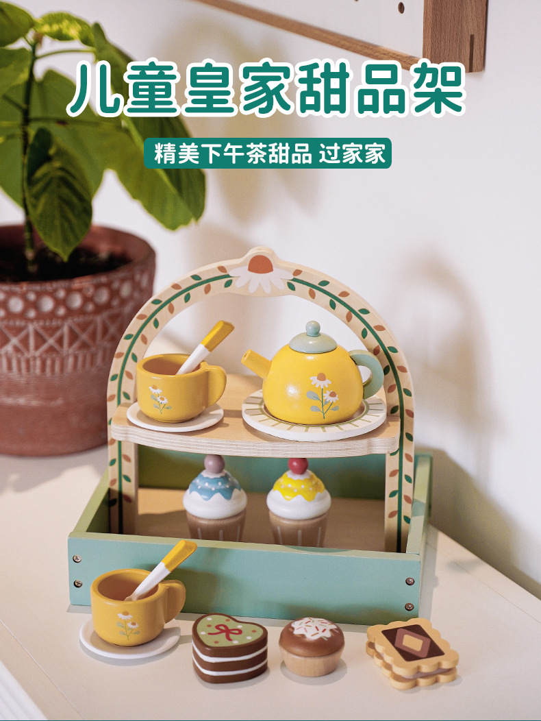 儿童木制过家家仿真蛋糕皇家下午茶双层甜品架亲子互动益智玩具