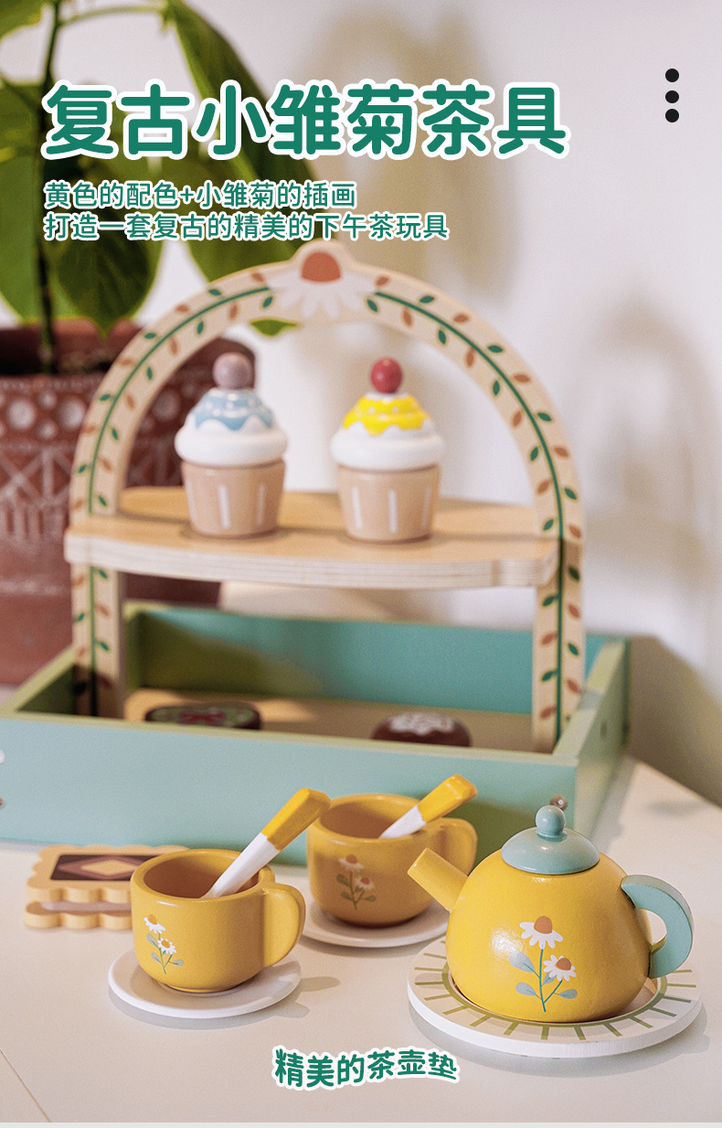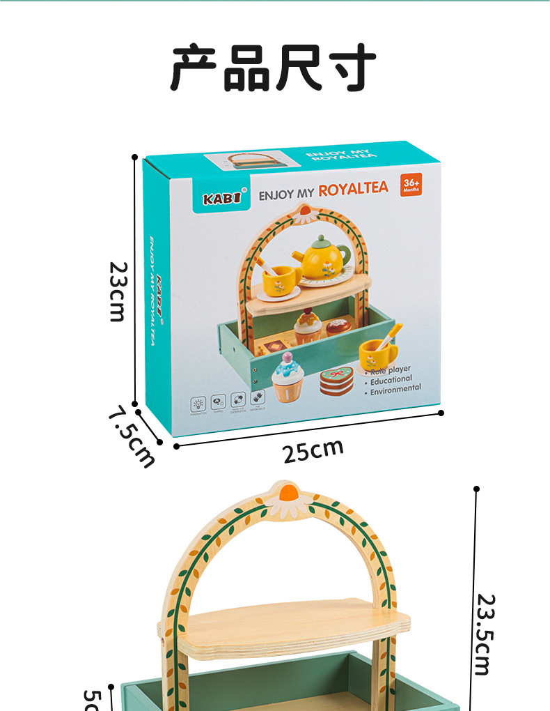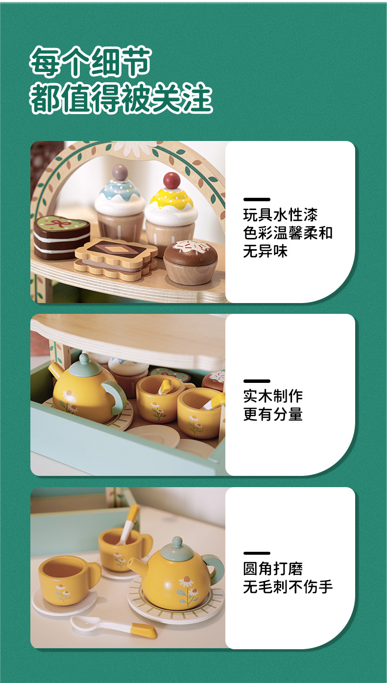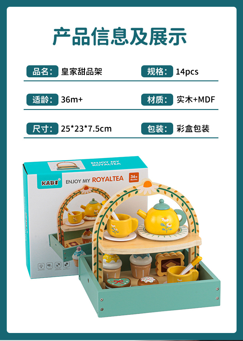 儿童木制过家家仿真蛋糕皇家下午茶双层甜品架亲子互动益智玩具