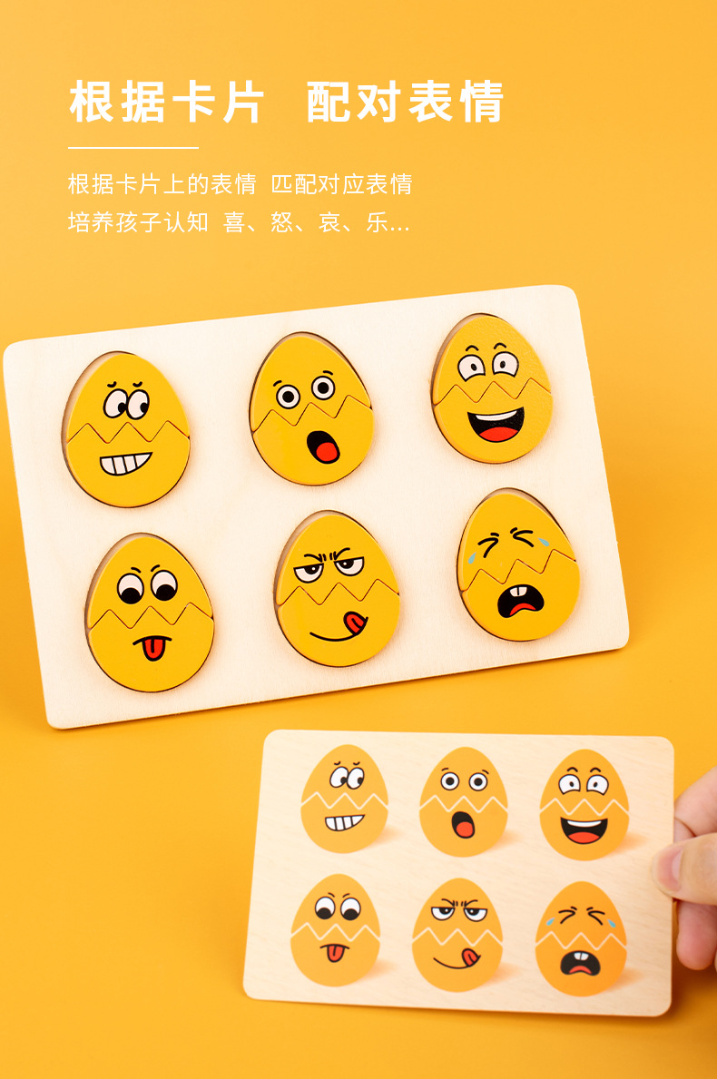 跨境木制儿童早教趣味表情蛋配对游戏宝宝专注力训练互动益智玩具