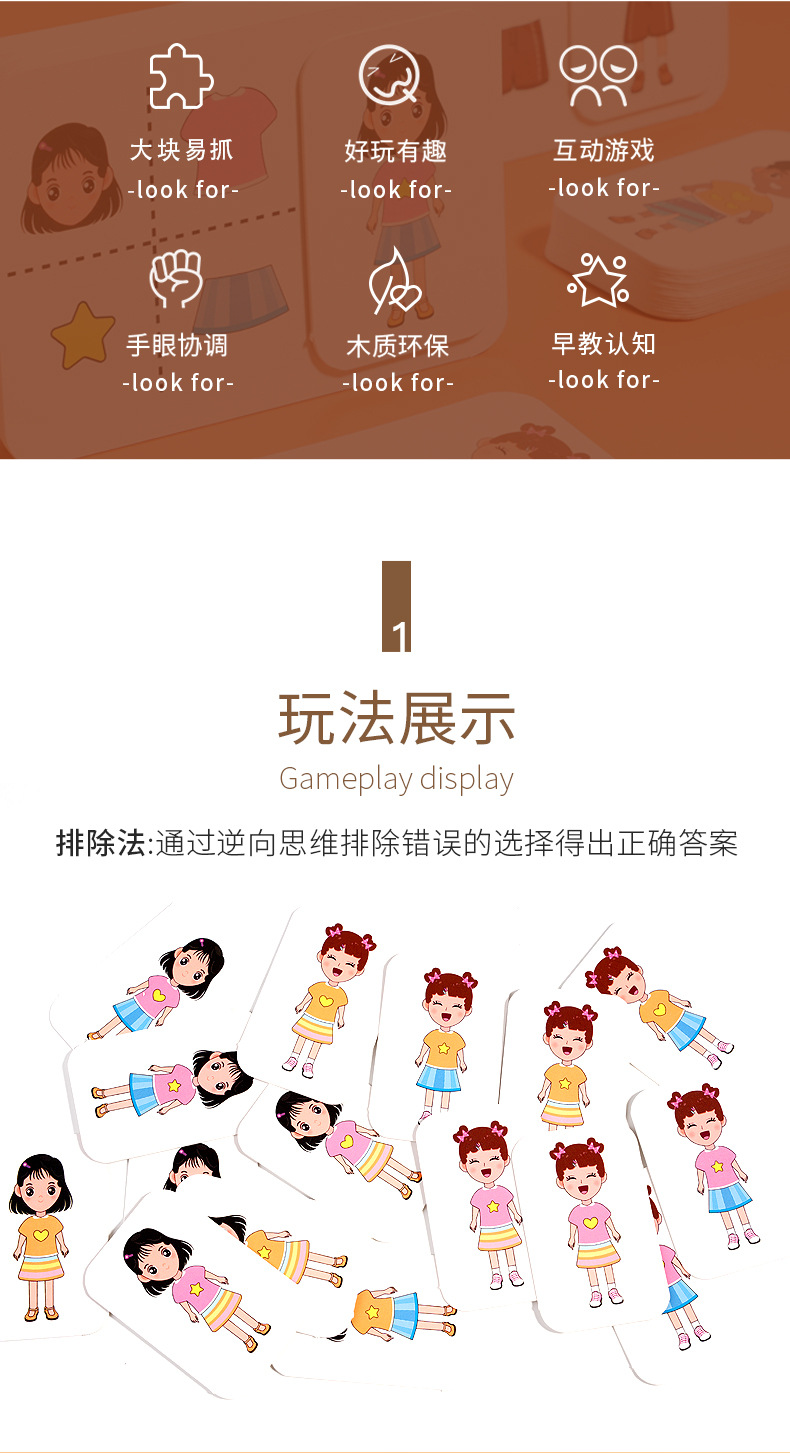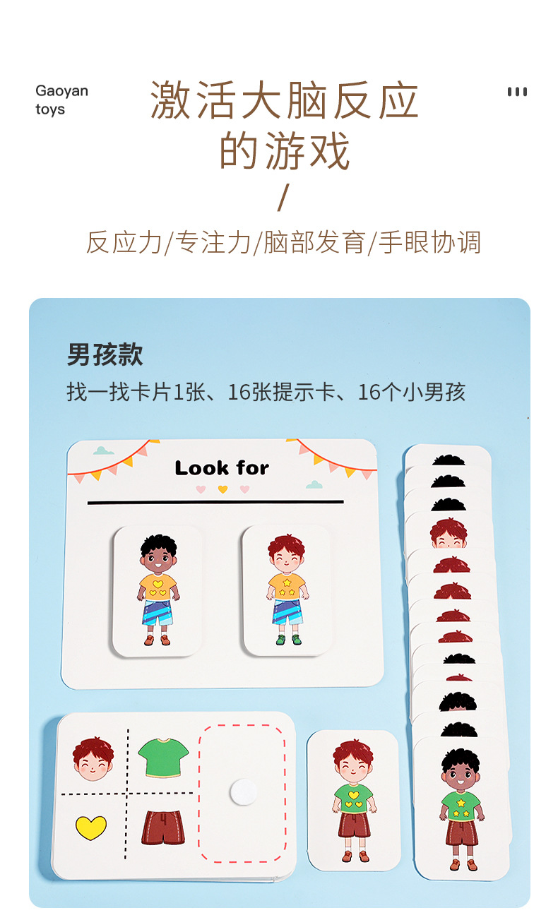 儿童早教幼儿园区域区角自制教具找相同宝宝逆向思维训练益智玩具