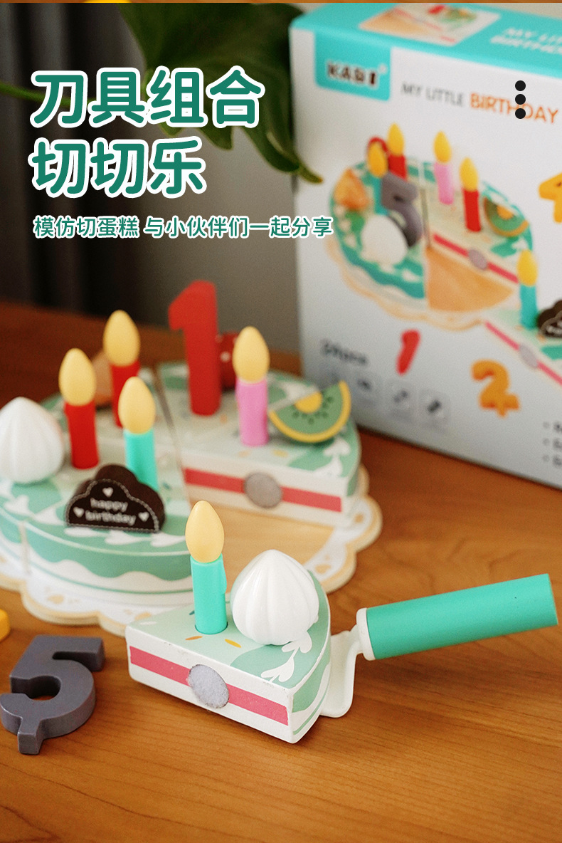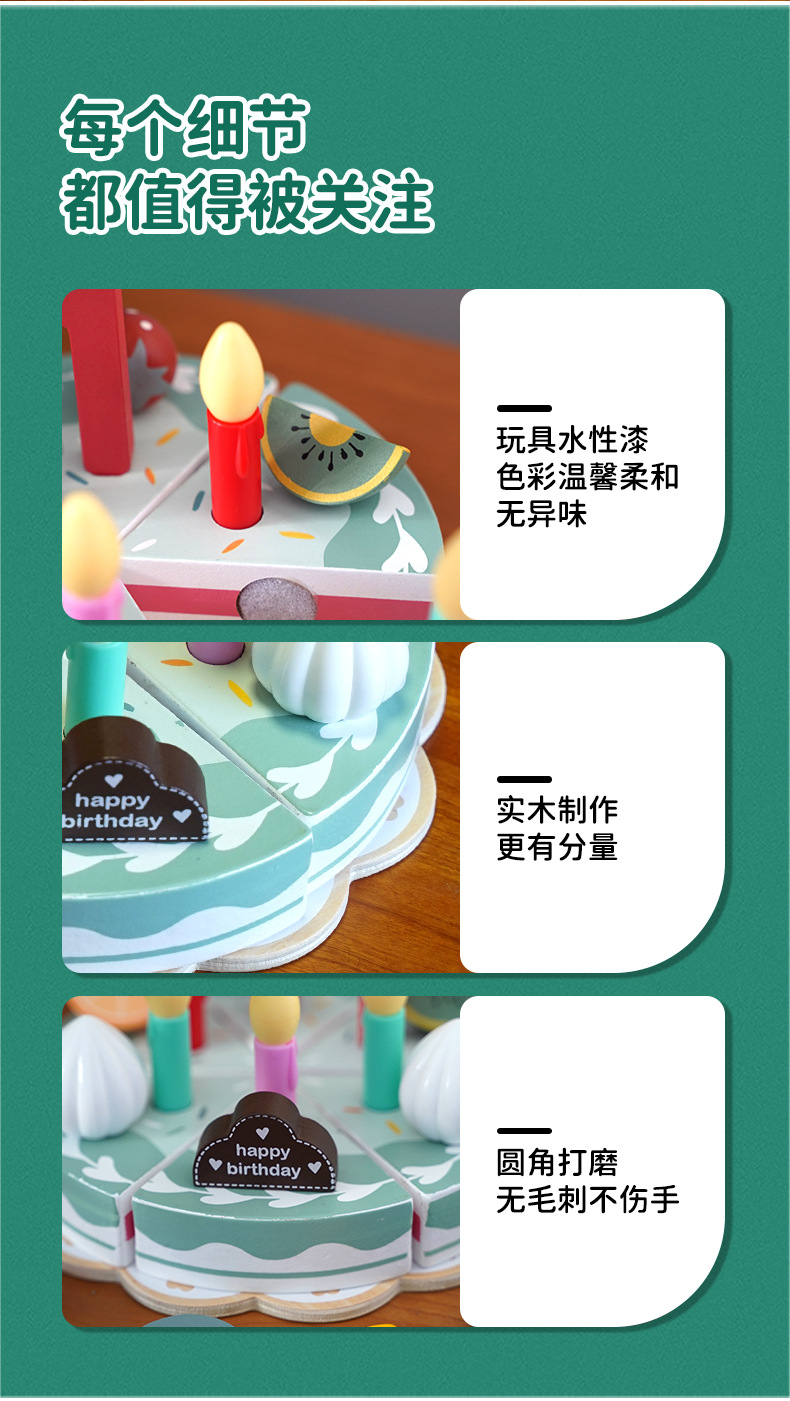 跨境儿童仿真木制生日蛋糕礼物水果切切乐宝宝过家家厨房益智玩具