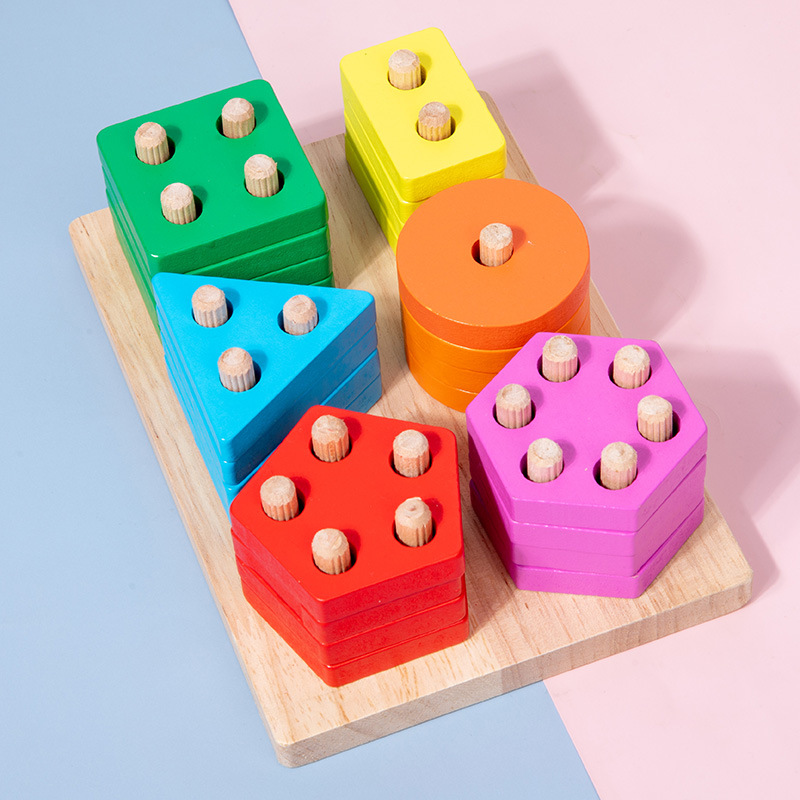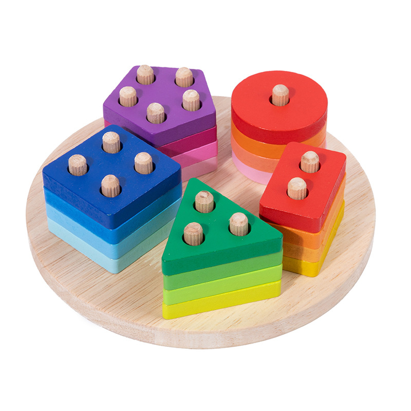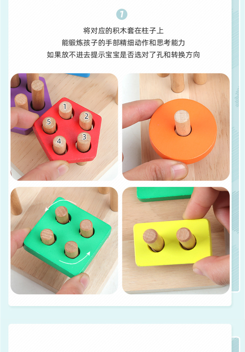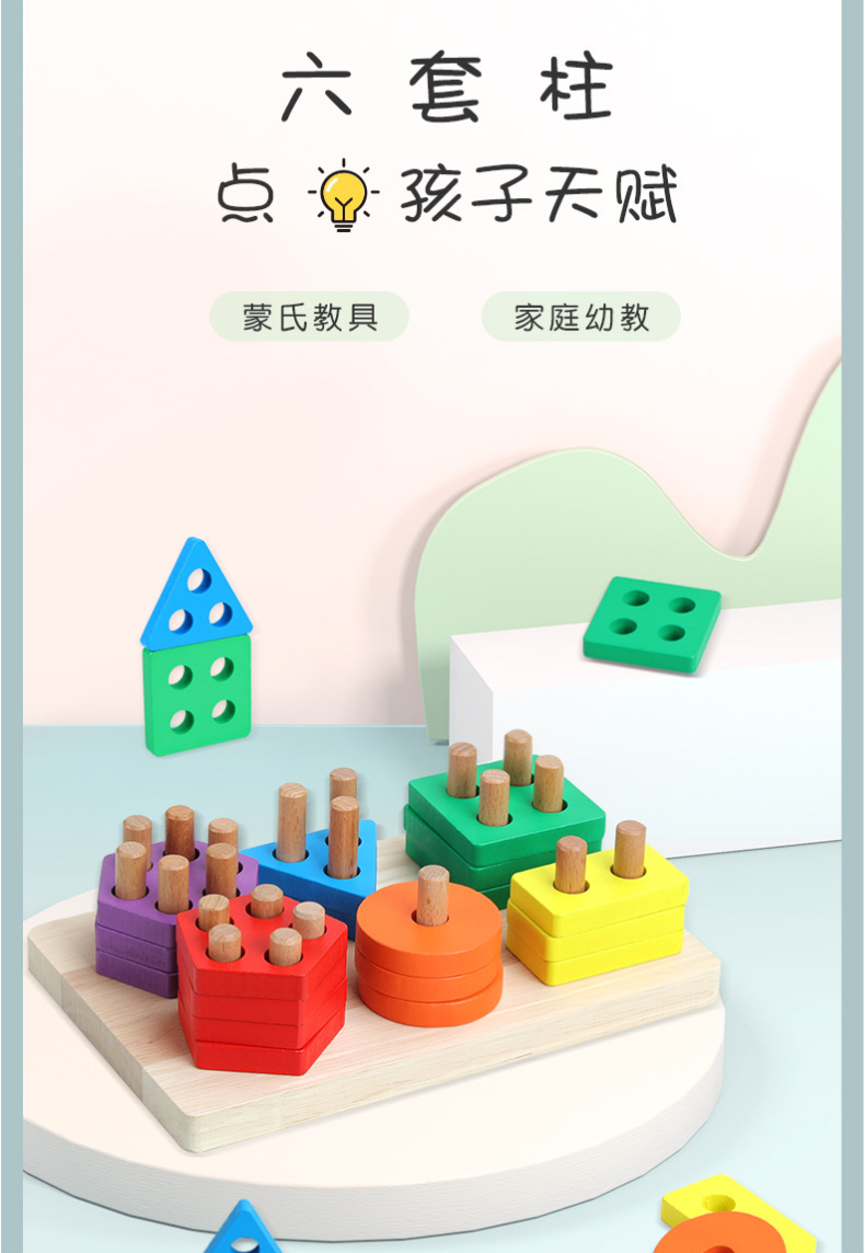 木质几何形状颜色配对五套柱幼儿童蒙氏早教认知积木益智玩具批发
