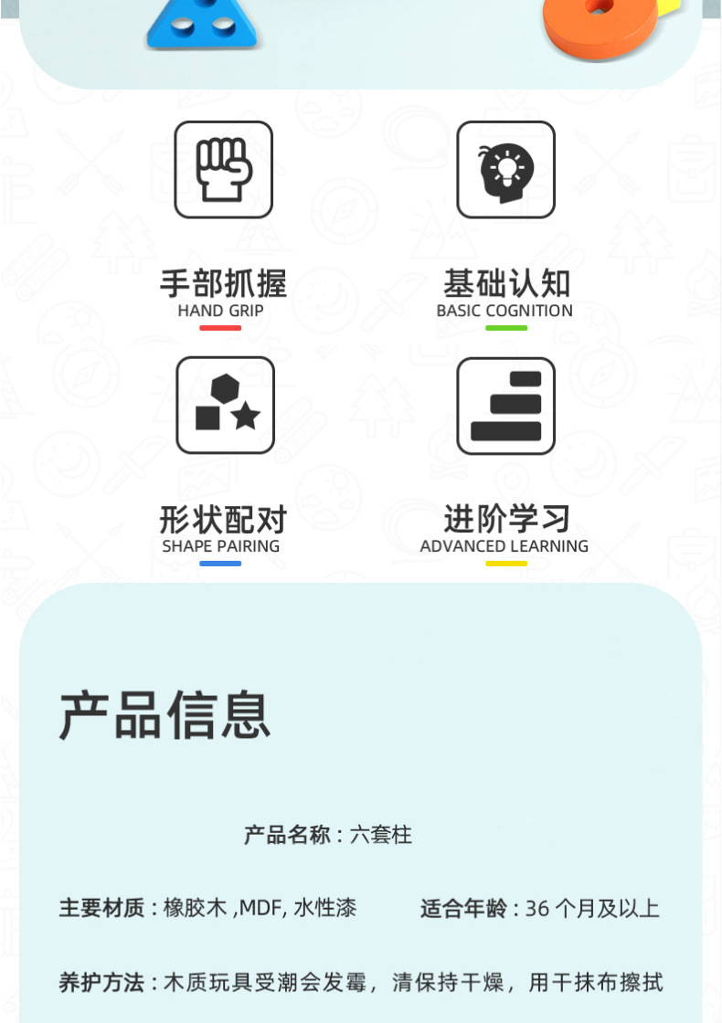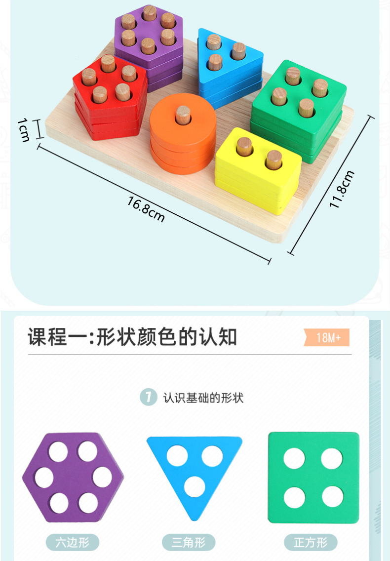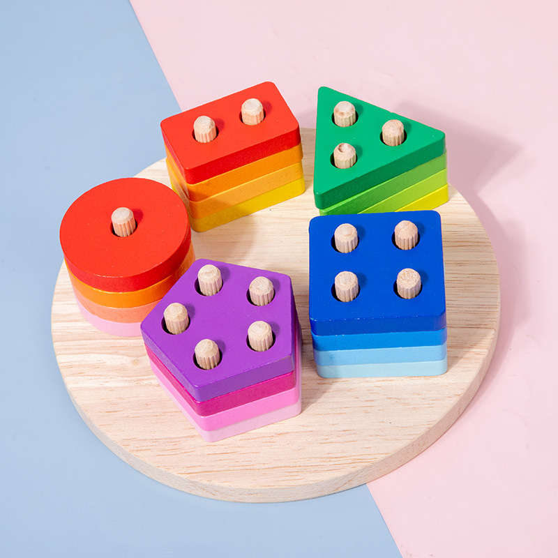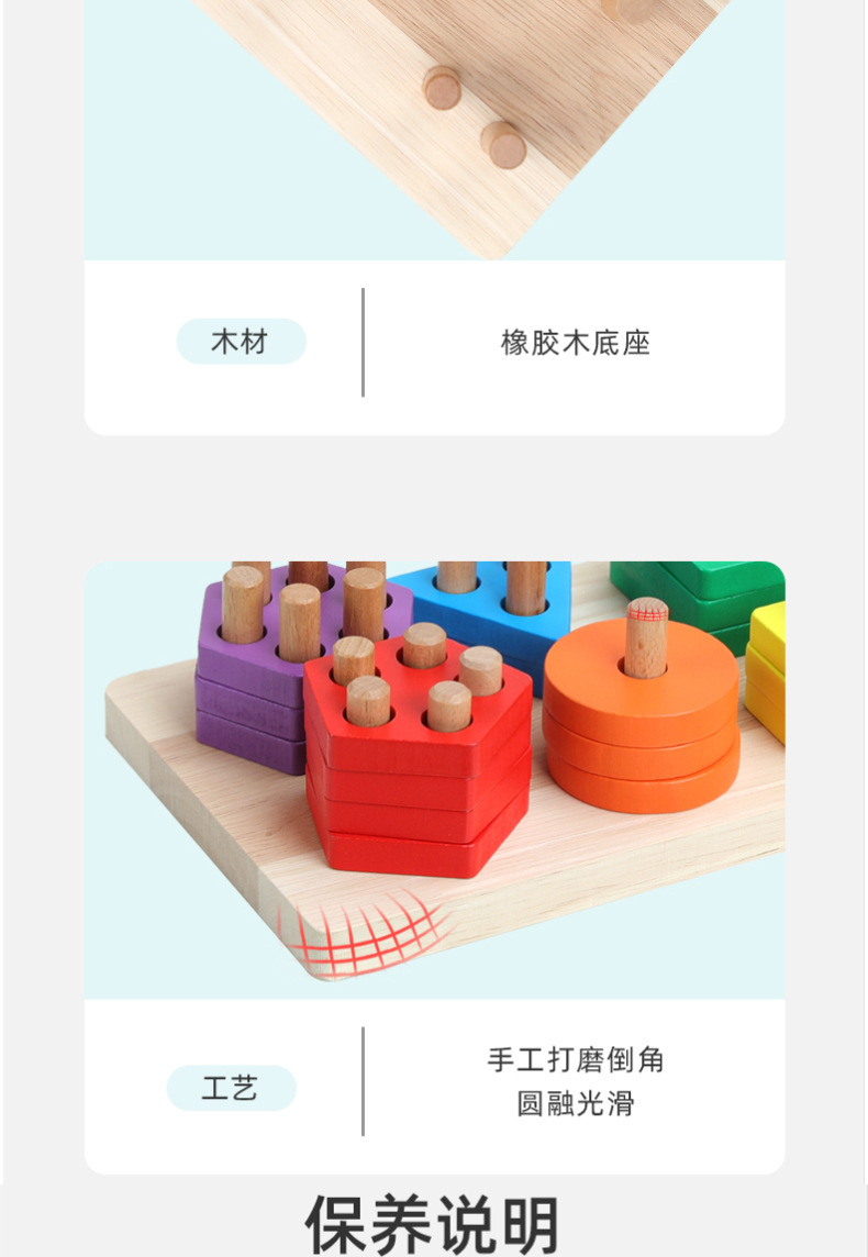 木质几何形状颜色配对五套柱幼儿童蒙氏早教认知积木益智玩具批发