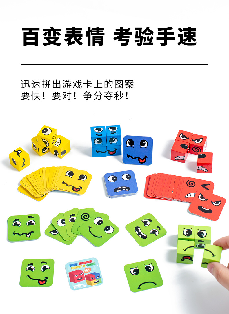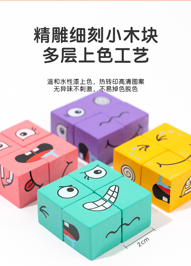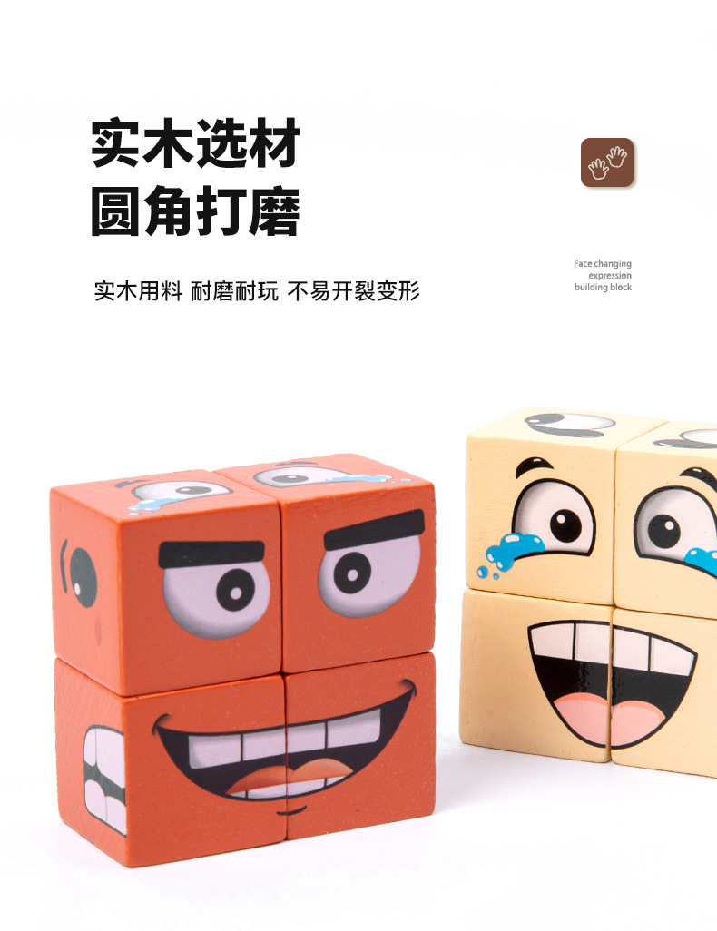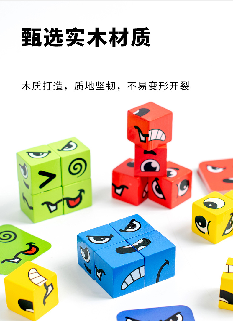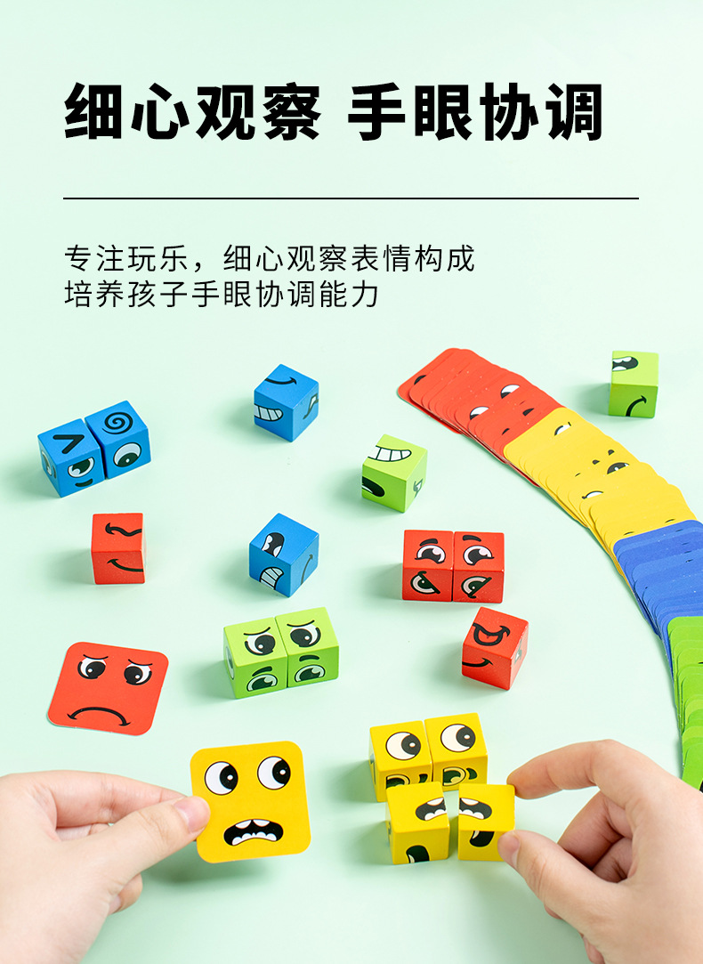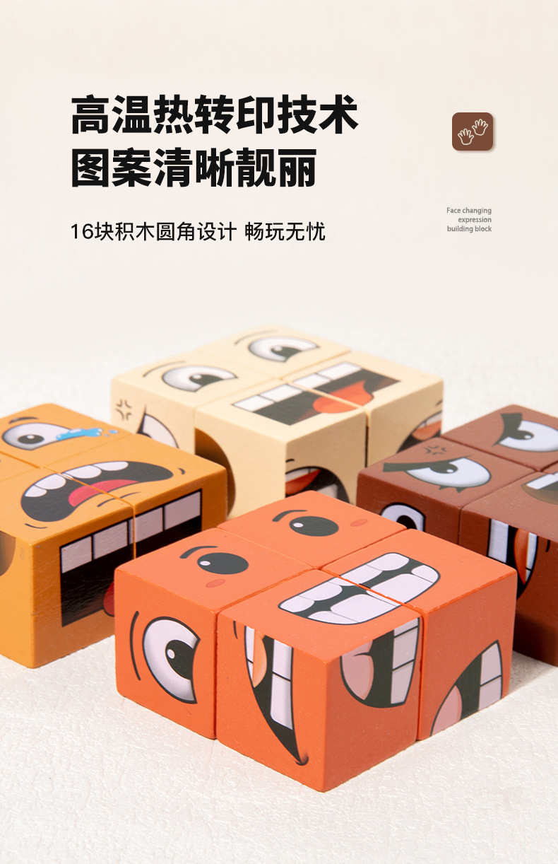 儿童木质表情变脸魔方积木拼图抖音同款亲子互动桌游益智玩具批发