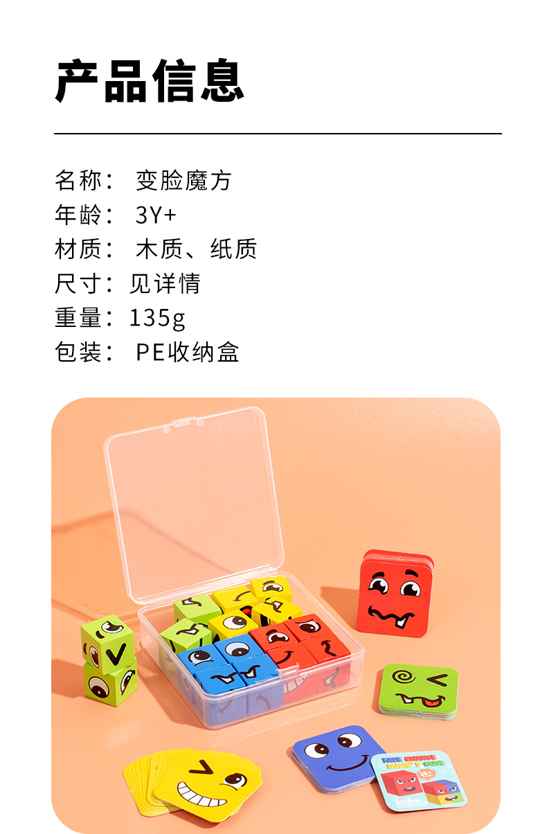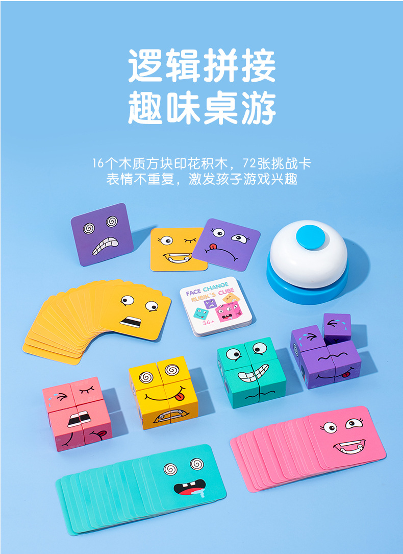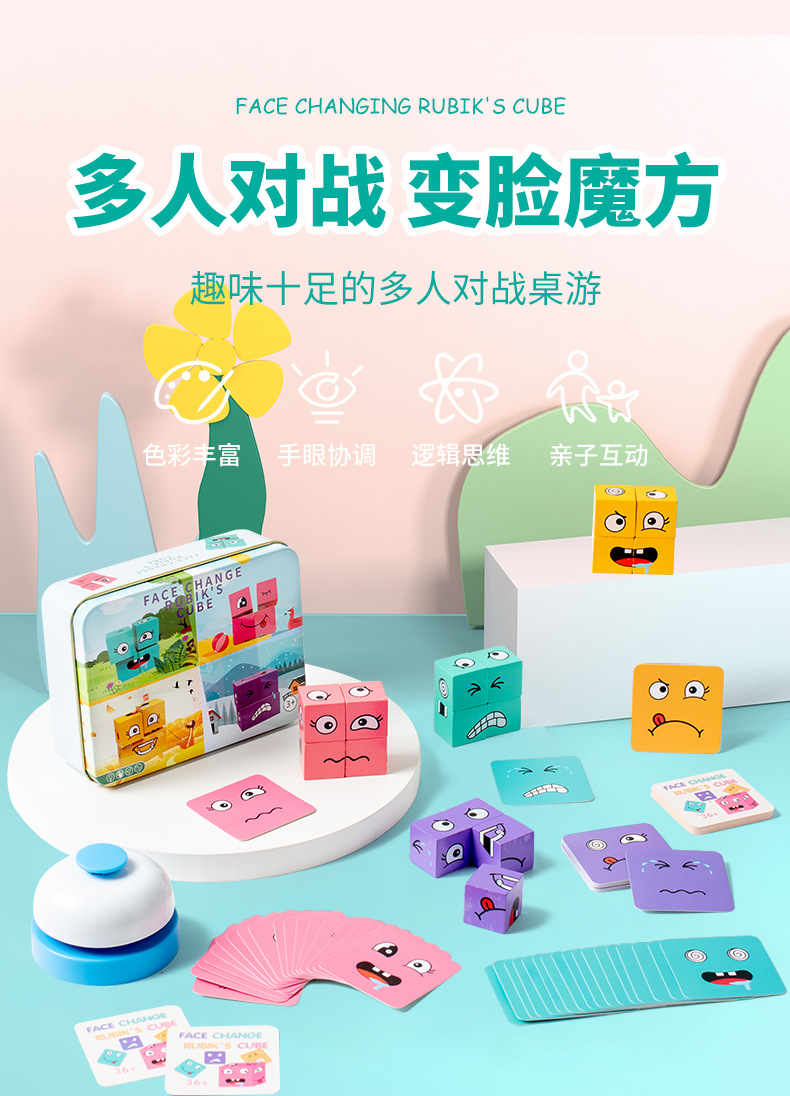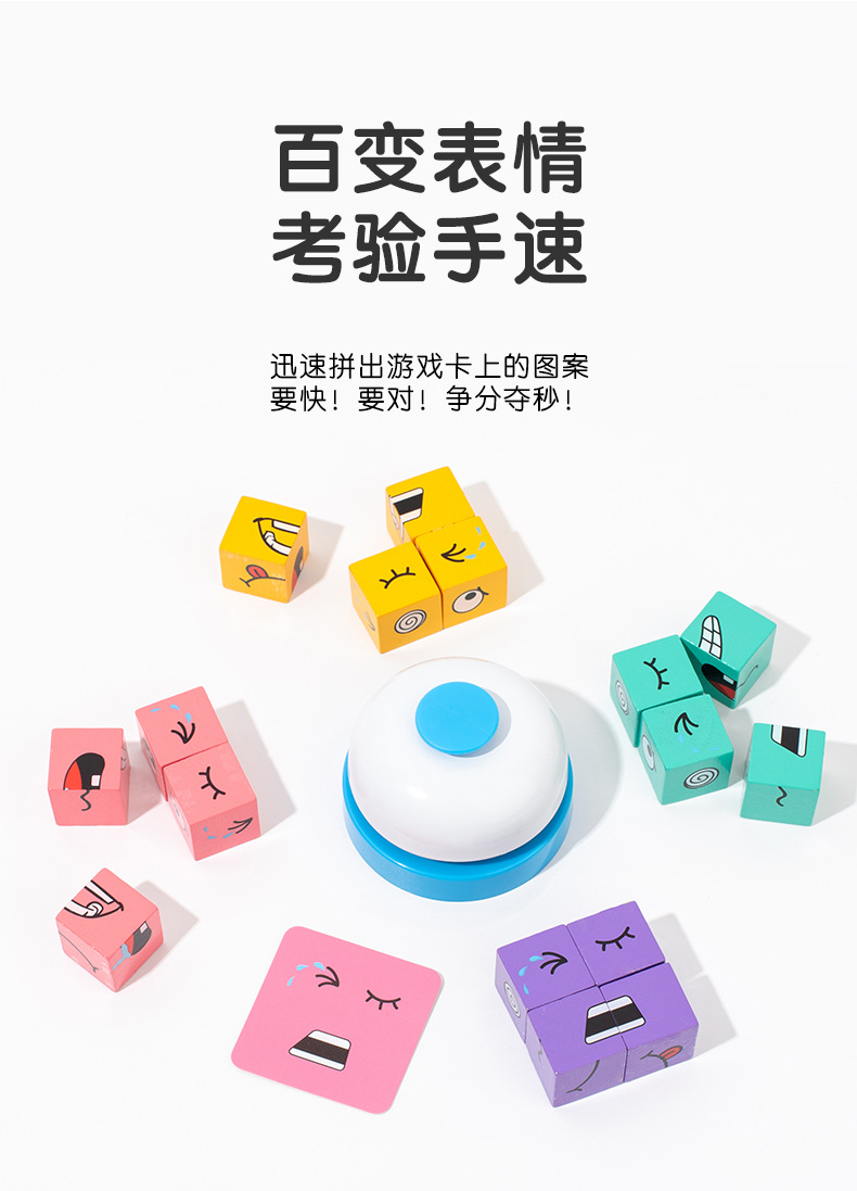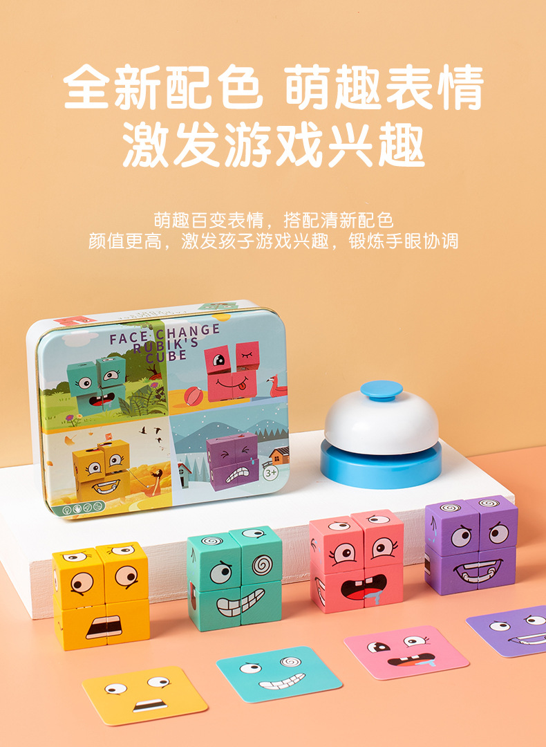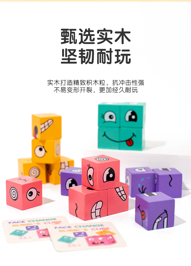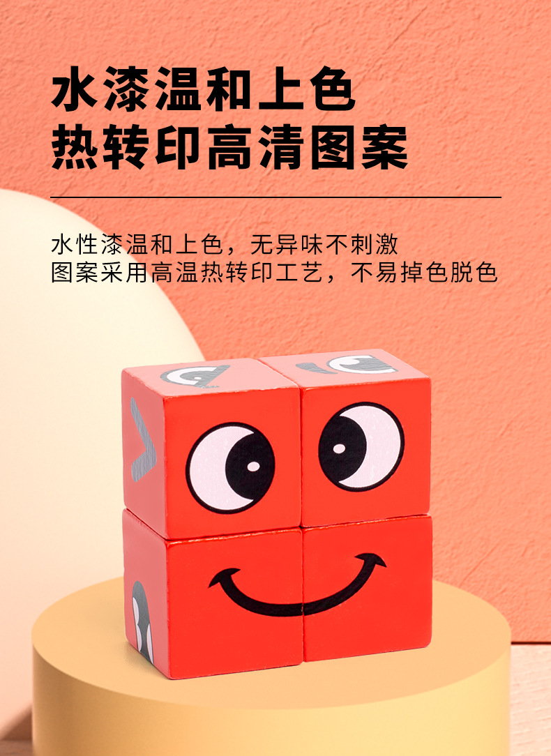 儿童木质表情变脸魔方积木拼图抖音同款亲子互动桌游益智玩具批发