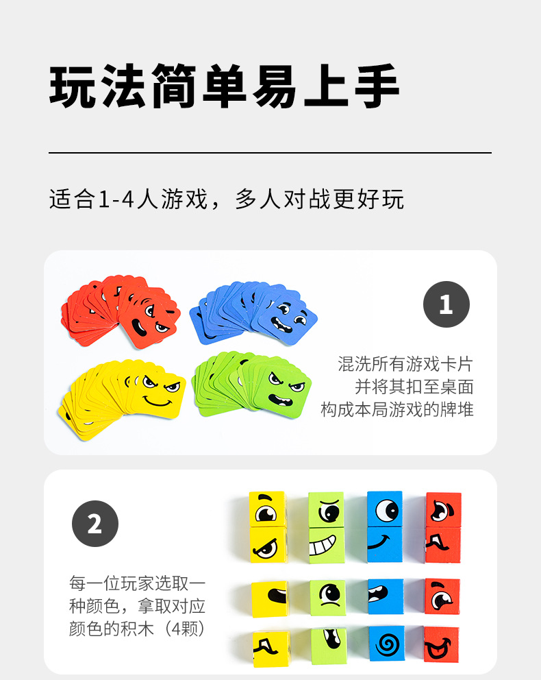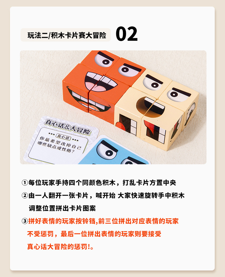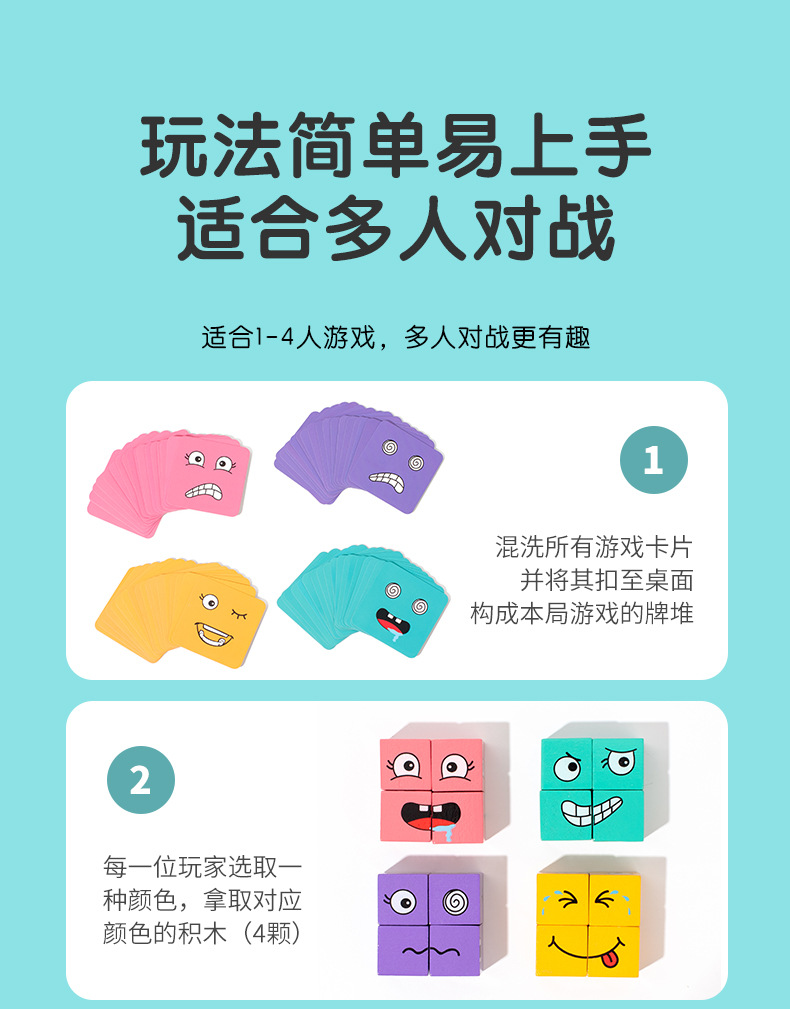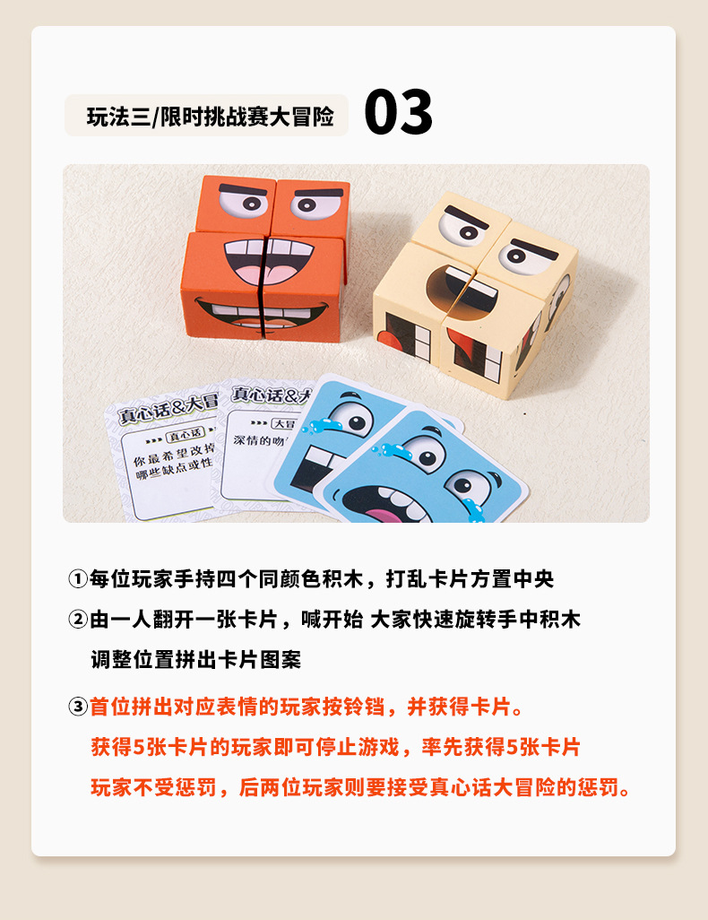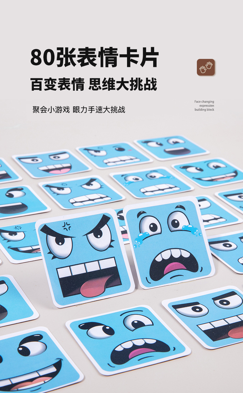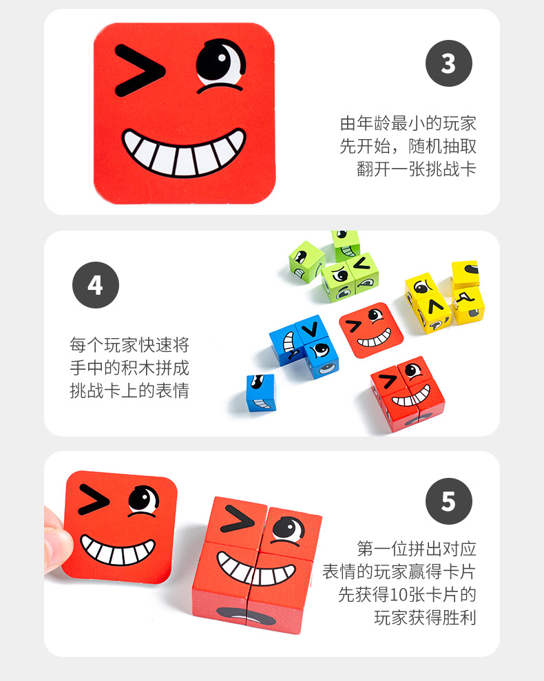 儿童木质表情变脸魔方积木拼图抖音同款亲子互动桌游益智玩具批发