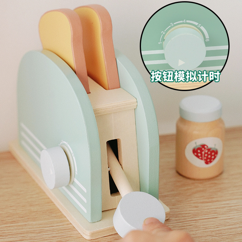 儿童早教木质过家家仿真面包机制作面包套装男孩女孩宝宝厨房玩具