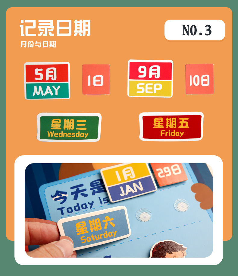 儿童早教趣味日历数字运算挂图粘贴卡教具幼儿园宝宝算数学习玩具