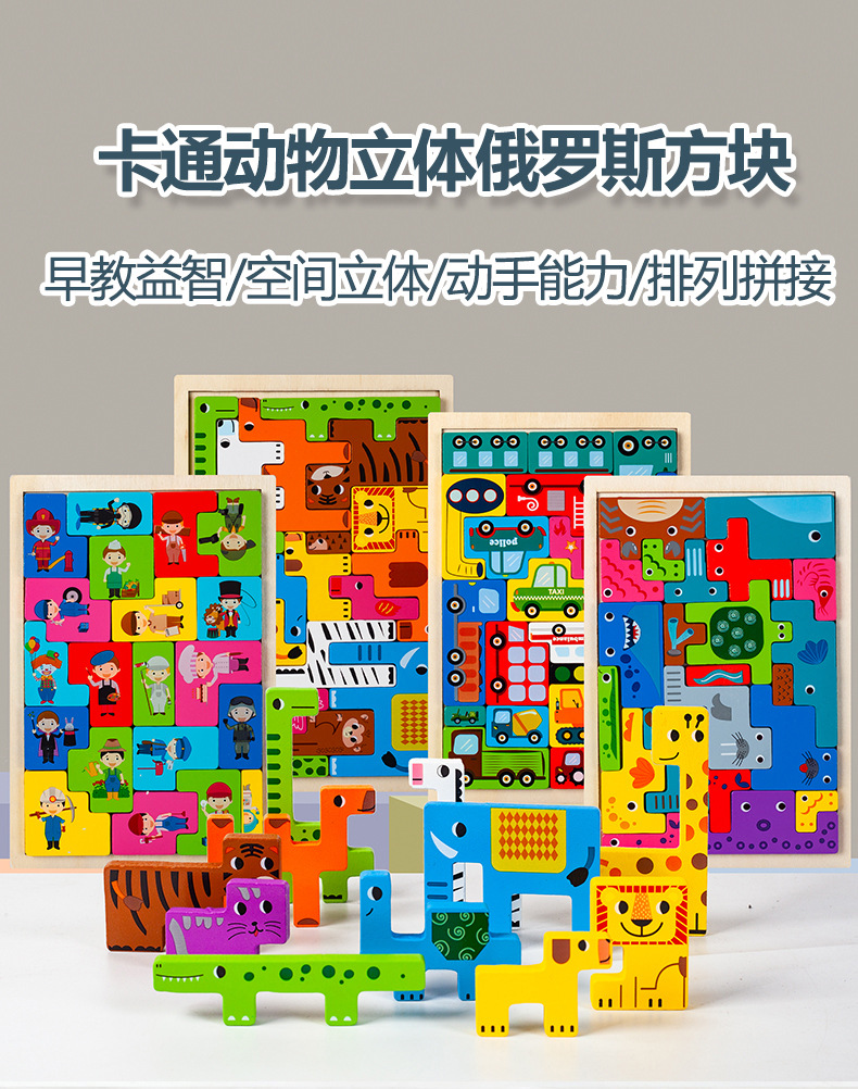 儿童早教创意立体俄罗斯方块积木拼图拼板幼儿园宝宝益智玩具批发