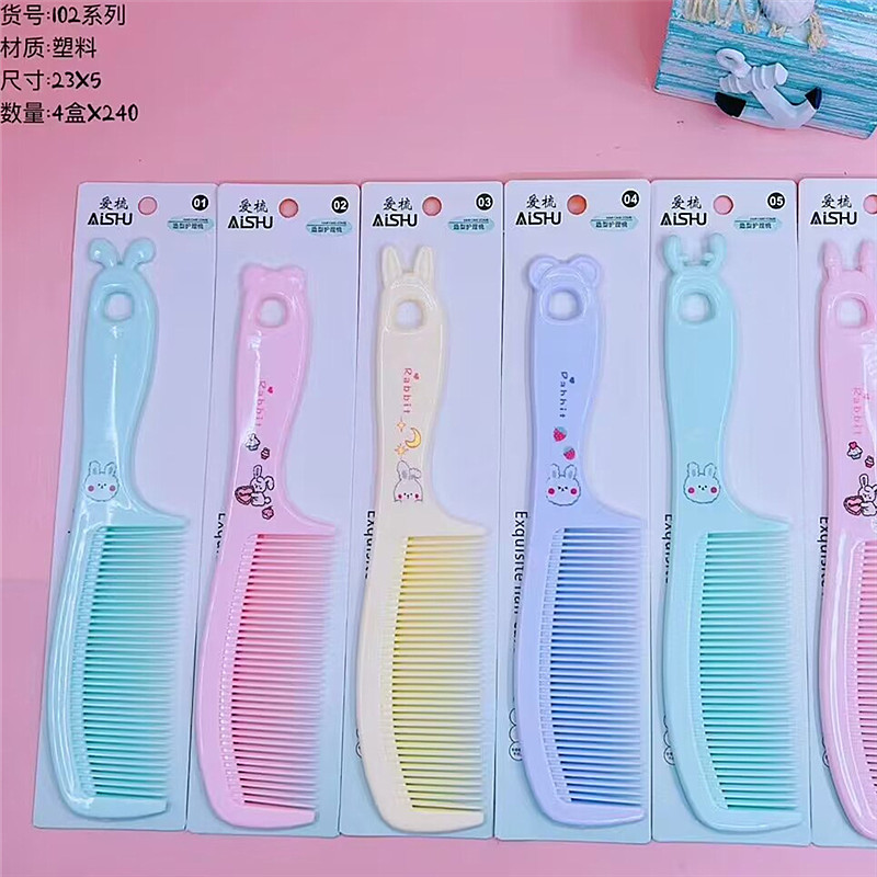 厂家直供卡通印花造型梳实用塑料学生用梳子厂家直供二元店梳子